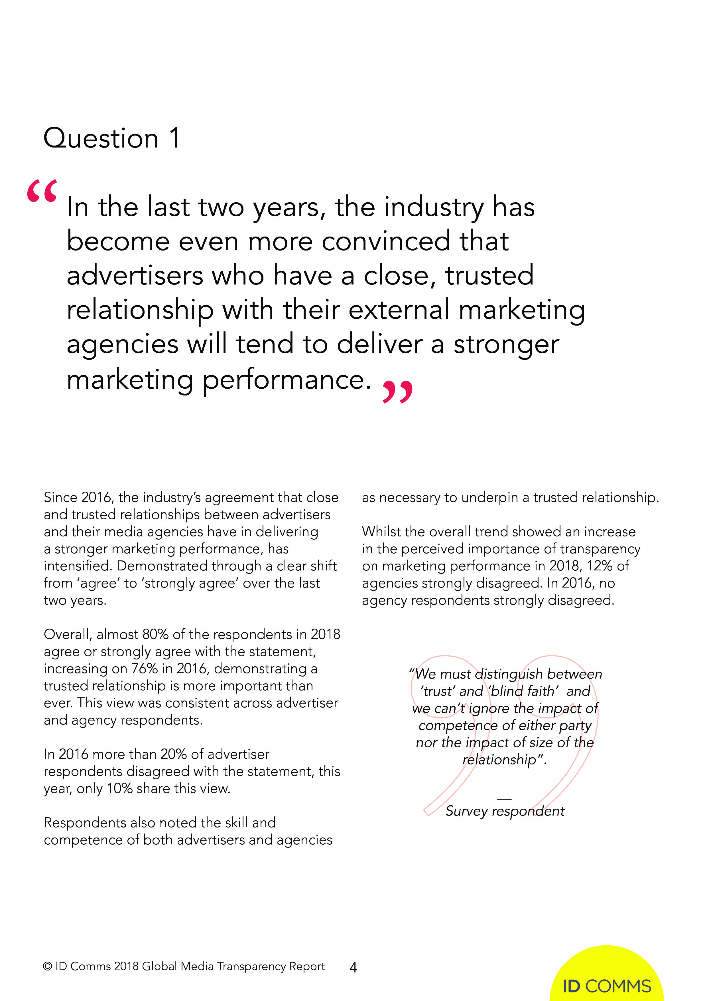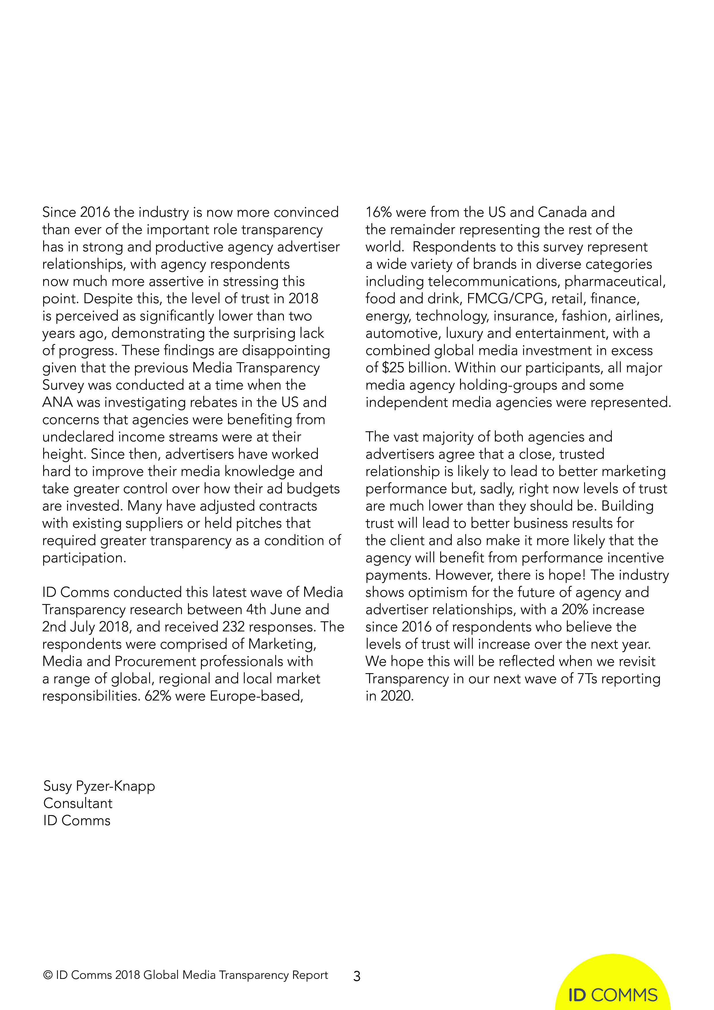 ID Comms调查了全球232位营销、媒体和采购专业人士,并发布了“2018年全球媒体透明度报告”。