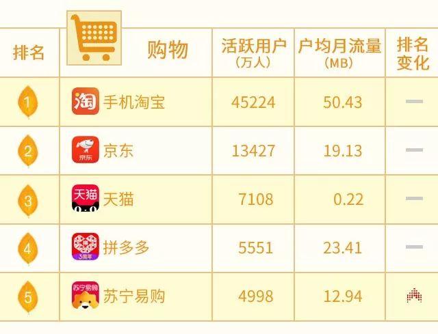 在上期的8月购物类APP榜单中,唯品会排名由第四掉至第五,本月持续下滑;苏宁易购势头强劲,成功晋升前五,可喜可贺!