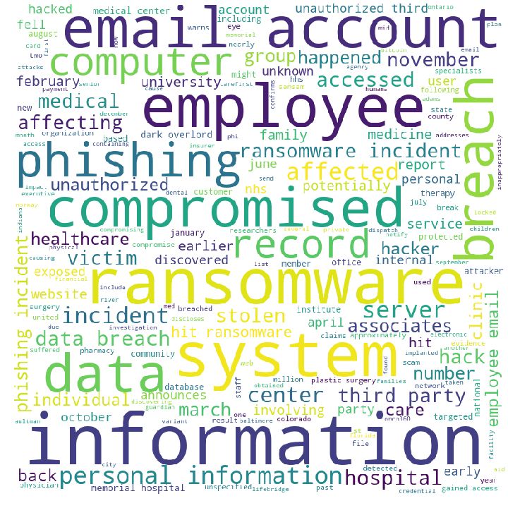 下图是医疗健康行业的网络攻击事件词云。与针对个人的明显不同。网络钓鱼、电子邮件帐户以及员工成为最常出现的词。说明在针对医疗健康机构的攻击中,黑客往往通过钓鱼软件攻破员工的电邮账号进而获取整个系统的权限,之后窃取信息。