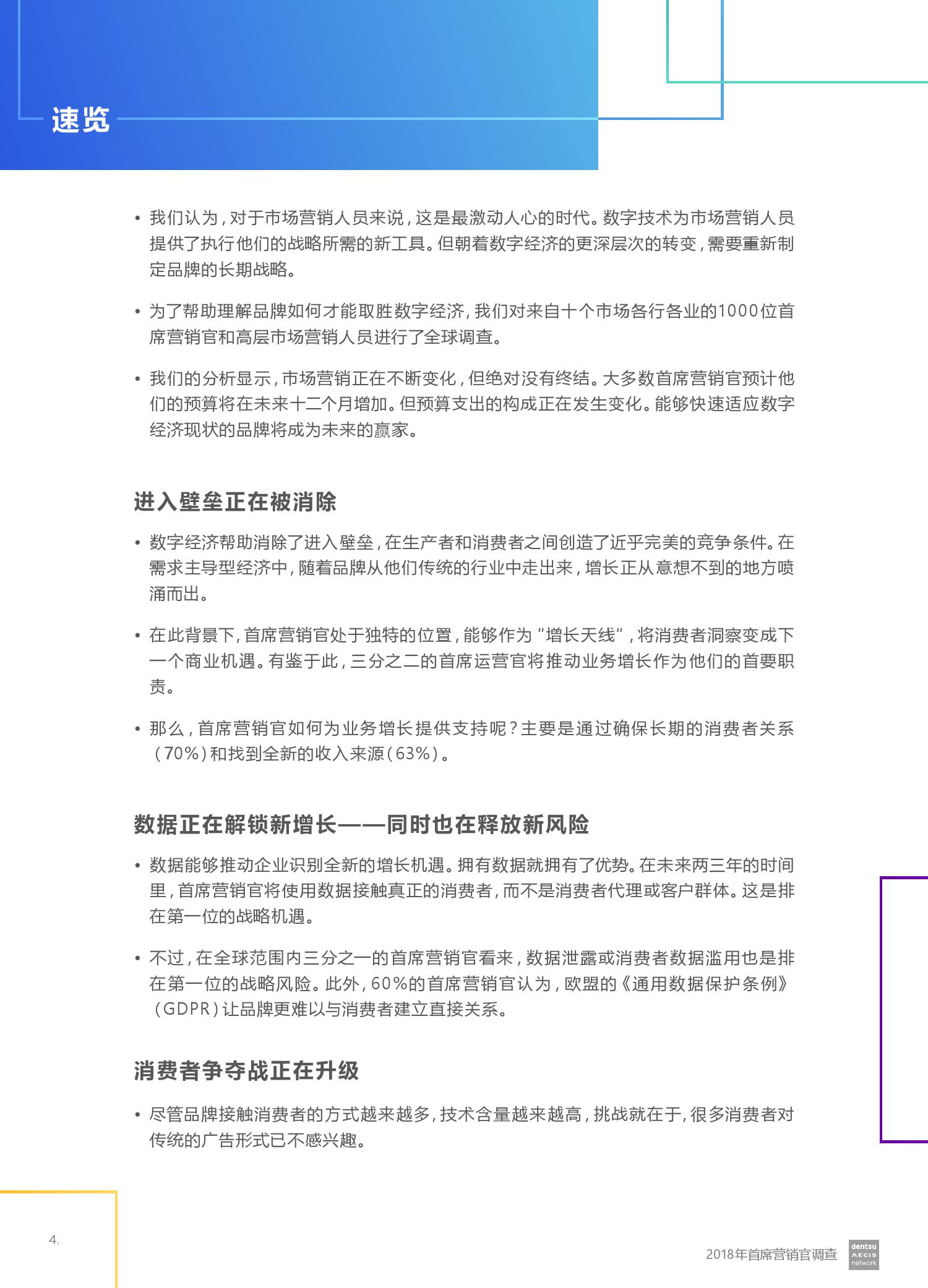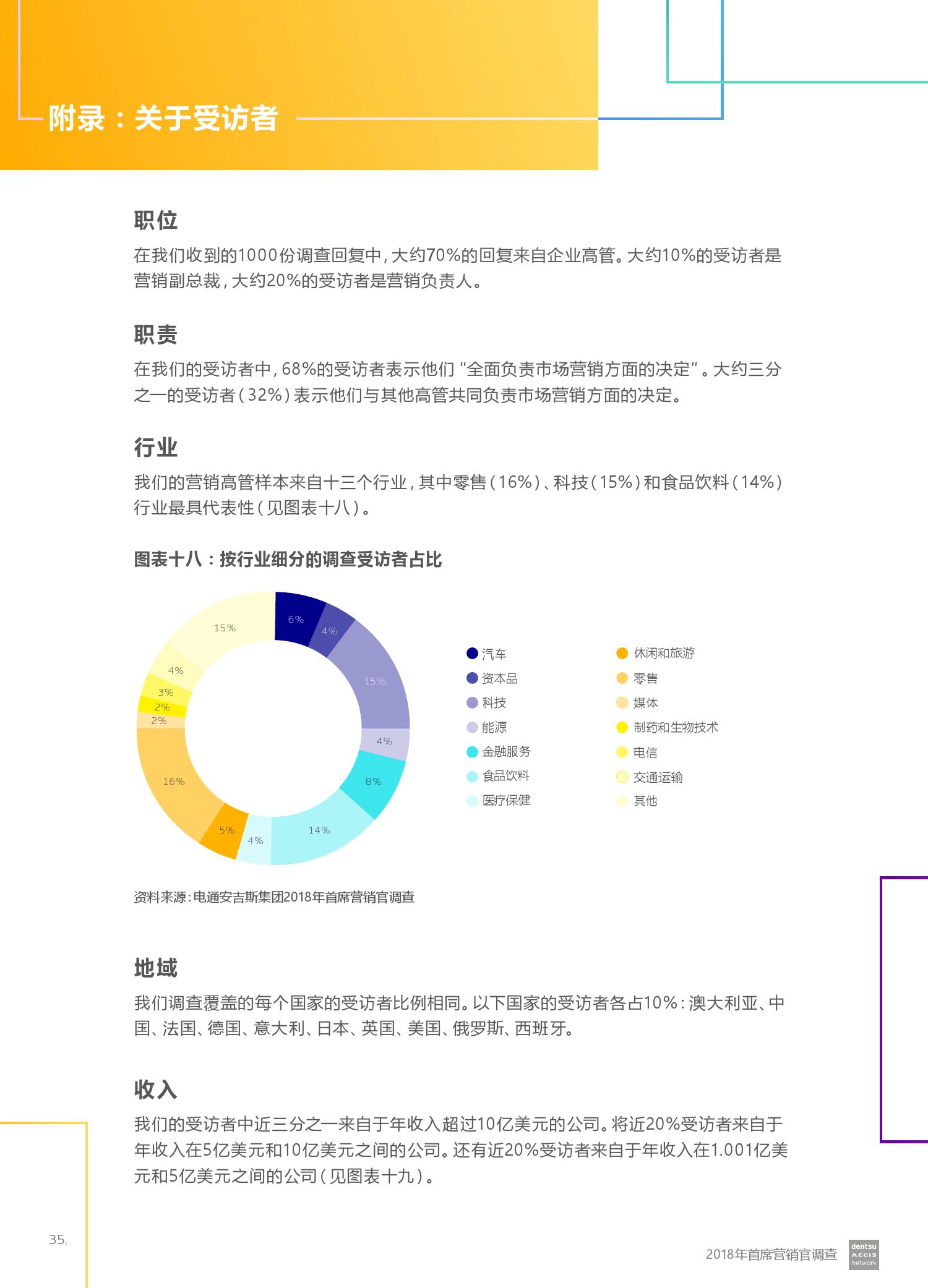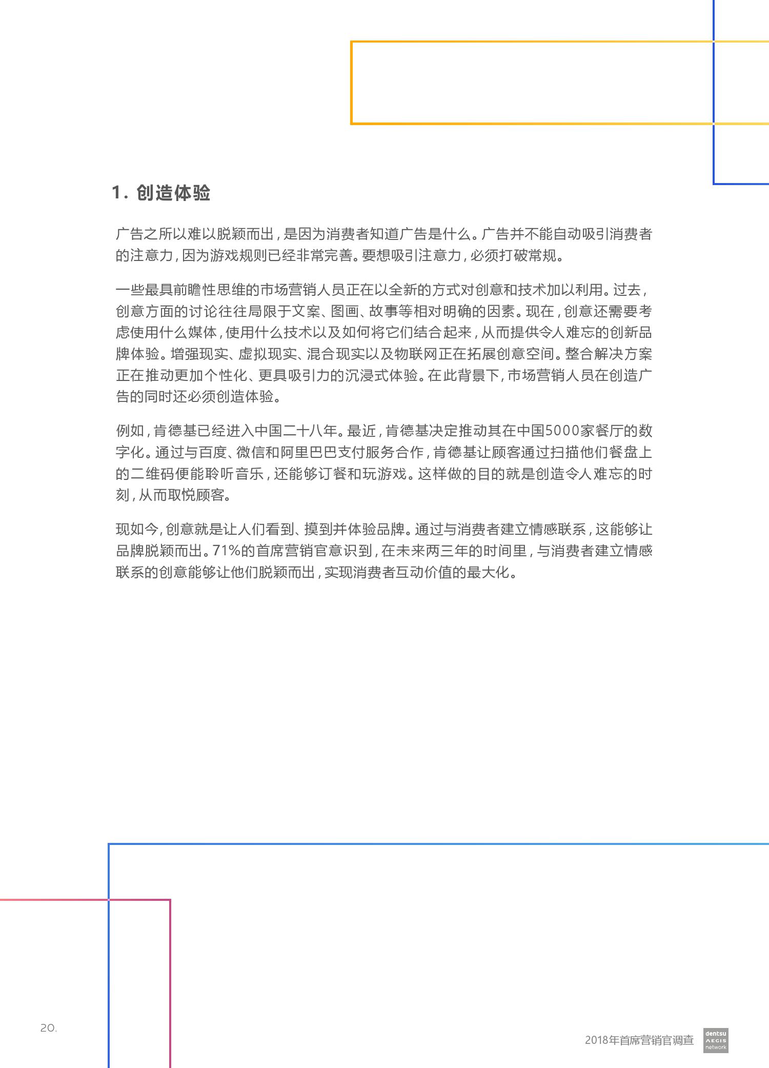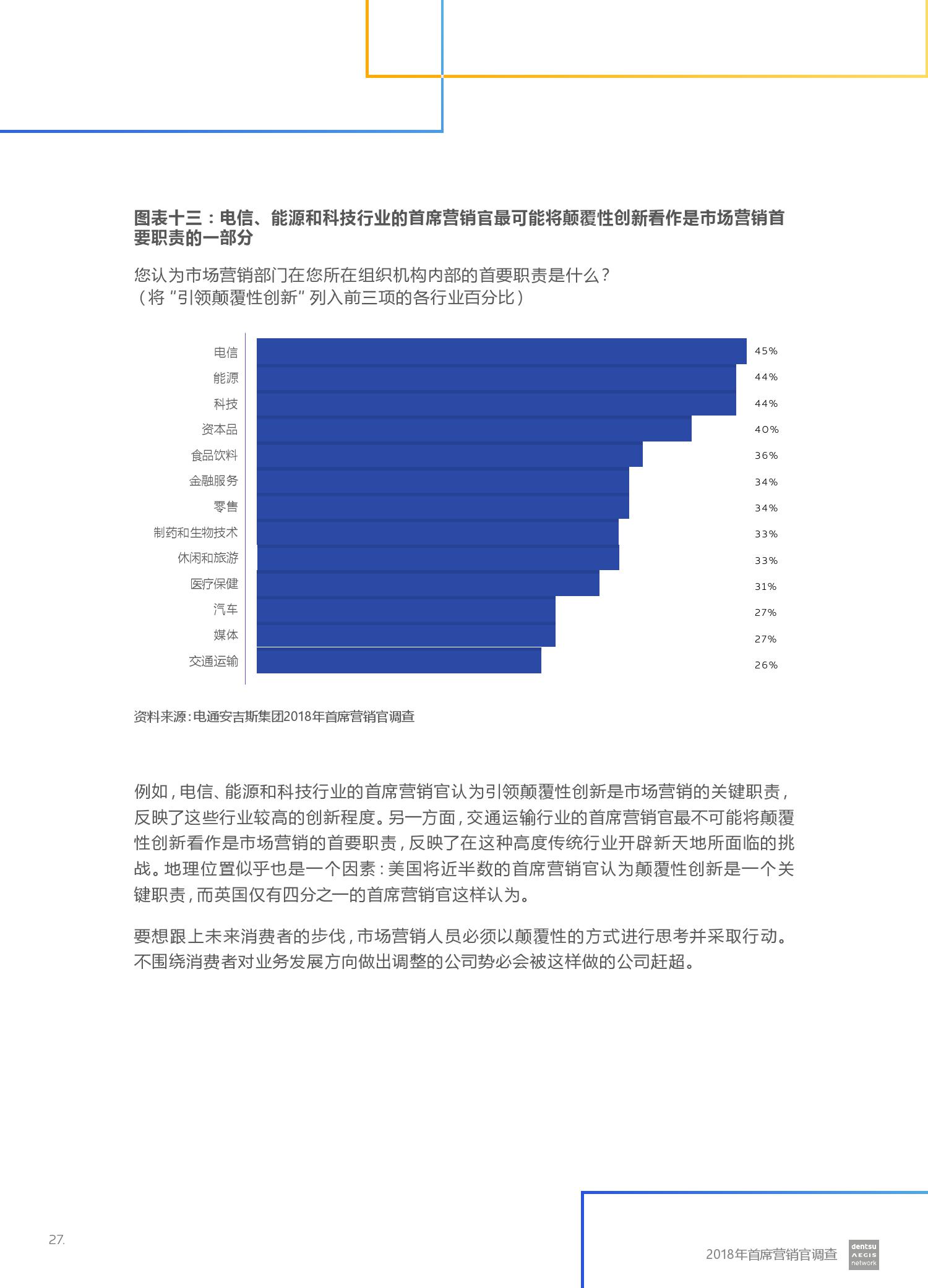 电通安吉斯集团发布最新《2018年CMO调查报告》(CMO Survey 2018)。报告显示,全球有三分之二的营销人员预计未来12个月的营销预算将会增加。然而,大型企业的营销预算增加更引人注目 – 43%的受访者计划增加5%或更多,而只有20%的受访者预计预算会下降。其中技术,汽车和金融服务行业的CMO对于未来营销预算增加的信心最强。