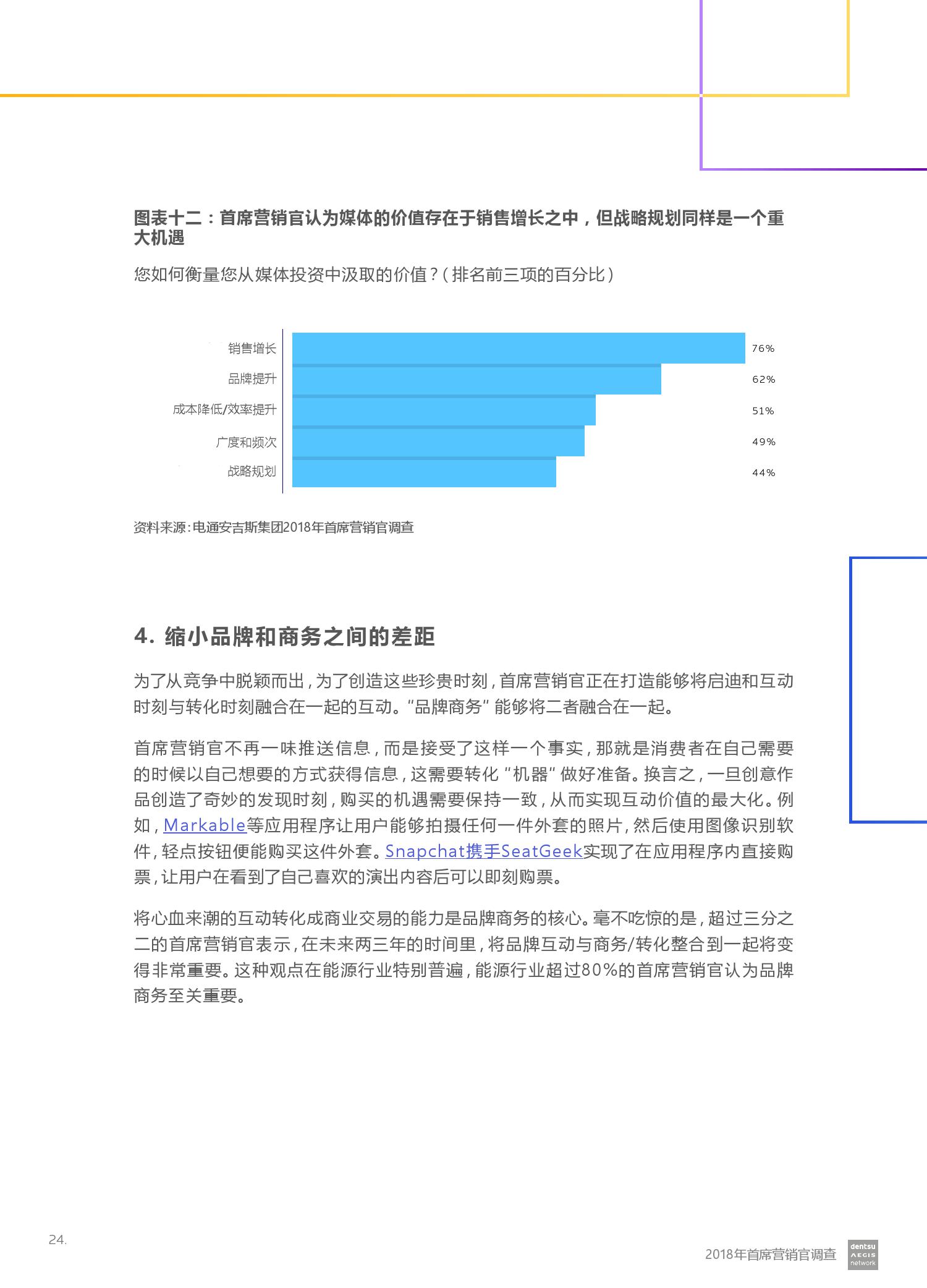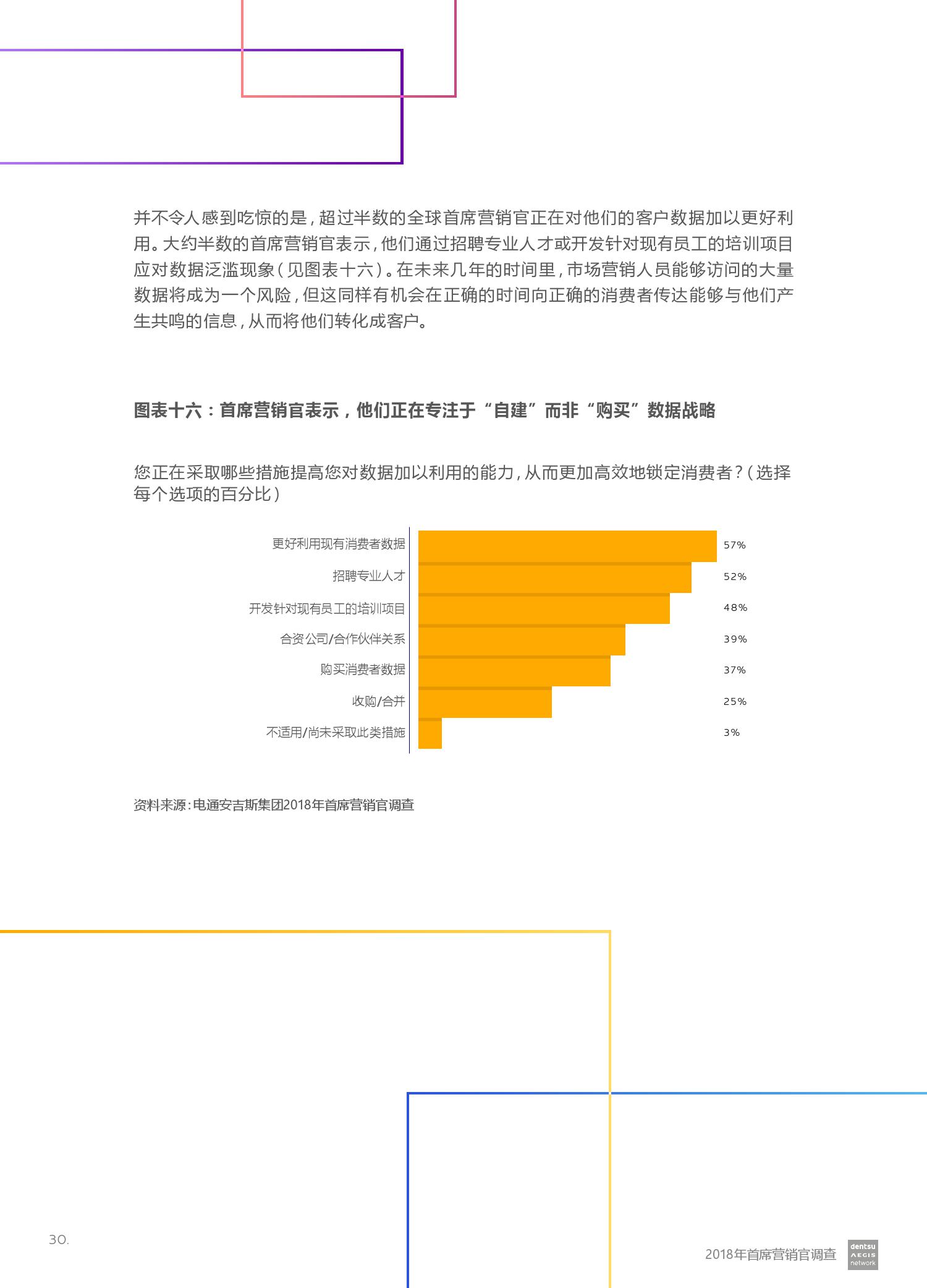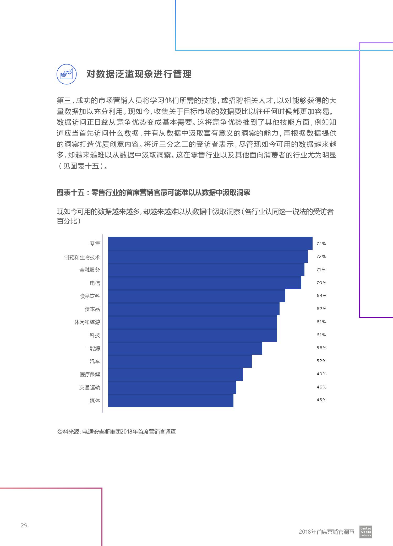 在所有接受调查的国家中,我们发现亚太区国家之间差距最大:澳大利亚(51%)和日本(35%)对营销预算增加的信心最弱,而中国(75%)信心最强。 然而,该调查还表明,CMO正面临重大挑战,因为它们试图平衡建立新能力和增强其作用的机会,以及数据和数字经济带来的风险和挑战。