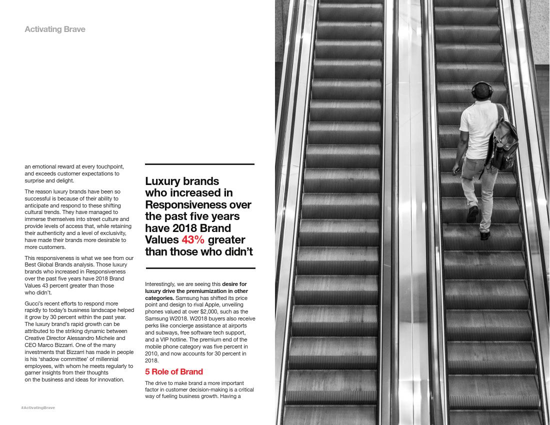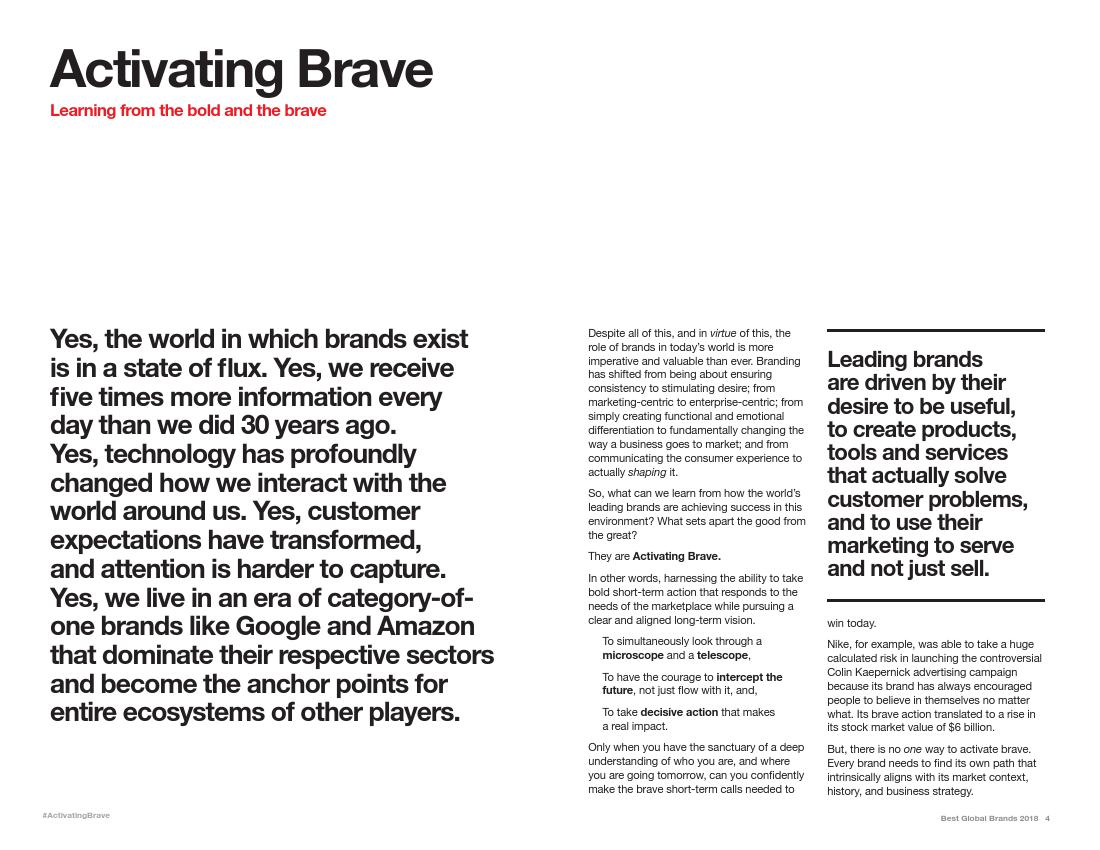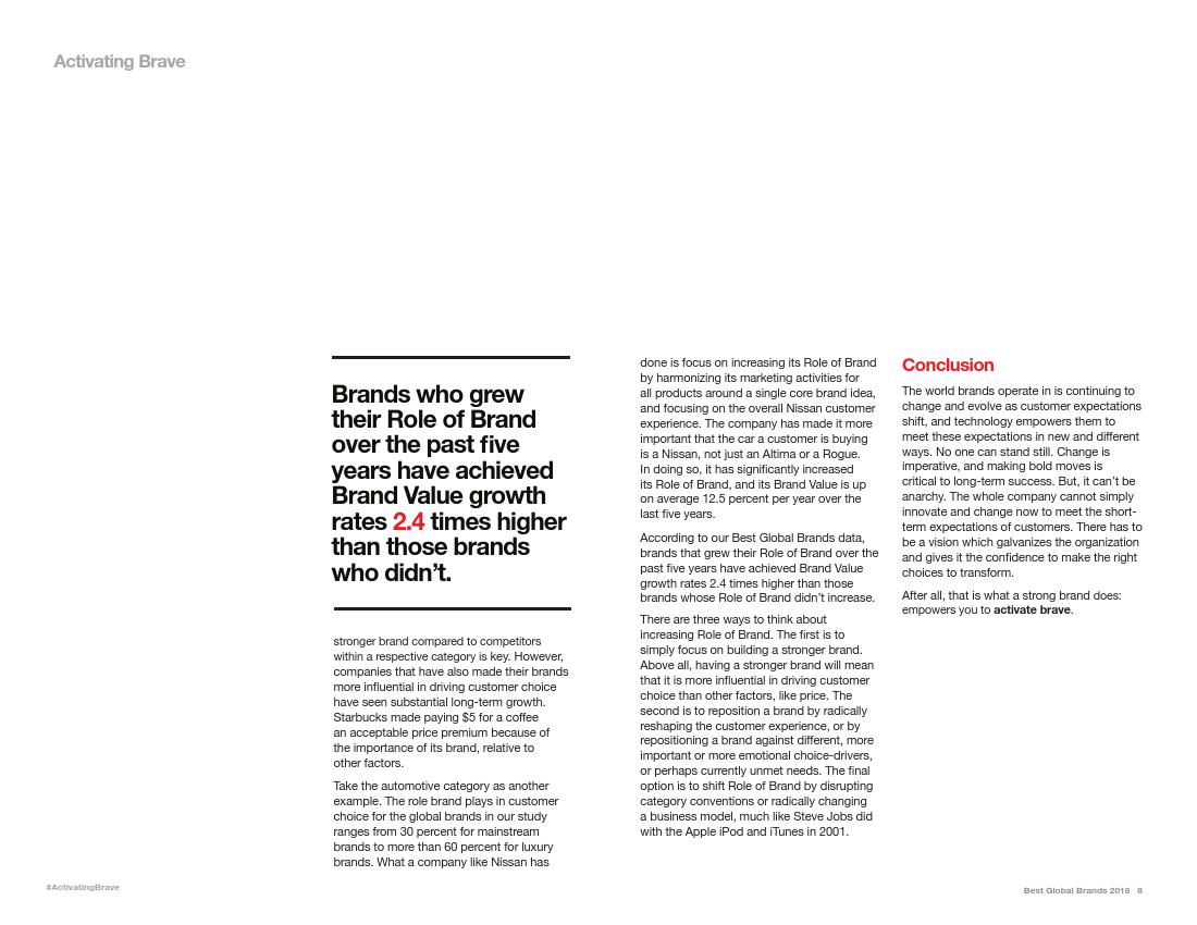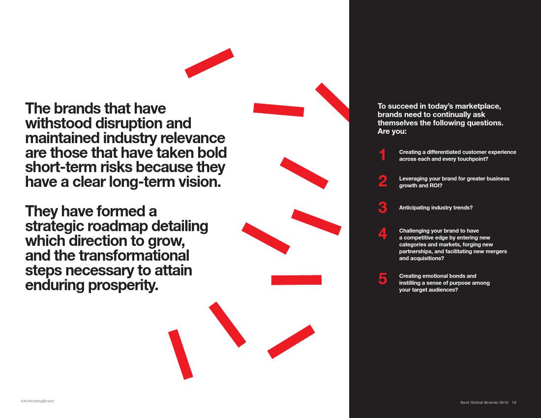 Interbrand公司称,亚马逊“几乎每年都会进行革新”,将以前较小的或失败的项目打造成成功的项目,例如Echo智能音箱和Prime视频服务中的获奖节目。亚马逊的时装业务已是美国第二大的时装品牌。