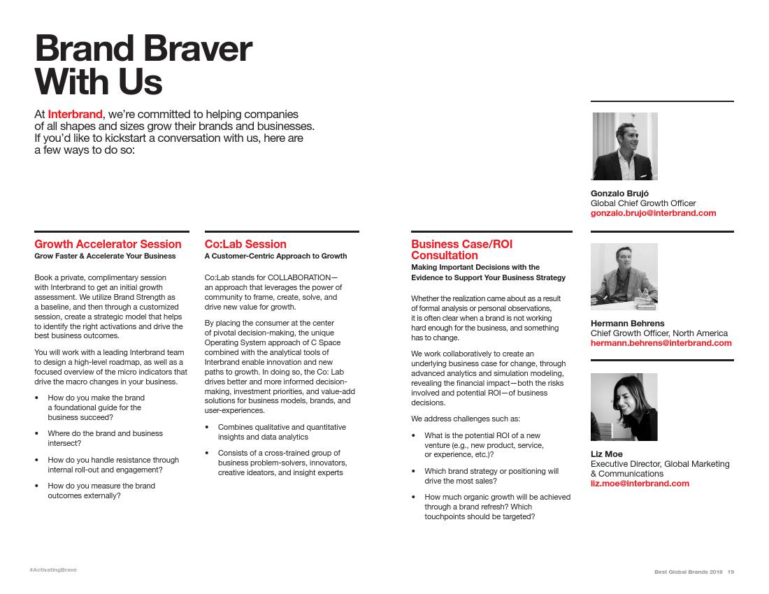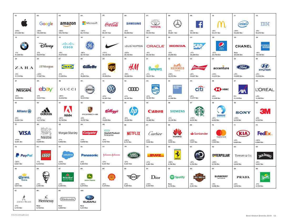 在Interbrand排行榜上,其他令人瞩目的科技公司包括:微软,第四名;三星,第六名;以及Facebook,第九名。