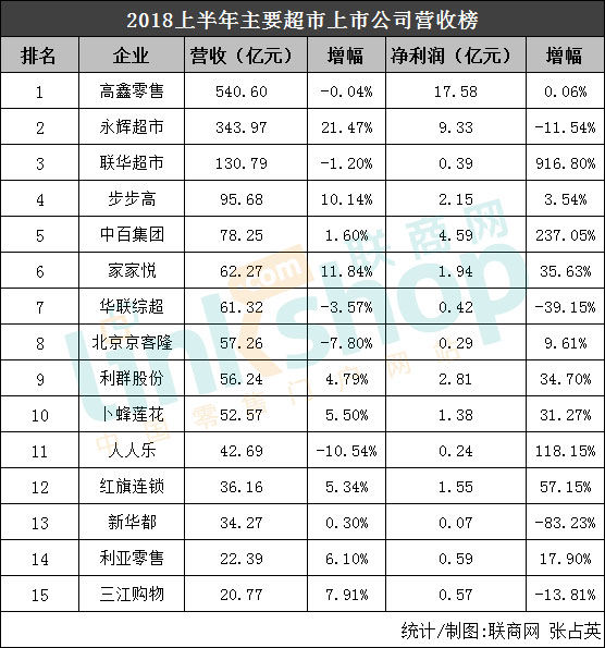 (3)联华超市连续亏损后终于实现了盈利。从2015年到2017年,联华超市连续亏损,累计亏损额已逾12亿元,但今年上半年终于实现了3900多万元的净利润。中报称成功扭亏为盈主要原因是:聚焦新零售探索,提升在线销售能力,增加同店销售规模;积极打造差异化供应链,加强与供货商的谈判能力,提升服务收入;优化生鲜源头采购网络,发展生鲜自营基地,为门店鲜食品类扩大提供有力支撑;进一步优化网点,落实降本增效,成本费用控制卓见成效。