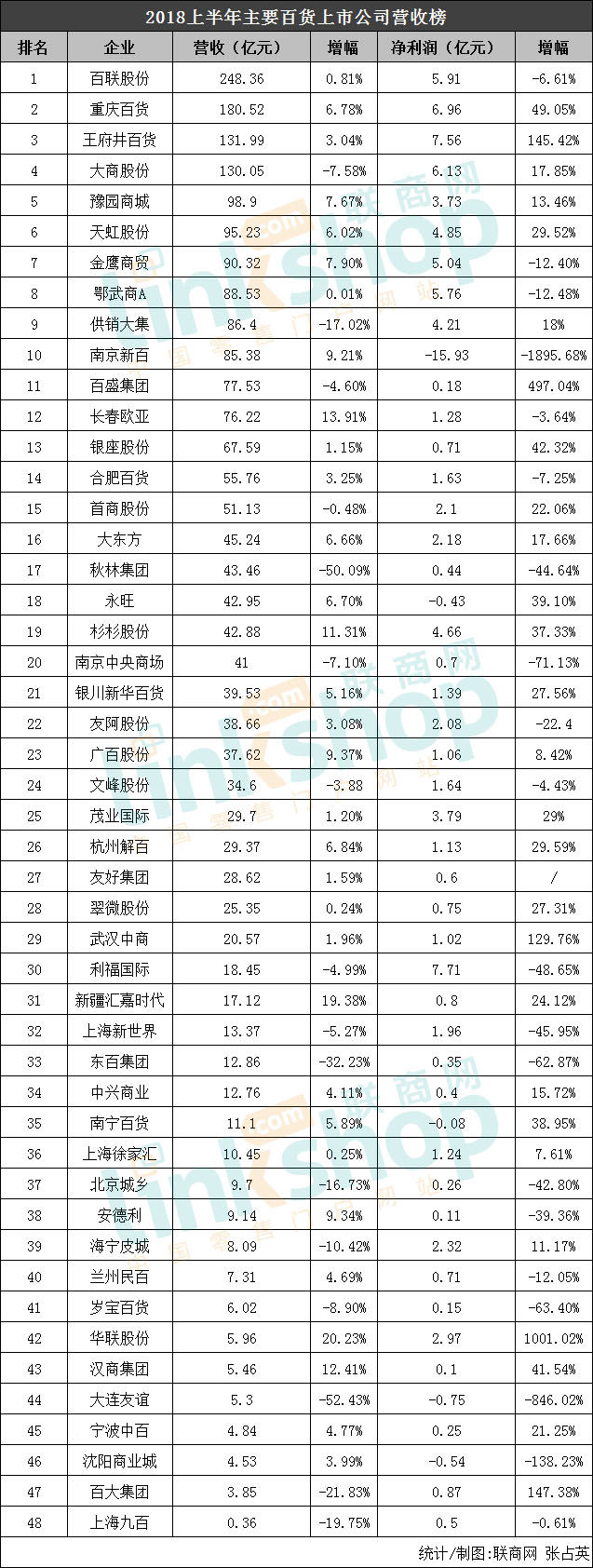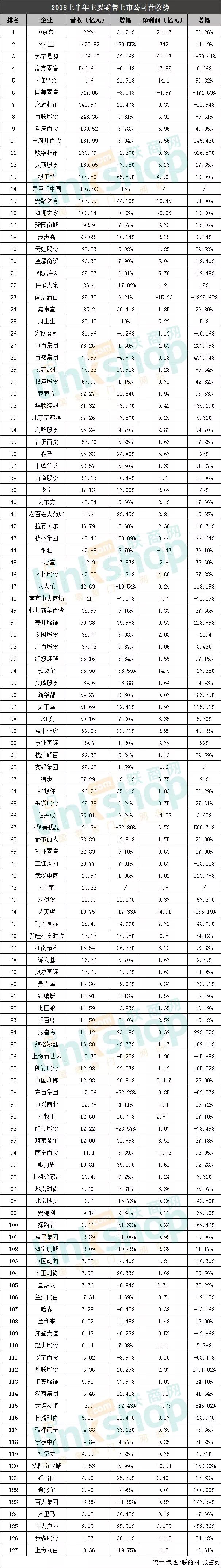 据联商网统计数据显示,2018年上半年,我国127家零售业上市公司共实现营收10957.54亿元,净利润729亿元。