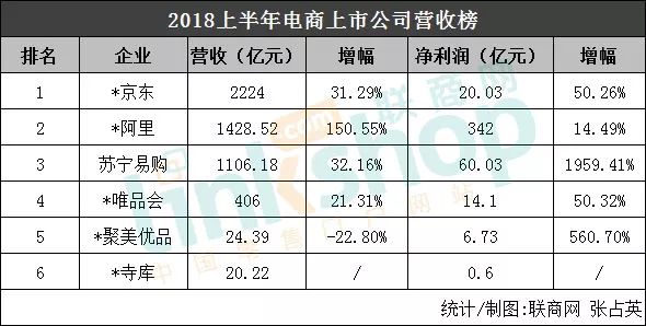 (2)京东、阿里、唯品会、聚美优品、寺库5家美股上市公司,净利润按照非美国通用会计准则下(Non-GAAP)统计,这与美国通用会计准则下(GAAP)的净利润有很大差距。如京东2017年全年在非美国通用会计准则下(Non-GAAP)的净利润为50亿元人民币,美国通用会计准则下(GAAP)的净利润为1.17亿元人民币。