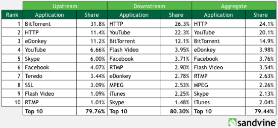 来自加拿大宽带管理公司Sandvine最新发布的数据显示,BitTorrent北美地区的流量在过去的半年内增长了40%。其中,其最高峰值期间占据了所有上传流量的1/3,Netflix则为28%。早在2004年,BitTorrent就有非常出色的表现,占了互联网所有流量的35%。