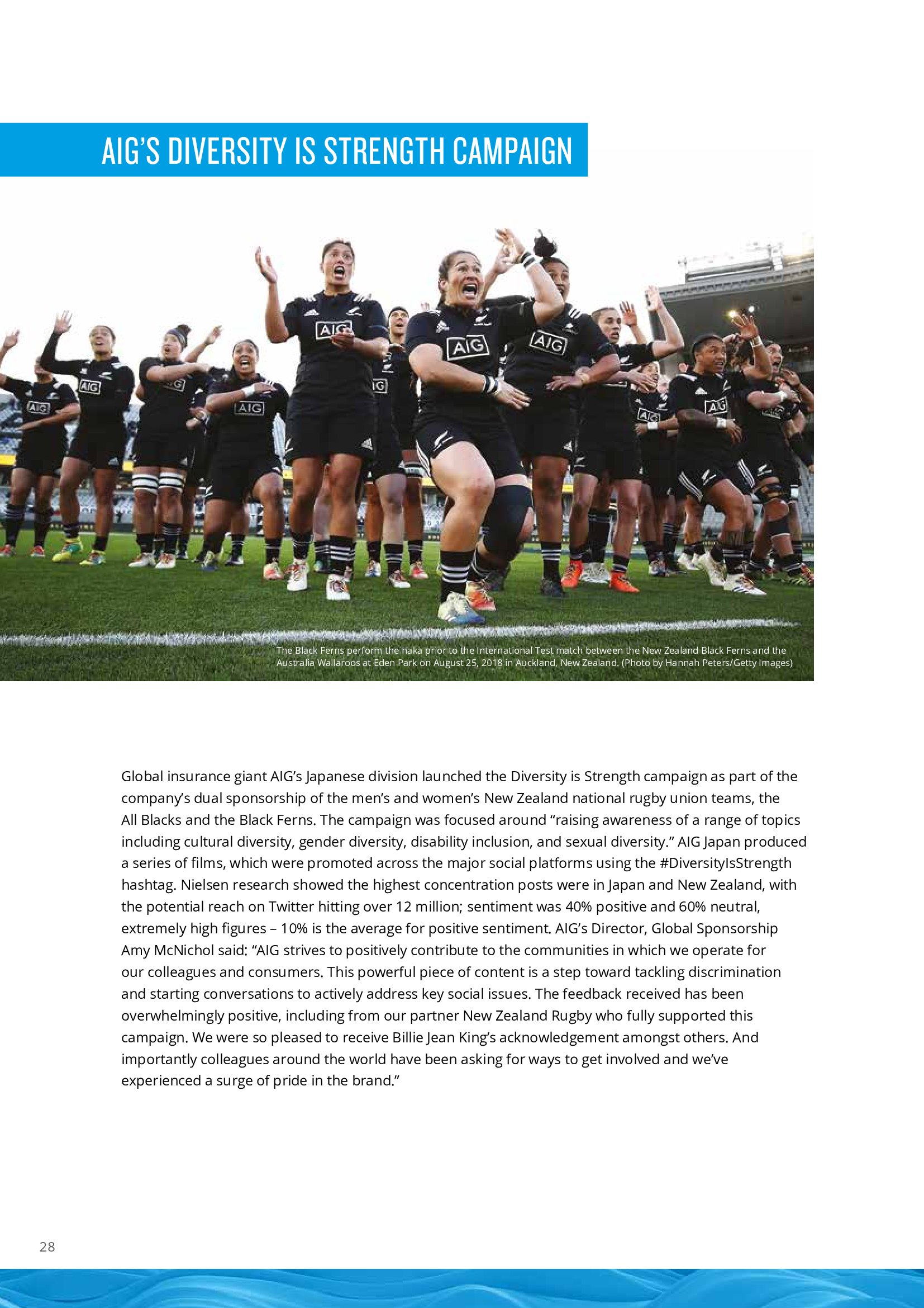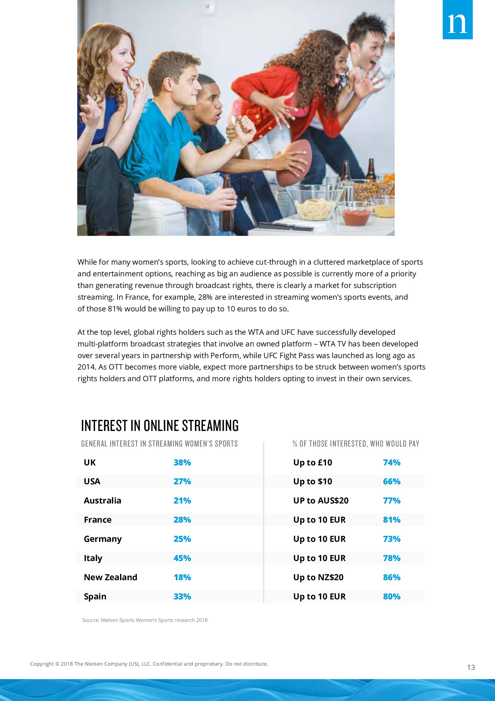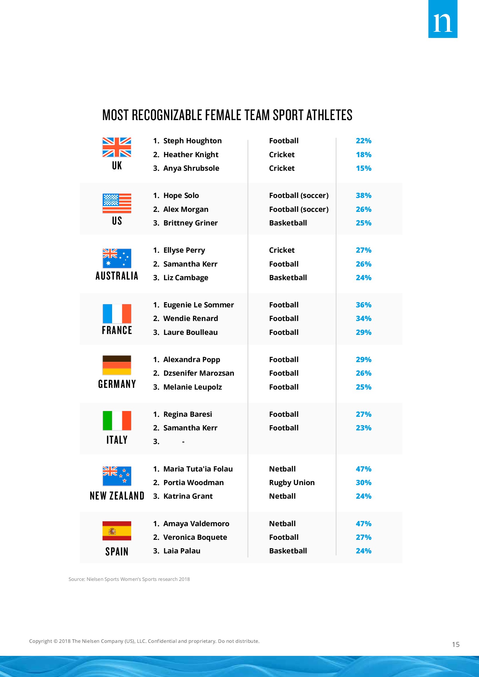 针对全球八个主要市场(美国、英国、法国、意大利、德国、西班牙、澳大利亚和新西兰)的调查发现,84%的体育迷对女性体育感兴趣,其中51%是男性,这证实了女性的体育活动可以同时吸引男性和女性观众,而且观众的性别比例更平衡。