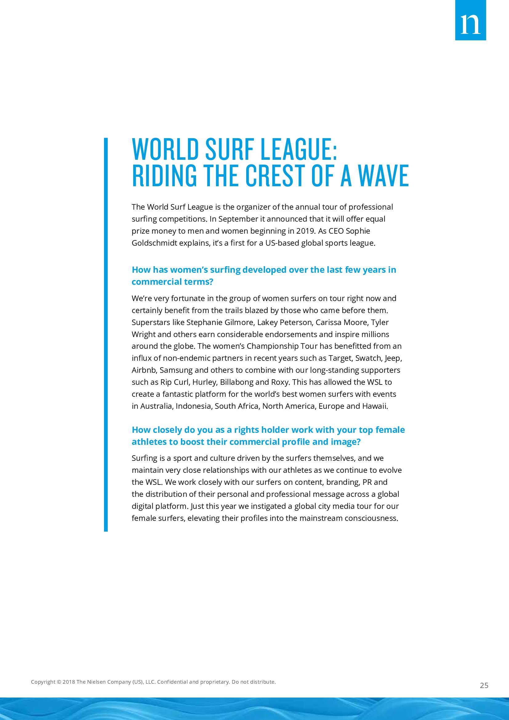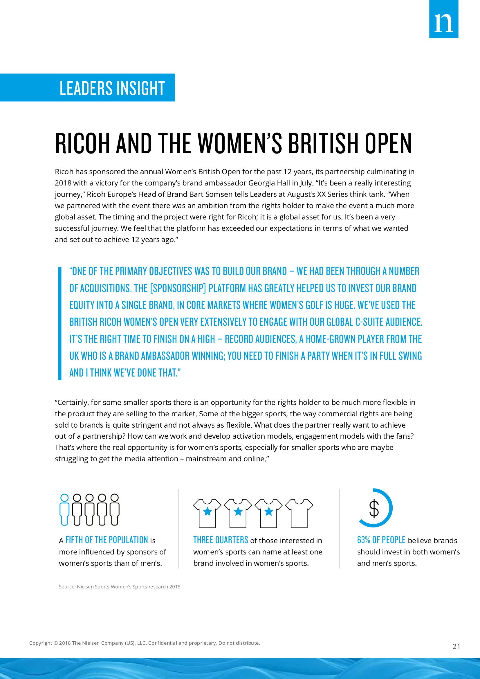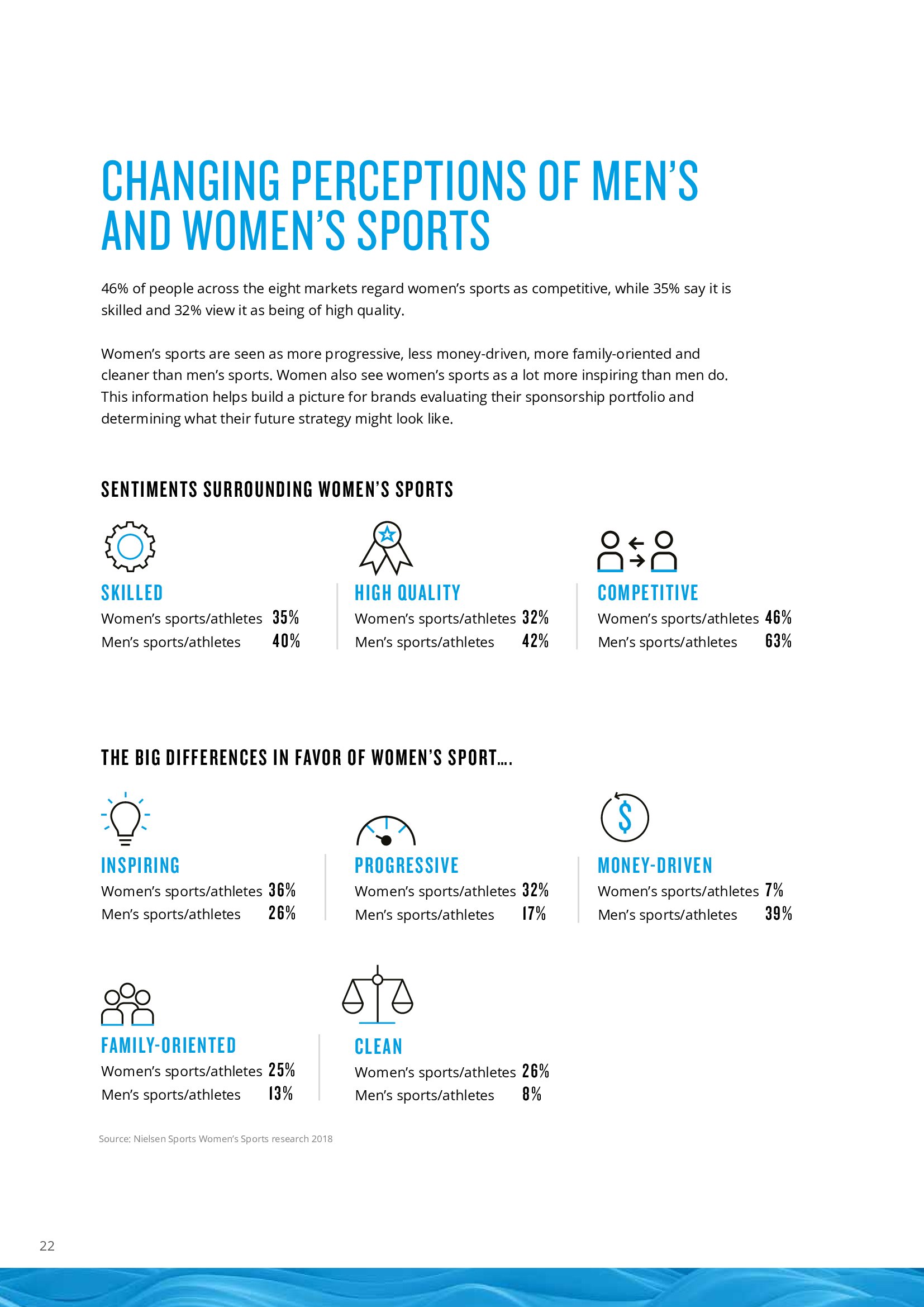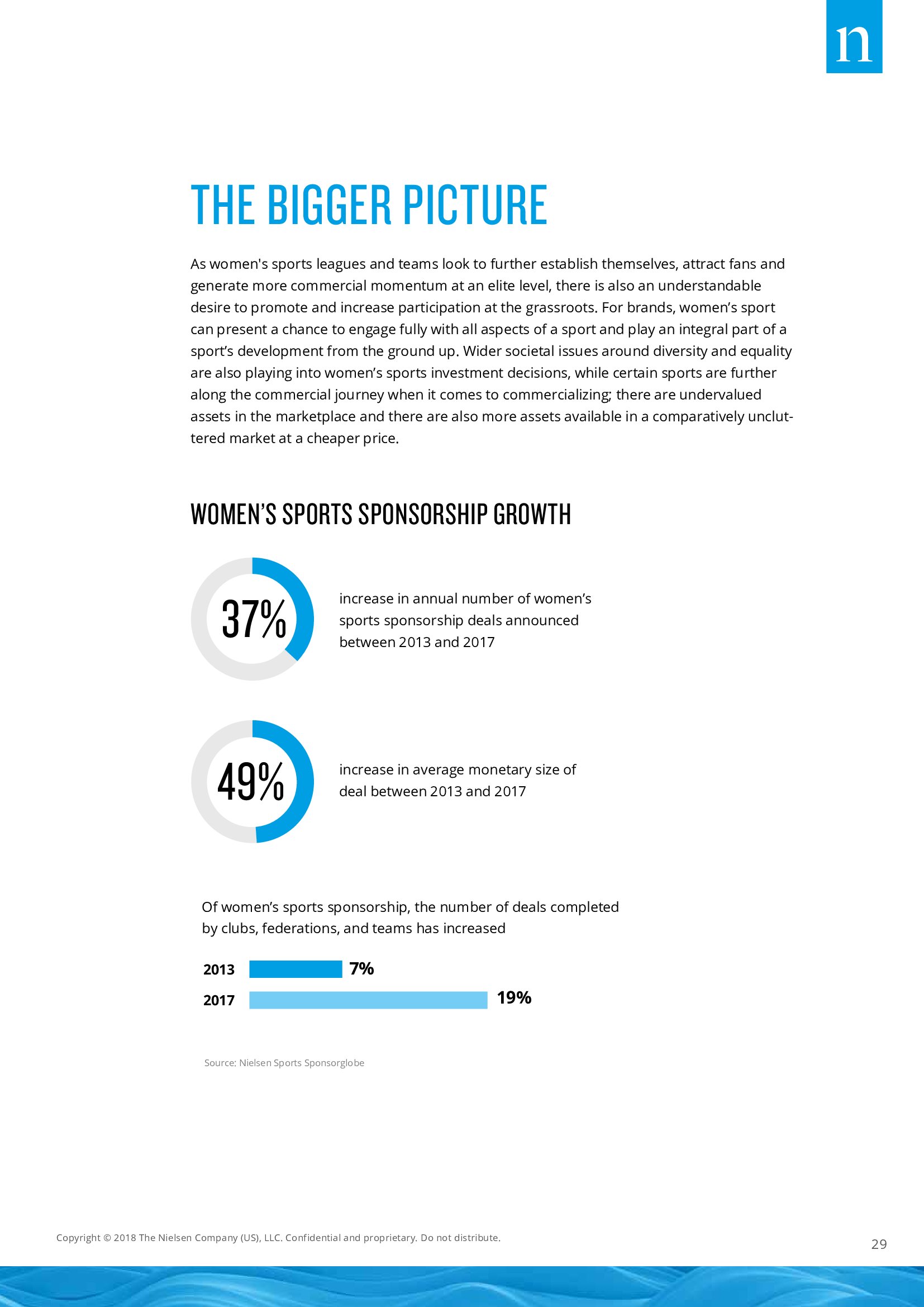 从同工同酬到创纪录的观众和新媒体交易,女性体育现在比以往任何时候都更受关注。虽然通常还是不能受到和男性体育同等程度的关注,但最新的尼尔森体育研究分析了营销人员、品牌和媒体在女性体育这个潜力未完全开发的领域的商业机会。
