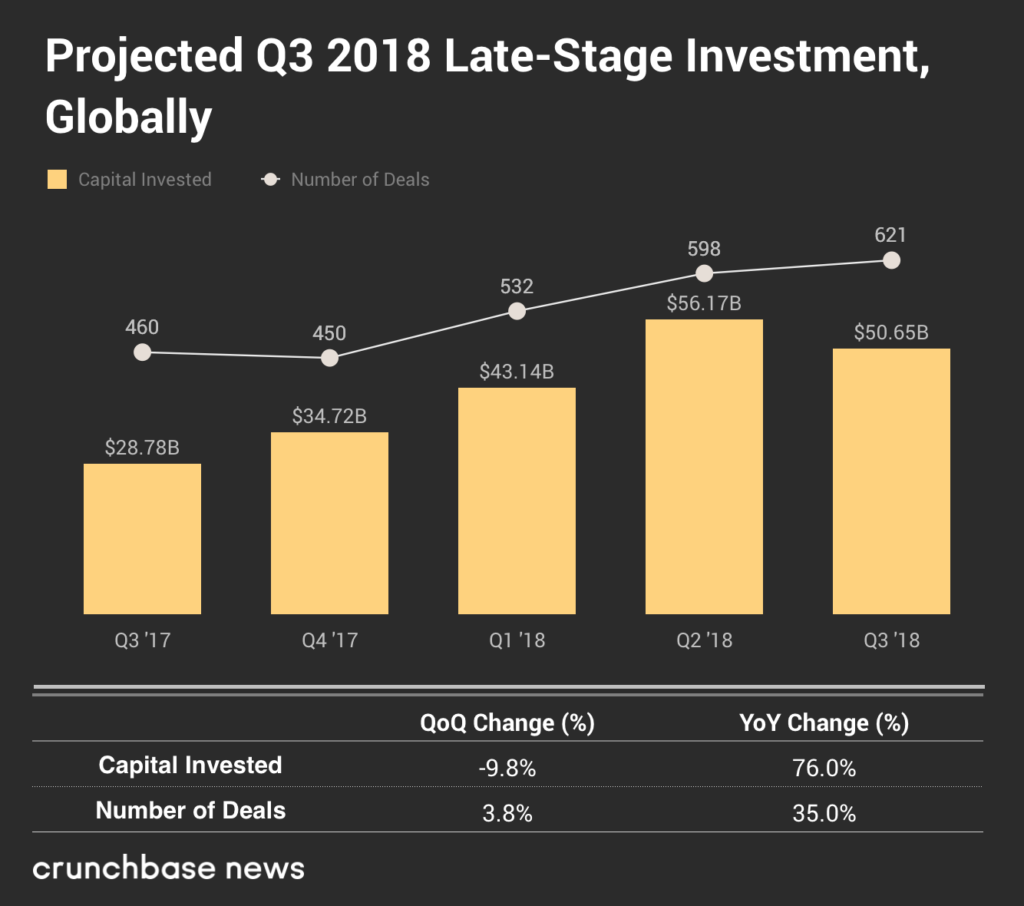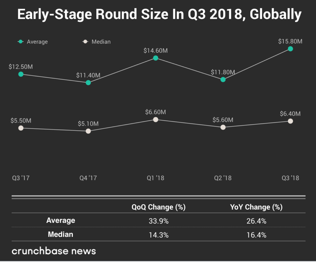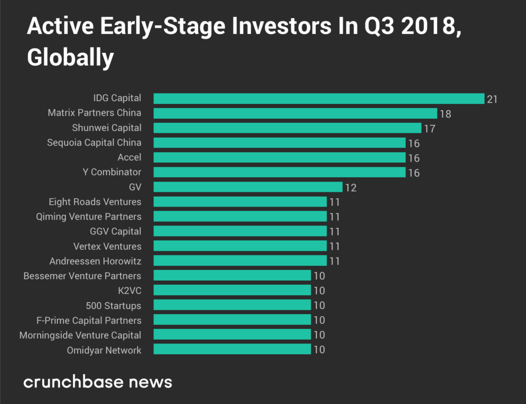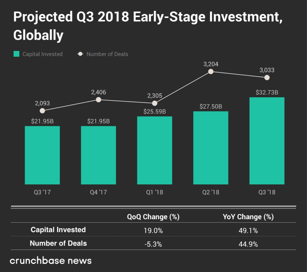 Crunchbase发布了第三季度各阶段风险投资情况。