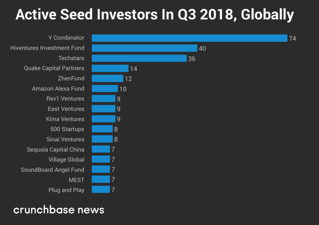 第三季度共有2015家种子投资者,其中最活跃的是: