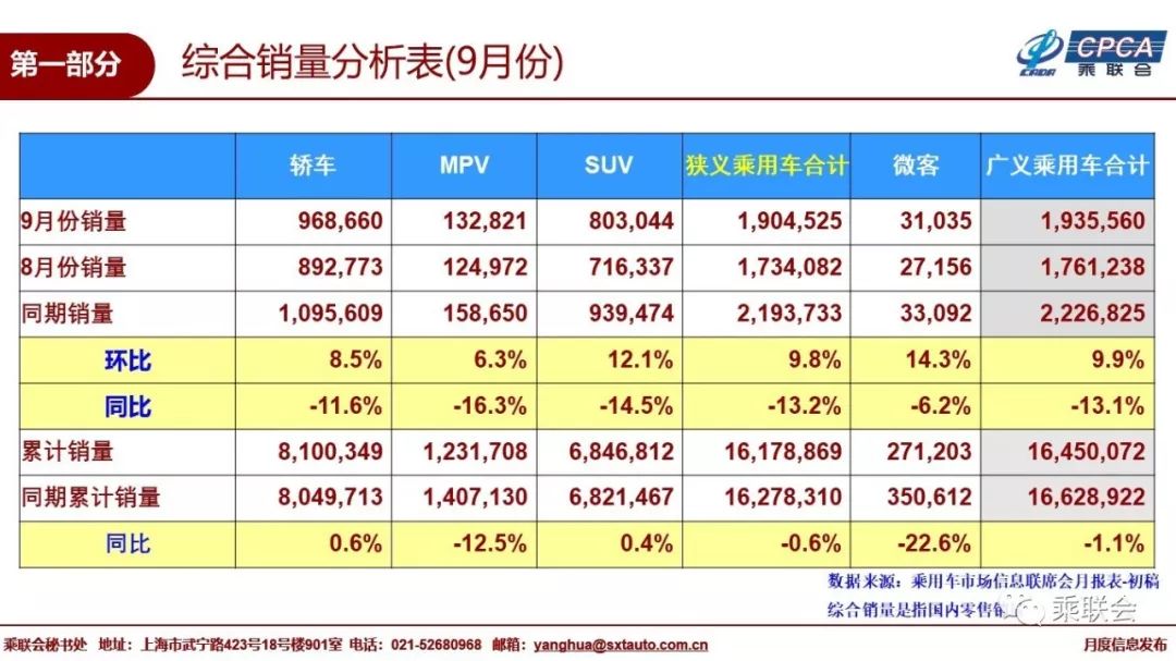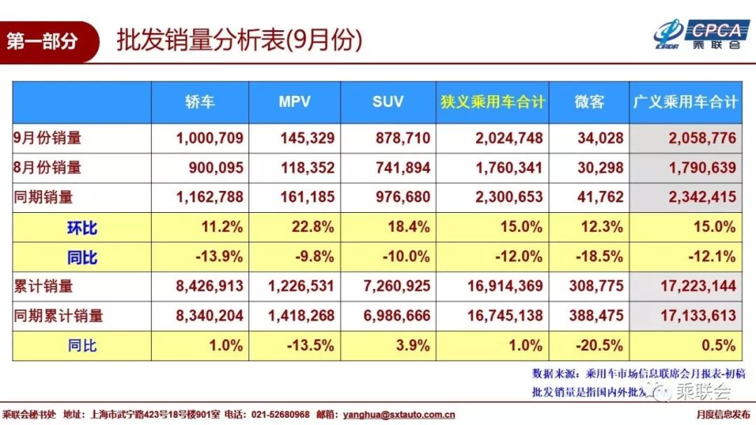 9月的SUV市场零售增速-14.5%,MPV市场零售增速-16.3%,轿车市场依托新能源走势稍好。但依托合资新品增量的SUV批发增长强于轿车。