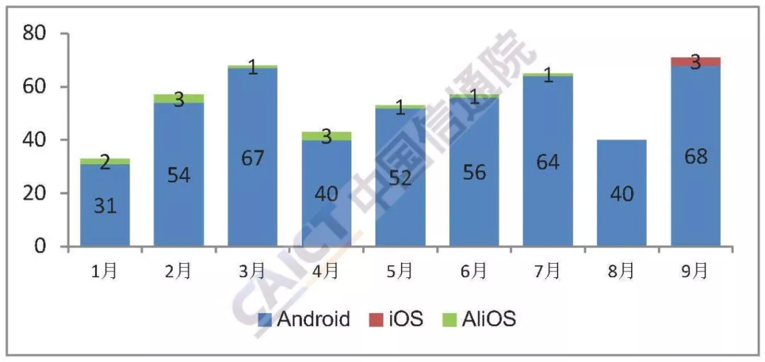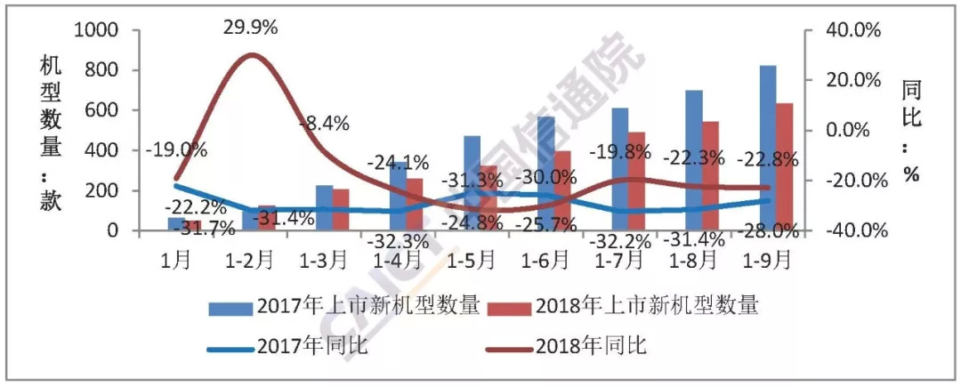 70余款智能手机新机型本月集中上市。2018年9月,上市智能手机新机型71款,同比下降21.1%,占同期手机新机型总量的78.0%,其中支持Android操作系统的手机68款。2018年1-9月,上市智能手机新机型487款,同比下降23.8%,占同期新机型数量的76.7%,其中支持Android操作系统的手机472款。