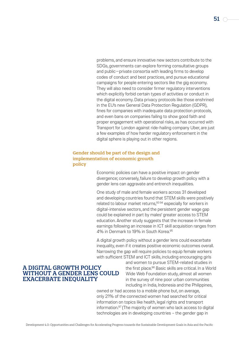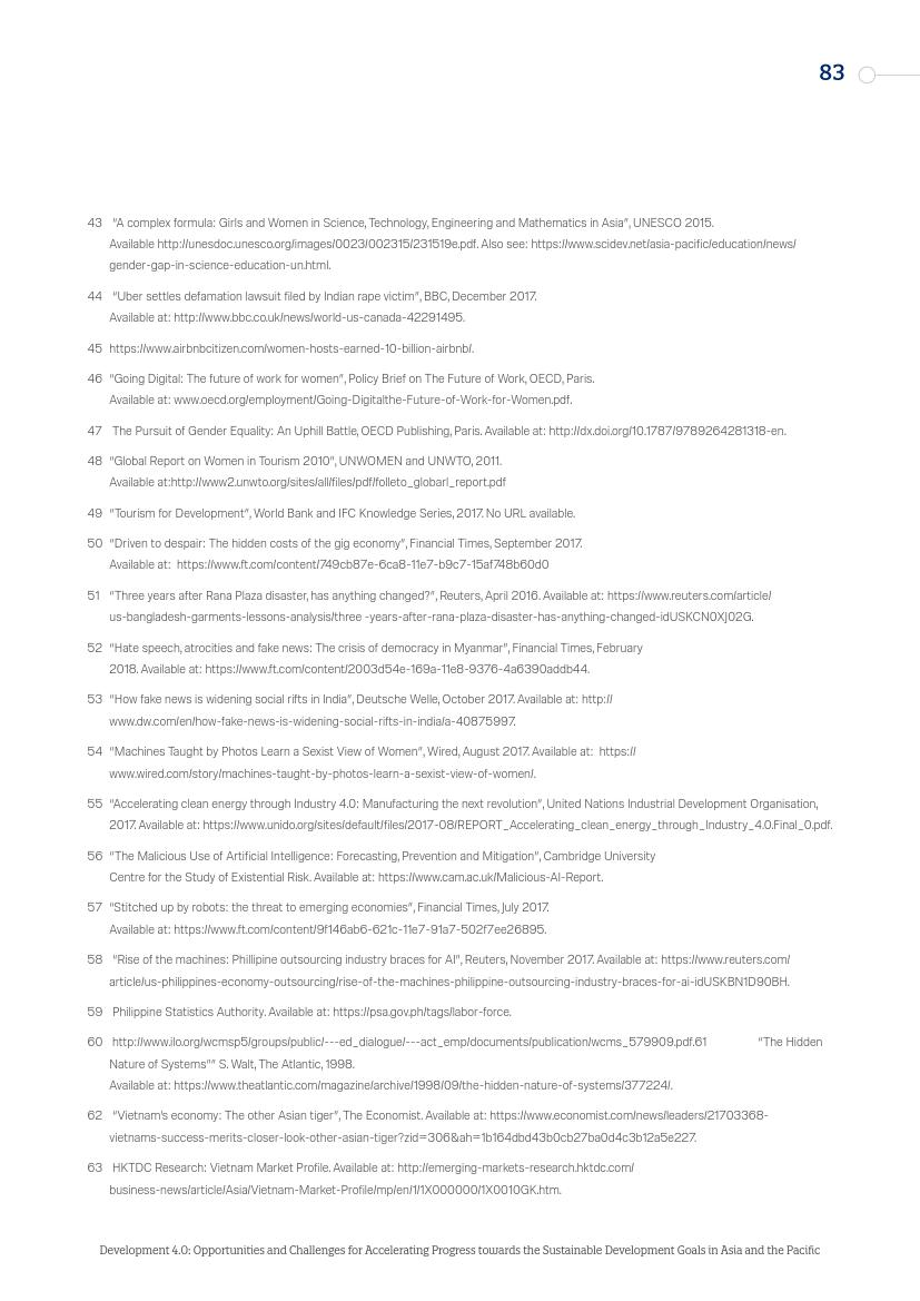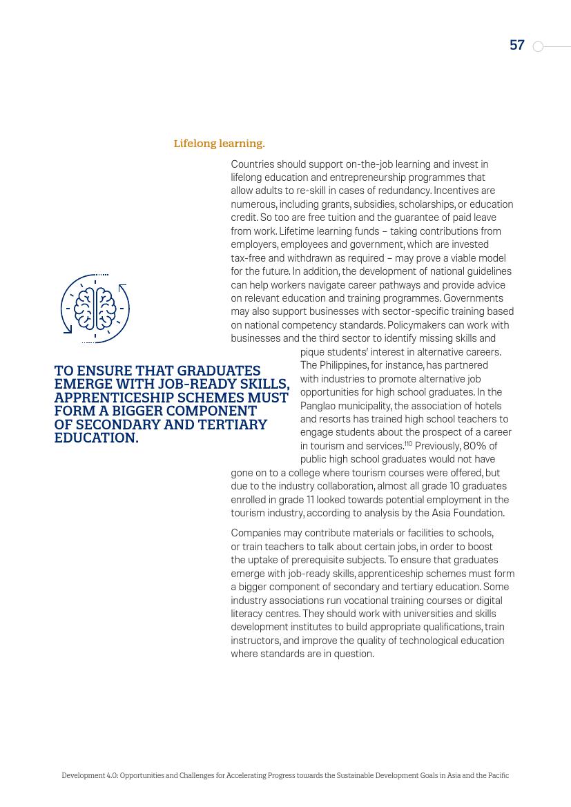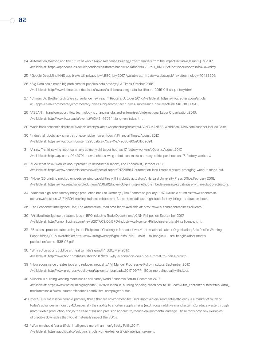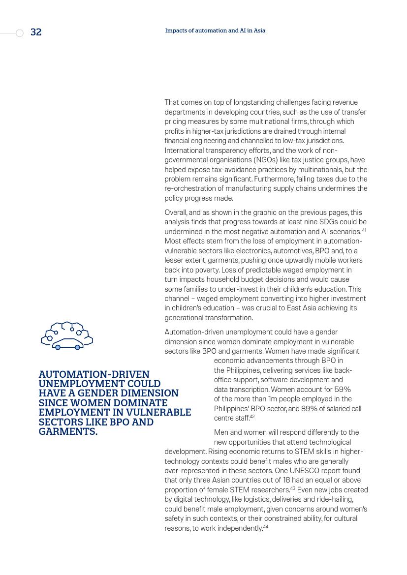 东亚的发展“奇迹”,从日本到“亚洲四小龙”,再到今天的马来西亚、越南、孟加拉国和泰国,其发展都建立在制造业领域,而现在,制造业面临自动化的风险。在服务业,面对自动化,广泛普及的英语技能以及低劳动力成本所带来的优势正在消失。人工智能和新的数字经济对实现一系列可持续发展目标来说,意味着即是机遇又是挑战。在最负面的自动化和人工智能情景中,至少九个可持续发展目标的进程可能会受到较大影响。
