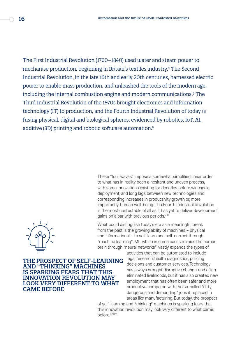 自主学习和“可思维”机器的发展前景正在引发一种恐惧:此次创新革命可能与以往的创新革命有很大不同。大量的问题值得关注,例如发展经济体中的“过早去工业化”,常见经济增长模式(劳动密集型、注重制造业出口)所面临的损失,甚至是对新的强大技术的滥用,比如将人工智能技术用于不法获利等。