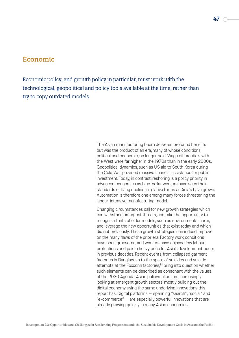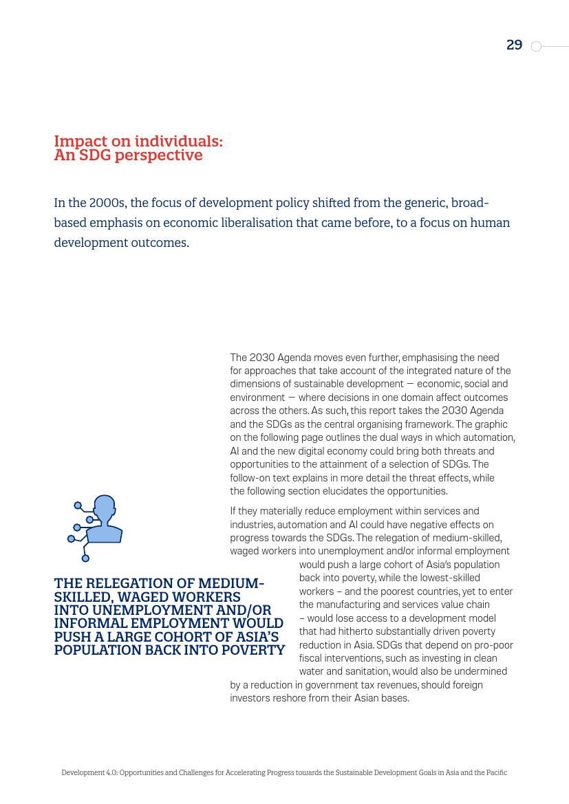 2000年以后,发展的重点从以前对经济自由化的一般性、广泛的强调转向关注人类发展成果。如果替代那些具备中等技能、未被正式雇佣的工作者,将使亚洲的大量人口回归贫困。