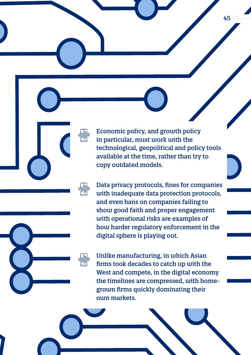 经济政策方面,特别是增长政策,必须利用当时可用的技术和政策工具,而不是试图复制过时的模式。在数据隐私保护协议方面,对数据保护协议不完善的公司的罚款,加大数字领域监管执法力度。