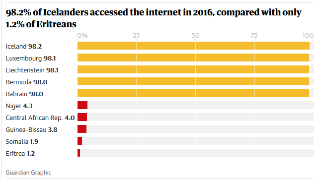 新数据显示全球互联网接入增长已经大幅放缓,这表明数字革命已经遍布全球各个角落。根据《卫报》报道,自2015年以来妇女和农村贫困人口基本上被排除在互联网提供的教育、商业和其他机会之外。