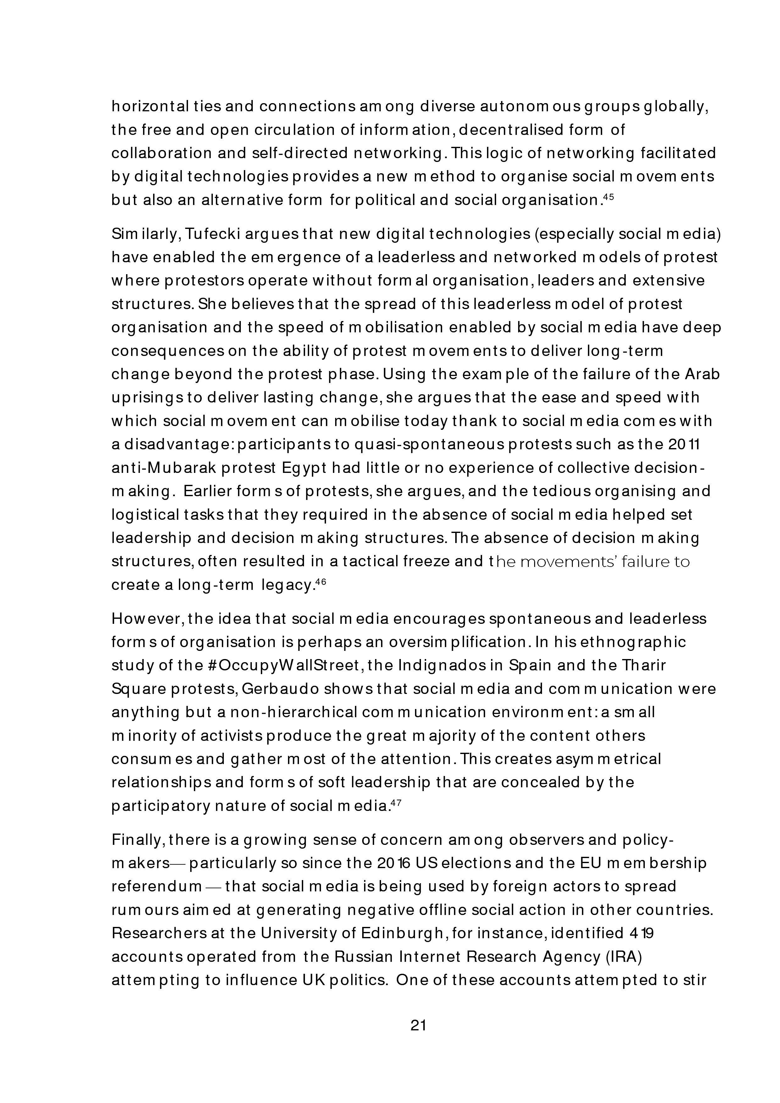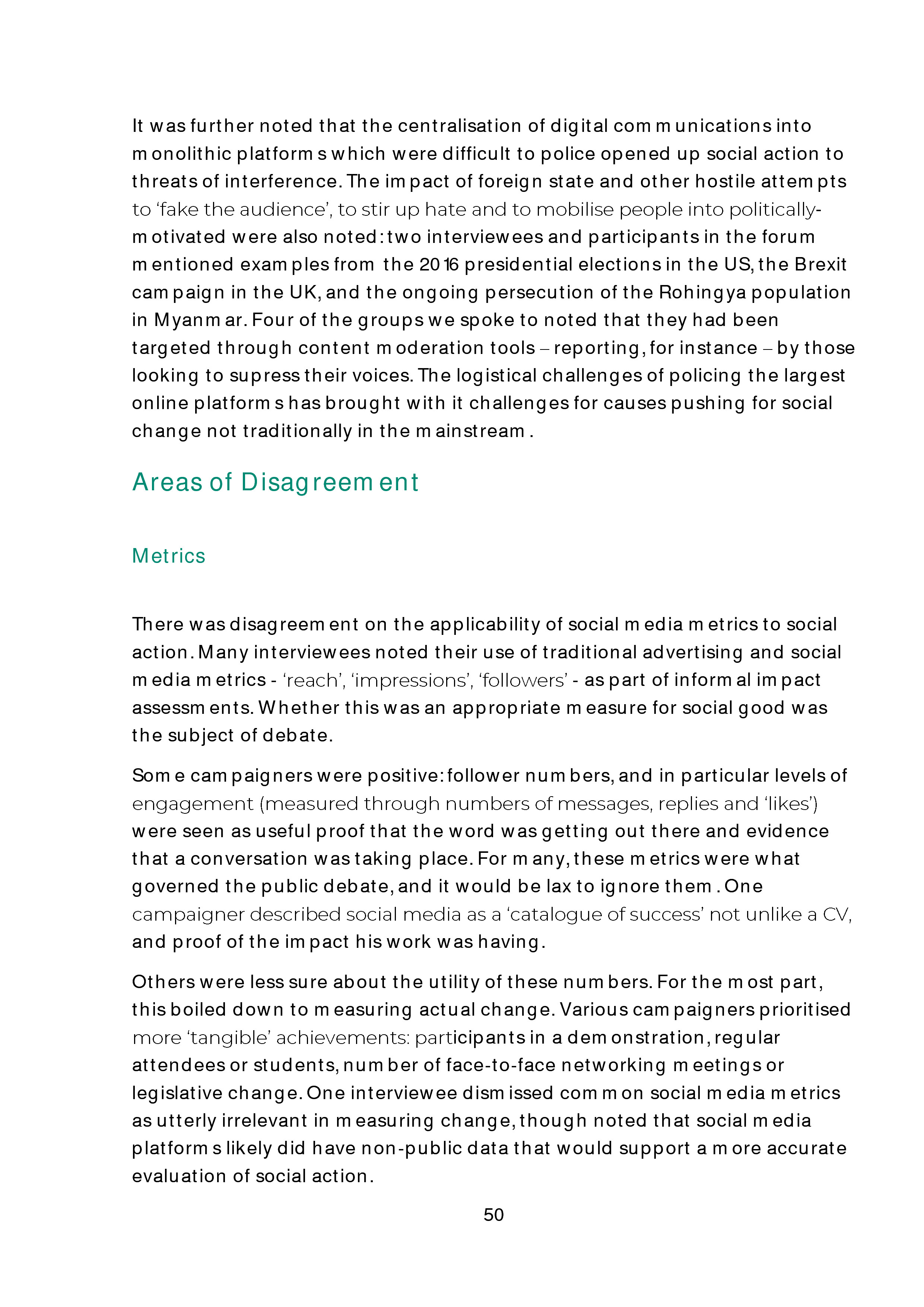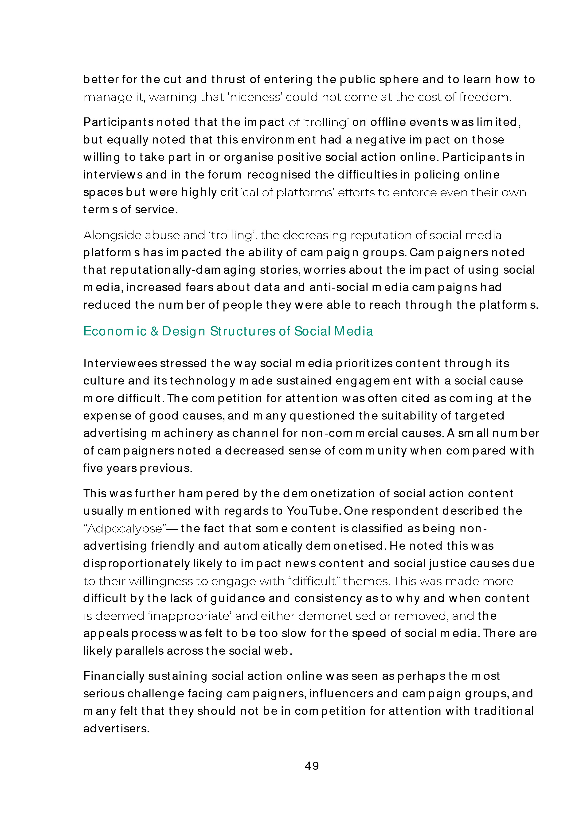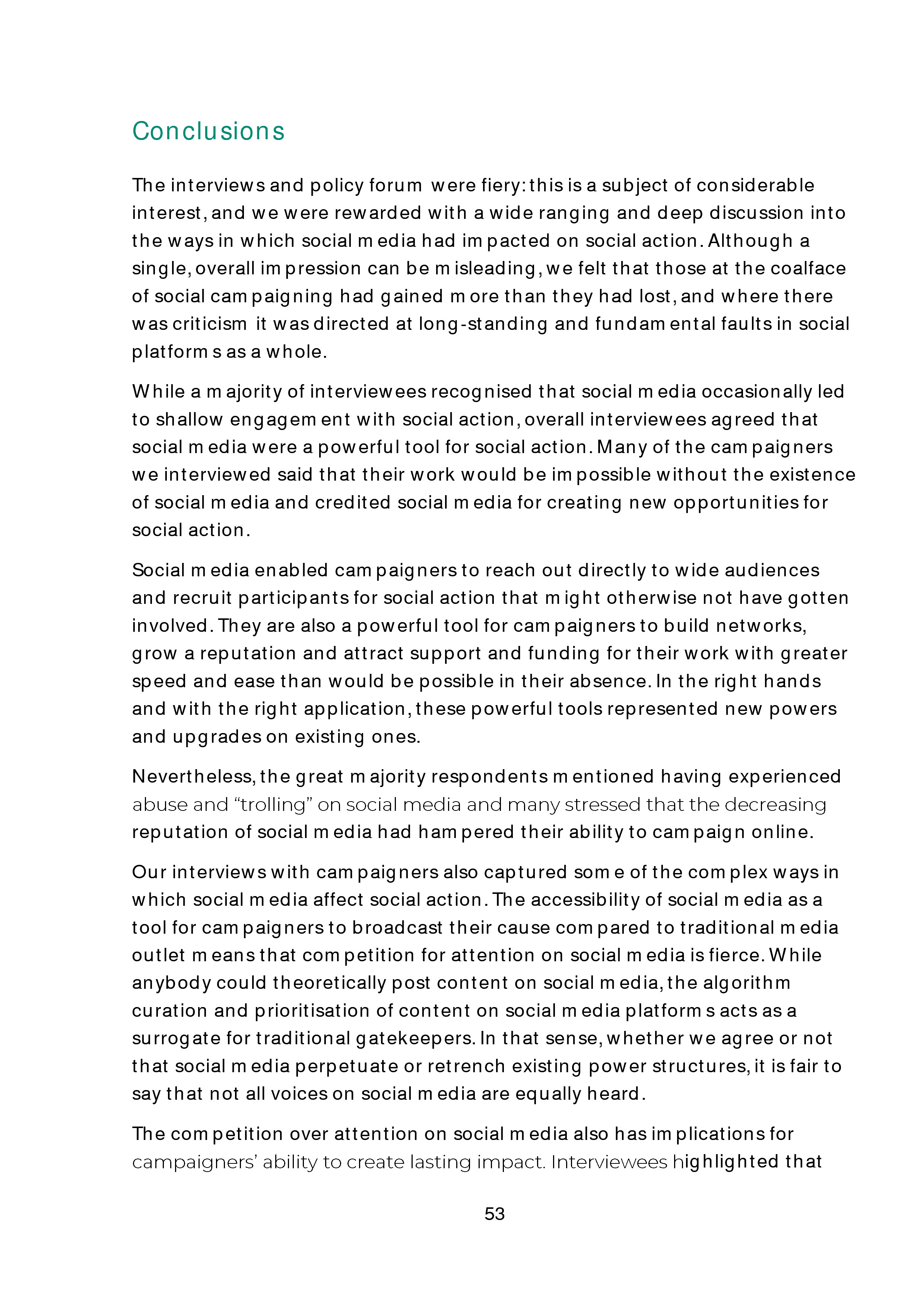 社交媒体是一种力量的倍增,社交媒体平台是积极的社会变革的有力工具,但是使用不当也可能造成相当大的伤害。滥用社交媒体可能颠覆积极的社会变革,包括传播错误的信息和仇恨;算法对消息类型以及发现其声音的组织类型的影响;以及激进主义风险等。