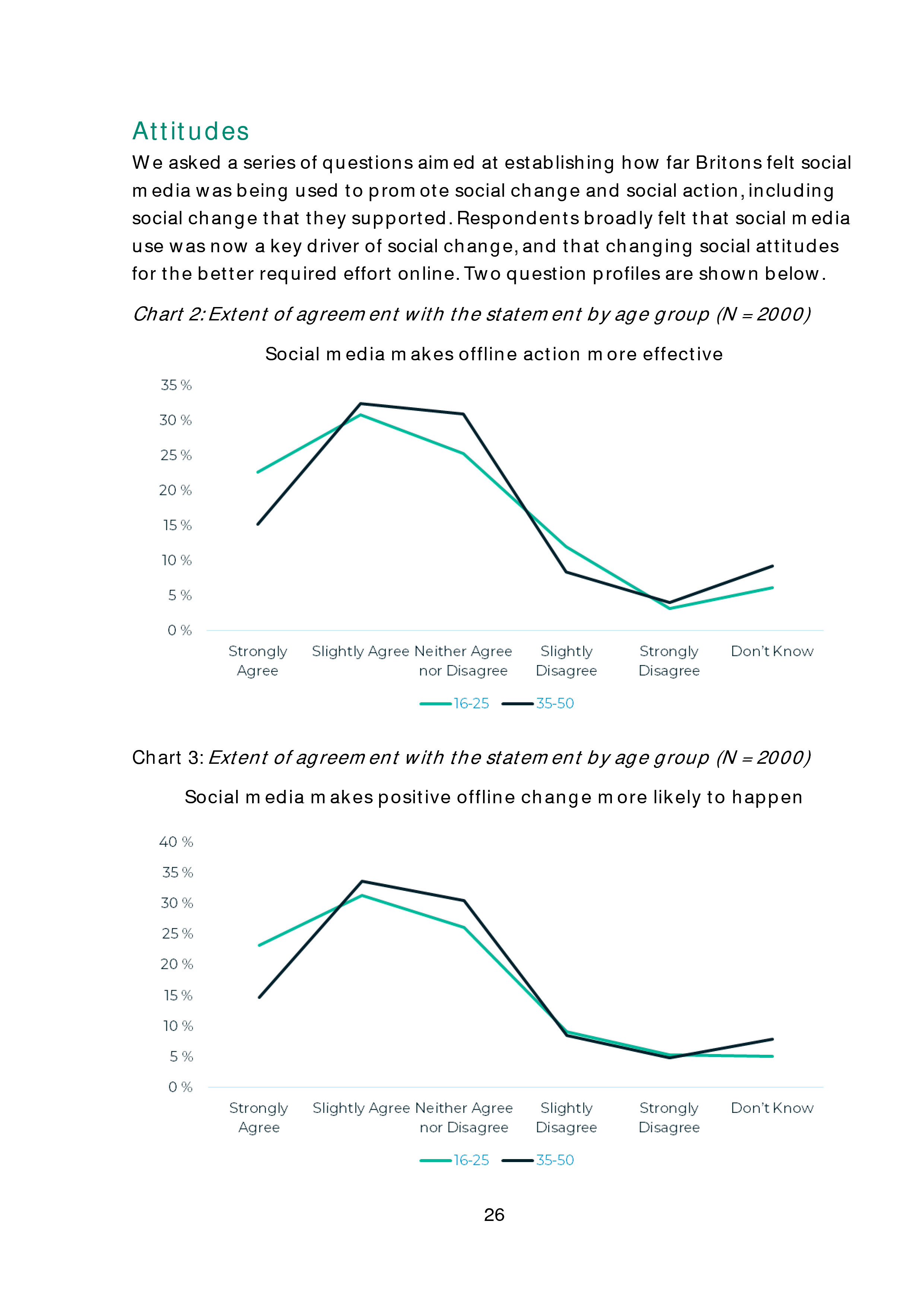 英国约有一半(55%)的年轻人认为社交媒体更容易推进积极的线下变革。