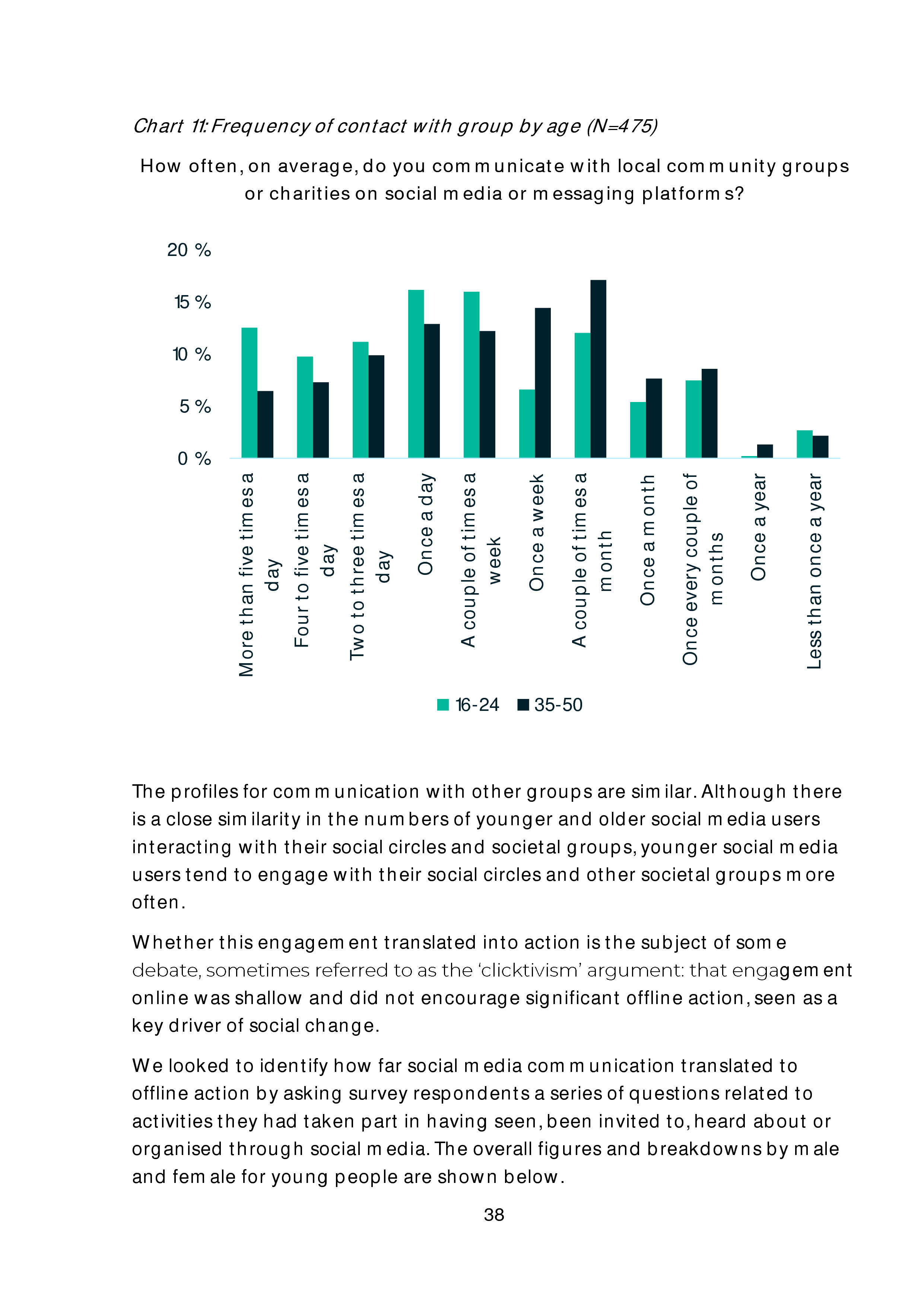 一半的年轻人使用社交媒体与社区团体、慈善机构和活动团体进行沟通,并且每天都这样做。