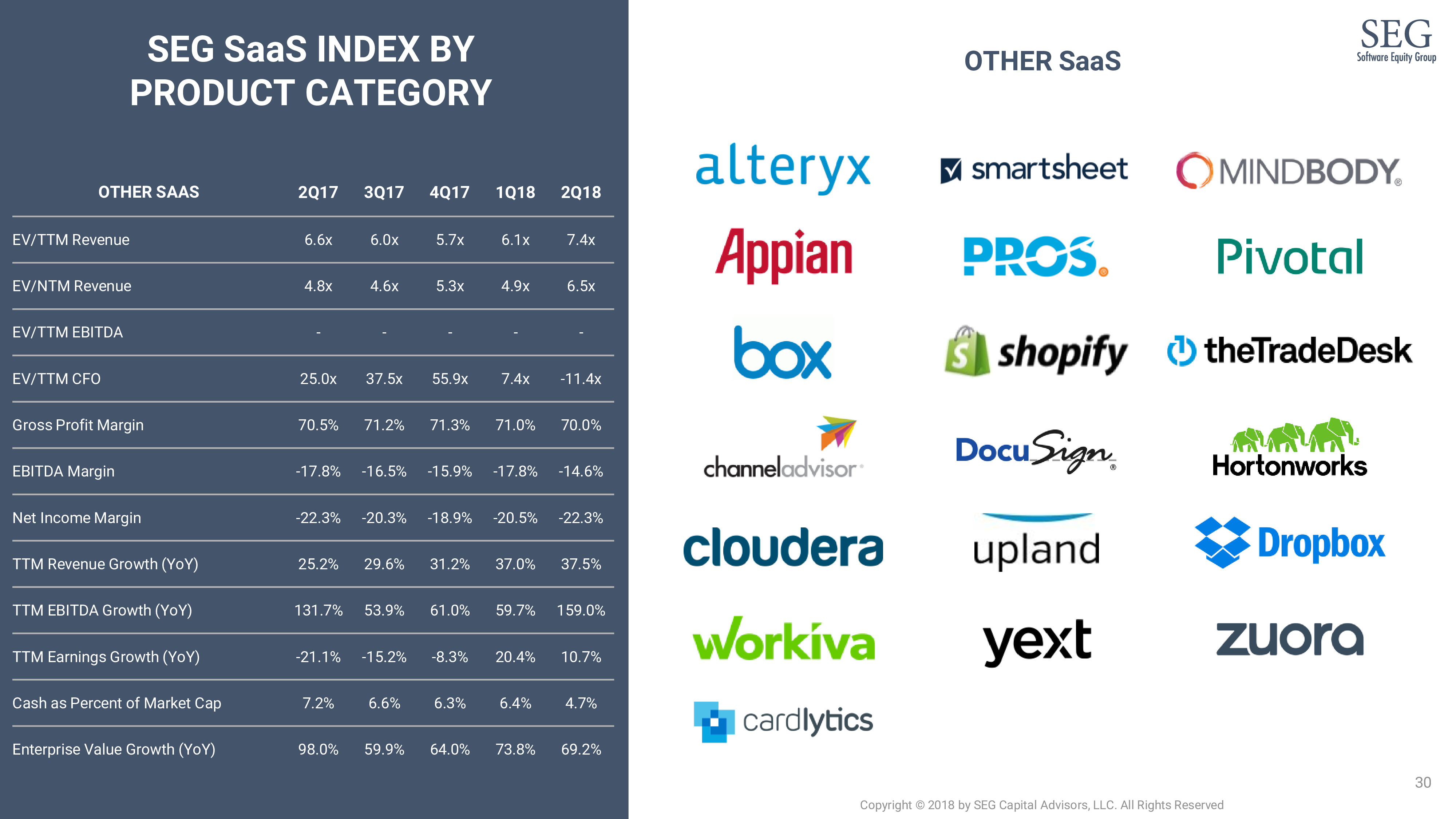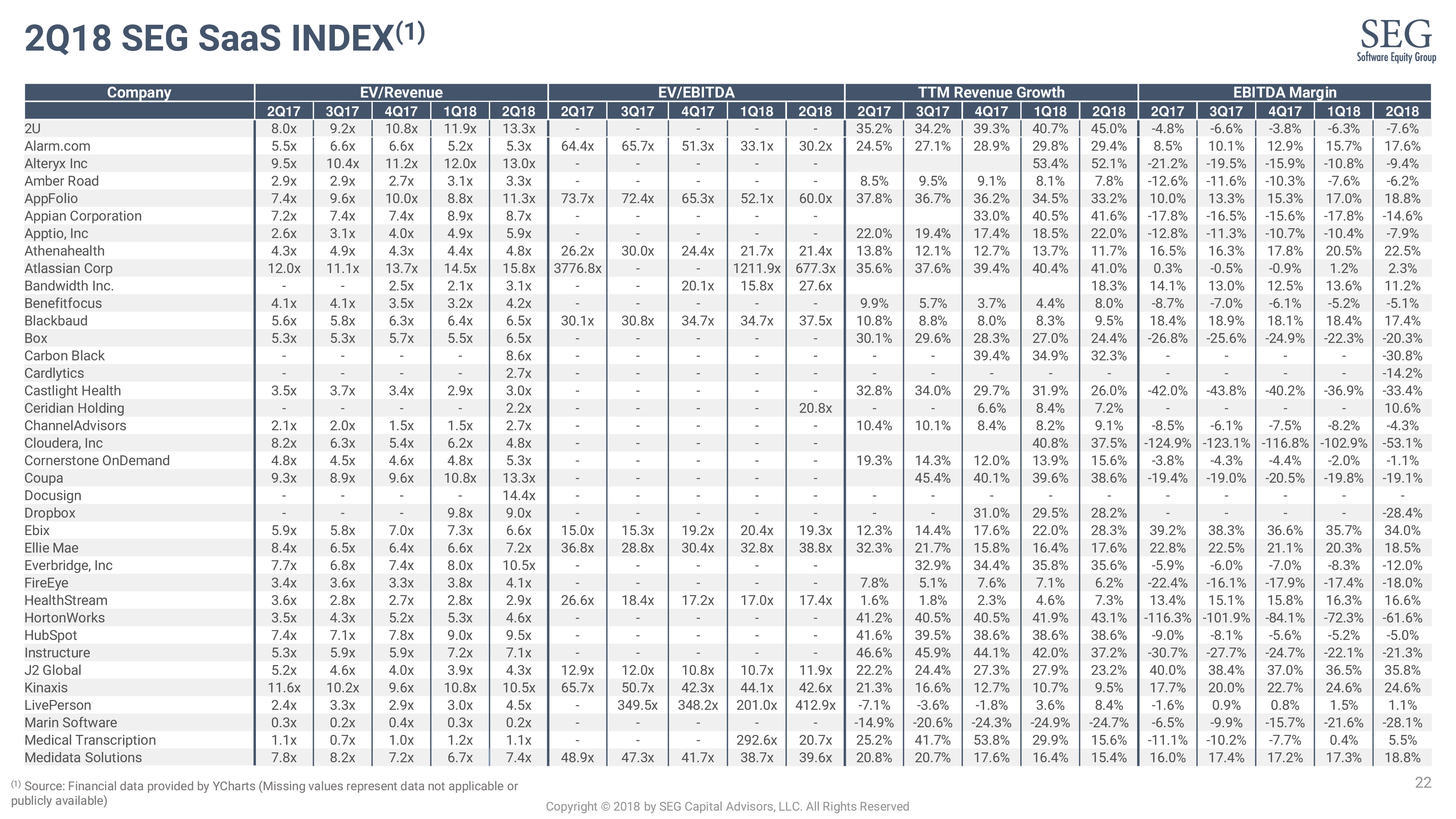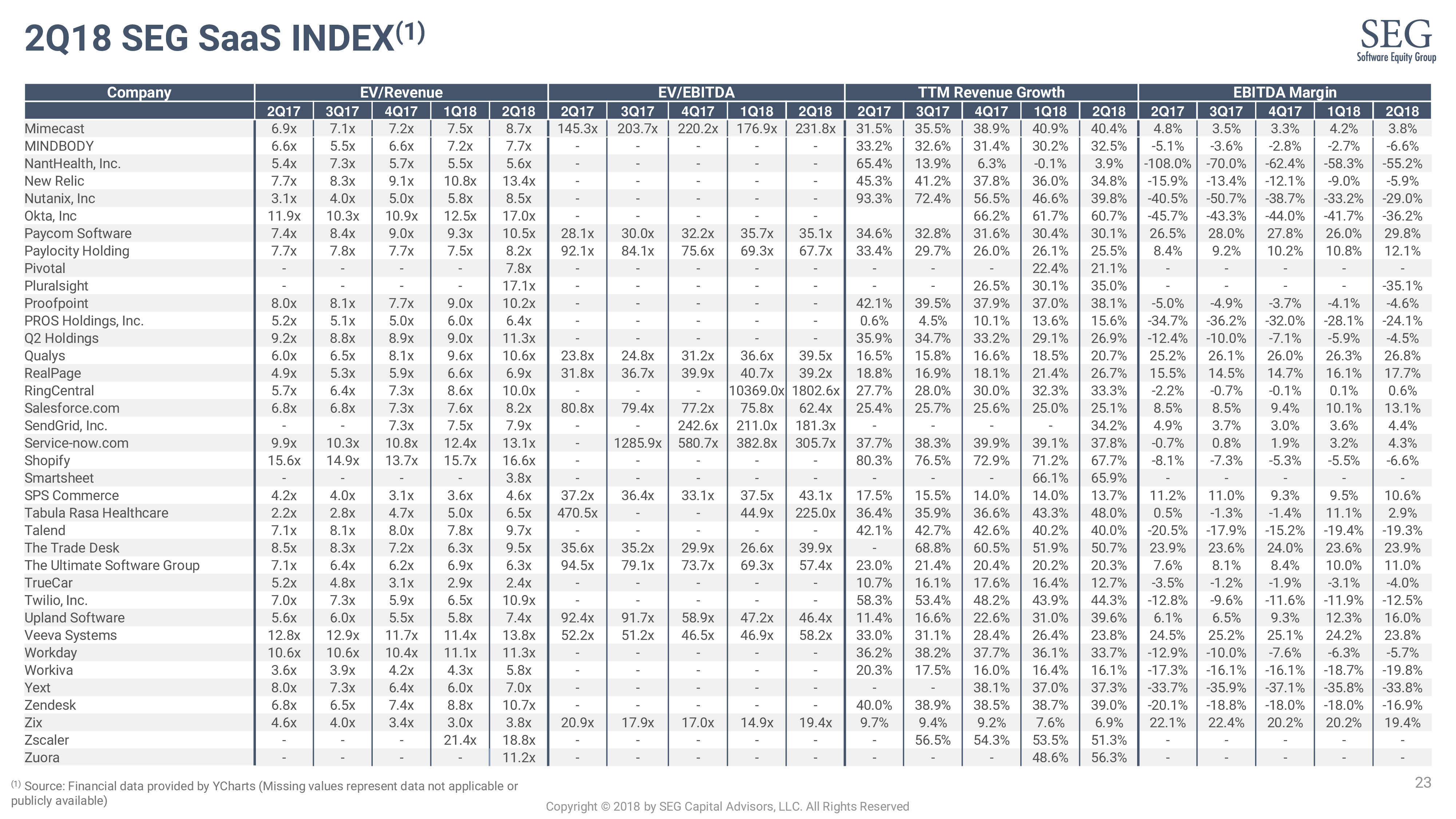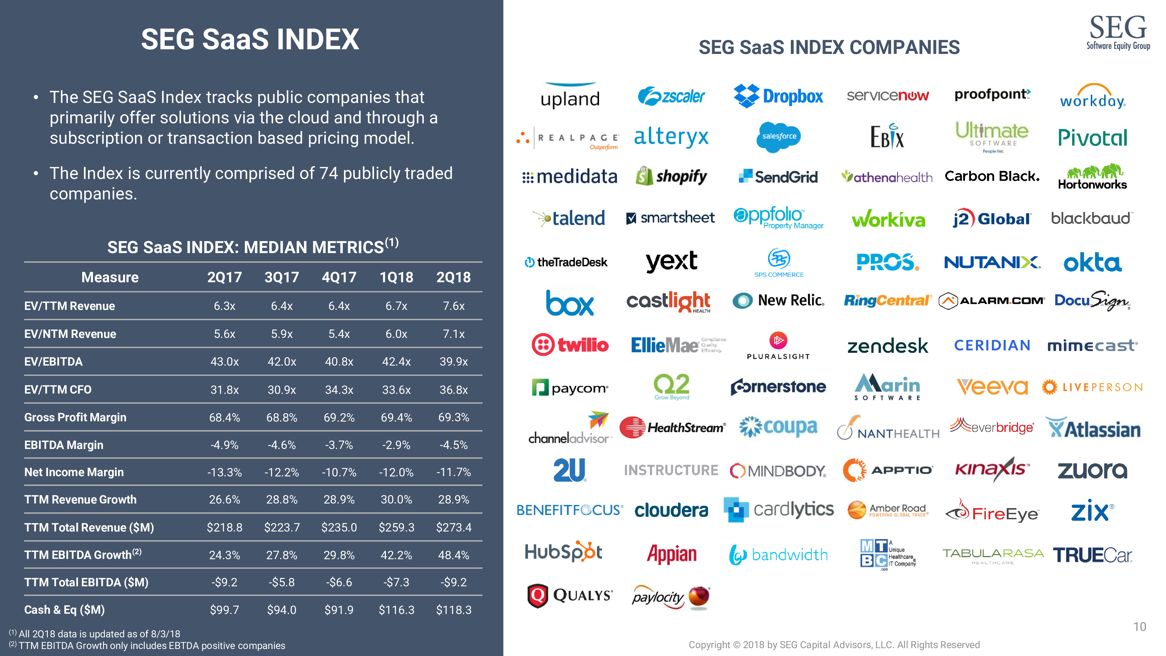 SEG发布了 “2018年第二季度SaaS公共市场报告”。