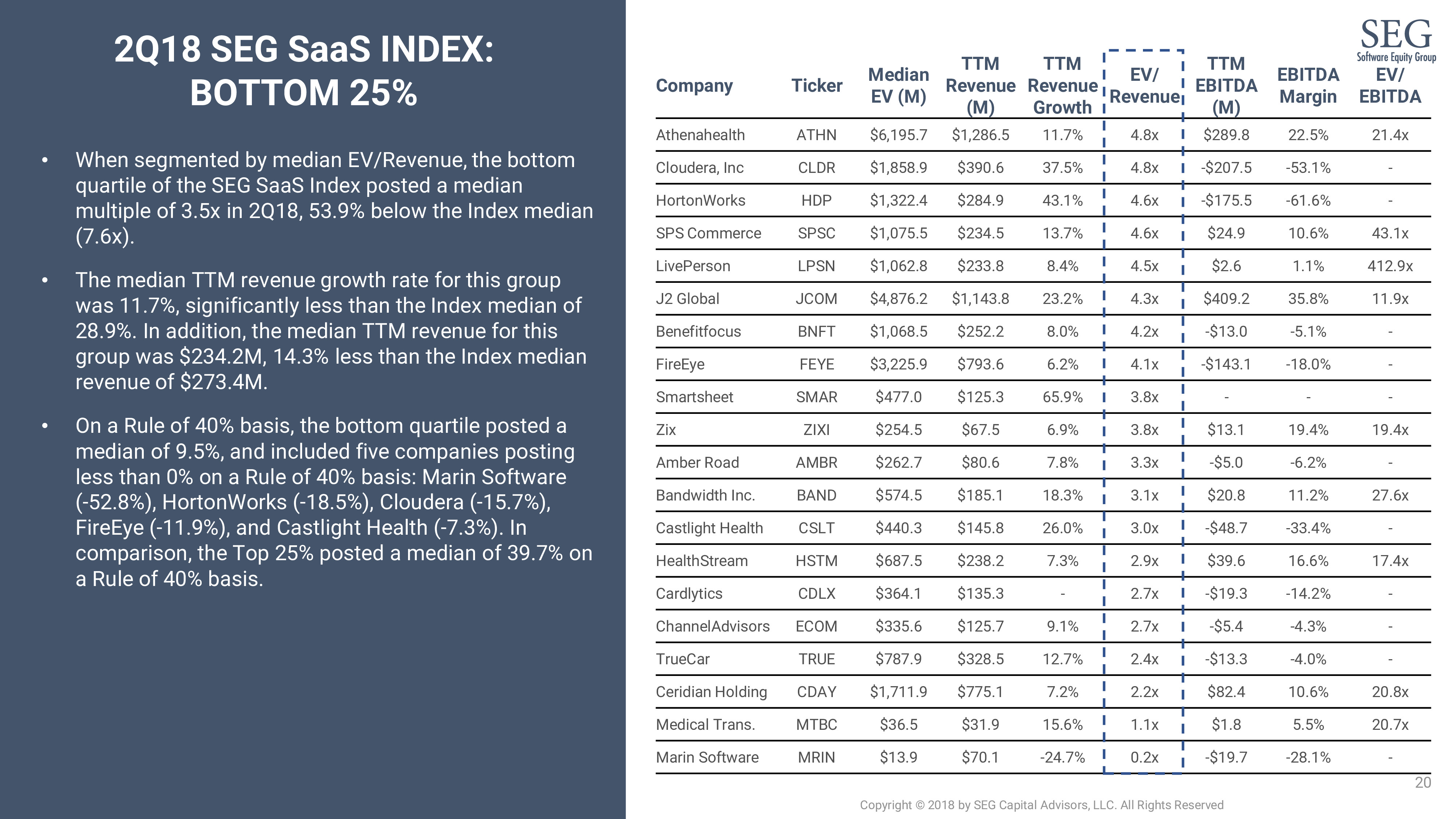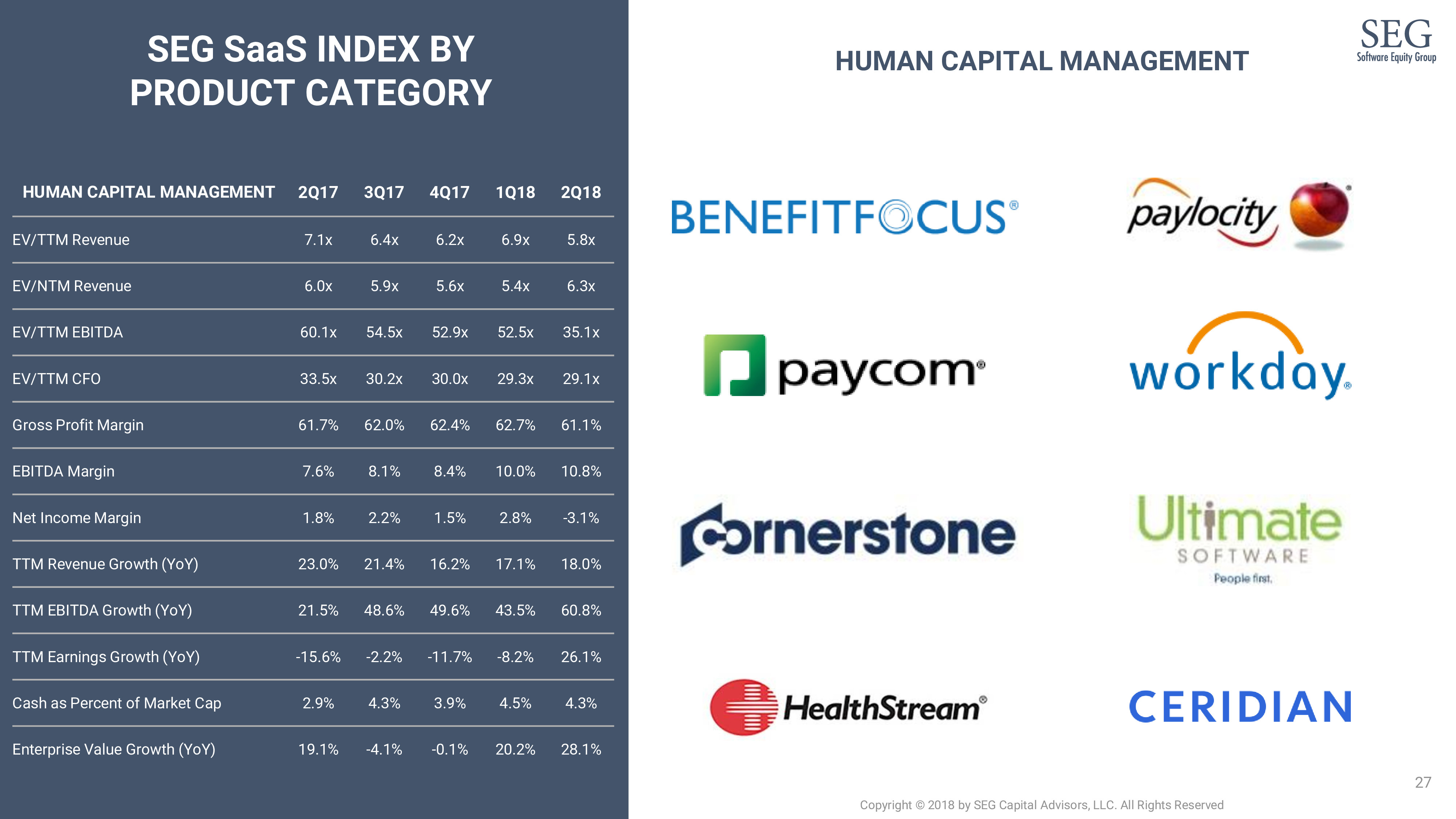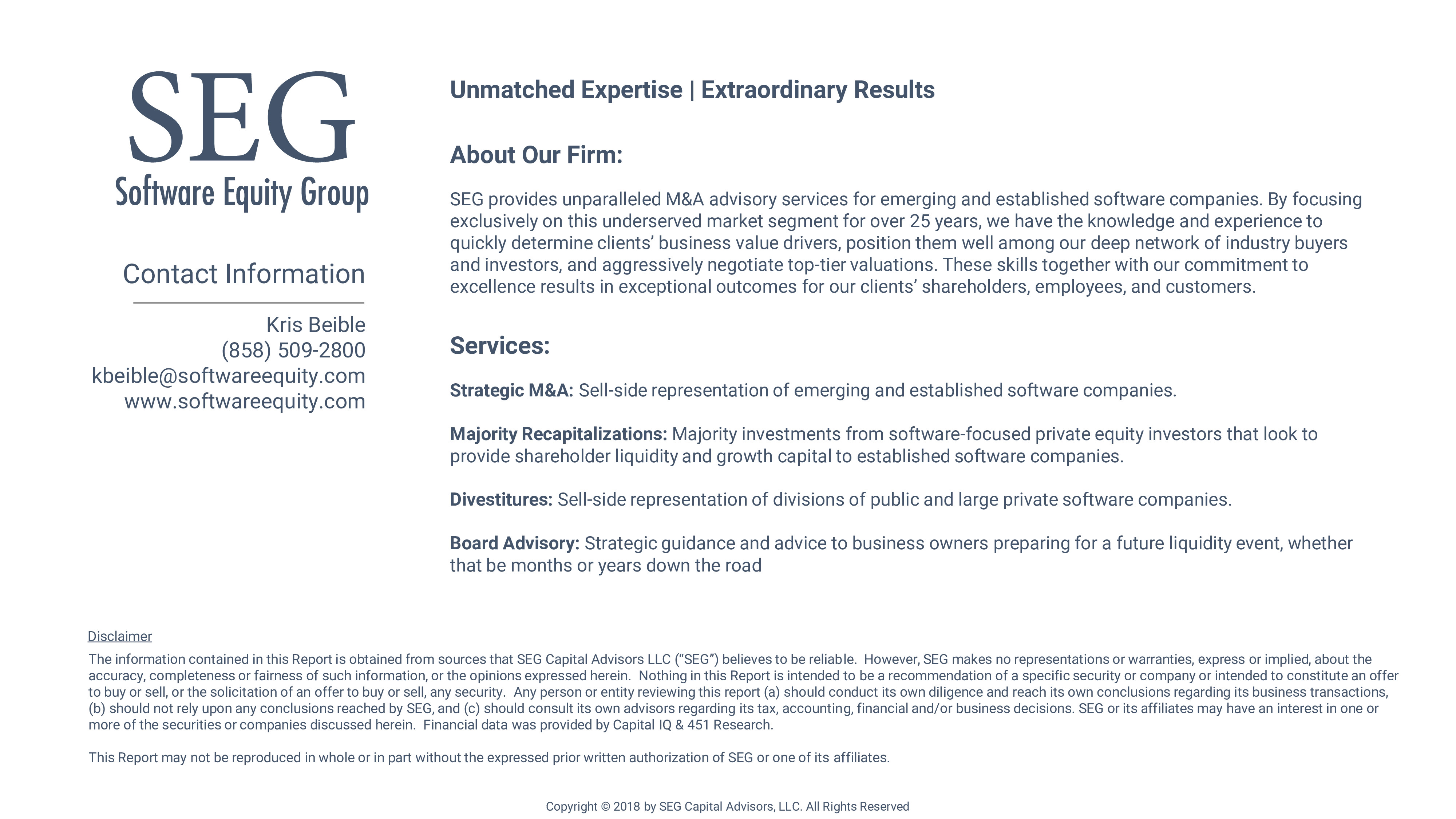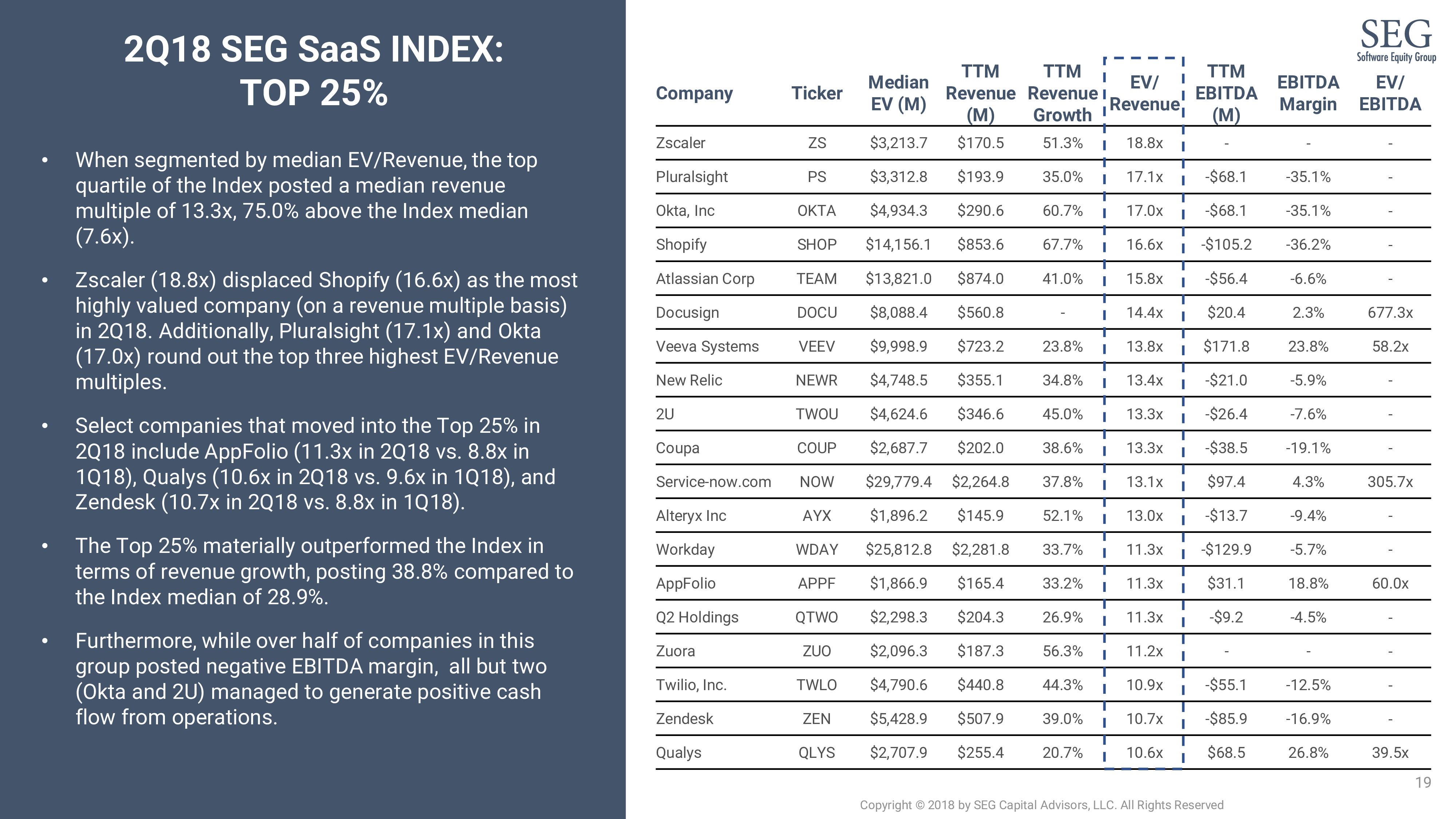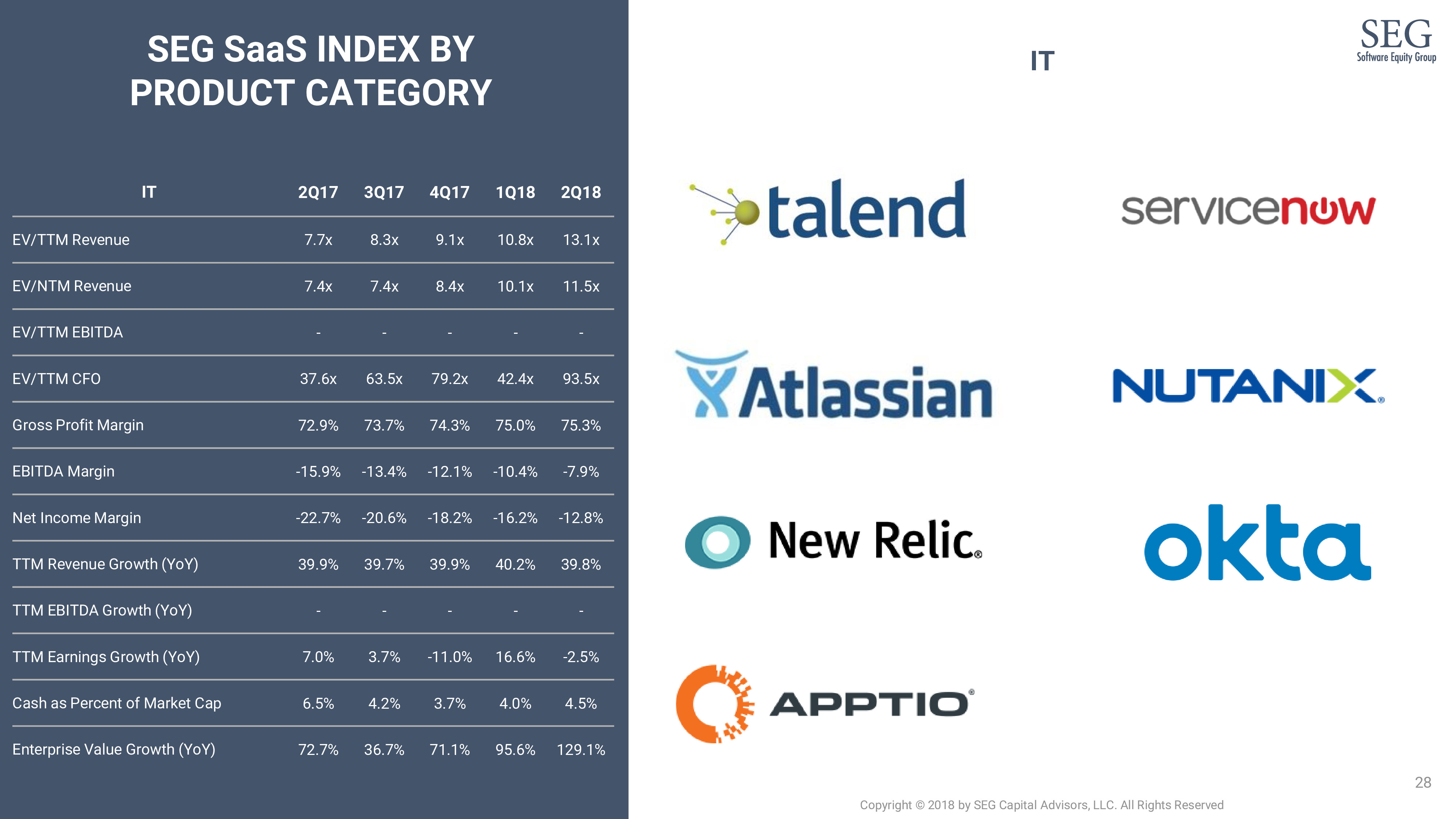 SEG发布了 “2018年第二季度SaaS公共市场报告”。