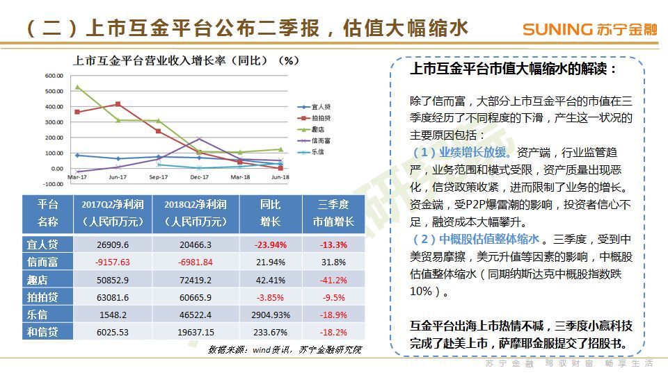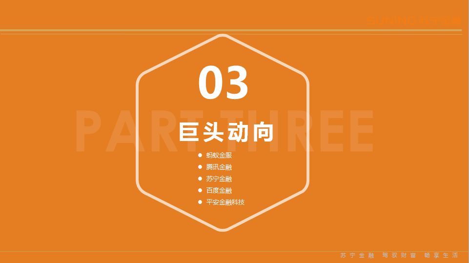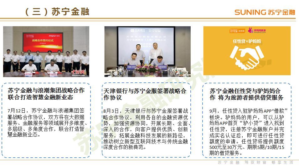 在场景搭建层面,3季度互金巨头开始积极布局新场景,例如苏宁金融在小微企业金融、旅游金融等方面持续发力,互联网金融的触角进一步向实体经济延伸。