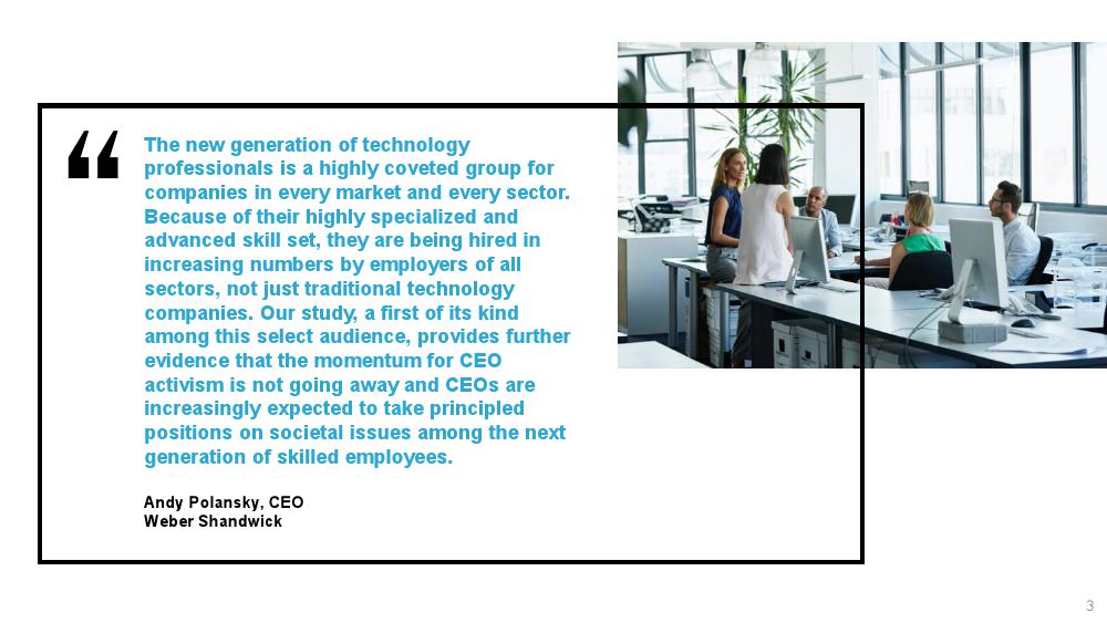 充分认识到对社会问题公开积极发表意见的CEO在吸引和留住人才,尤其是专业技术人员方面更具备优势。