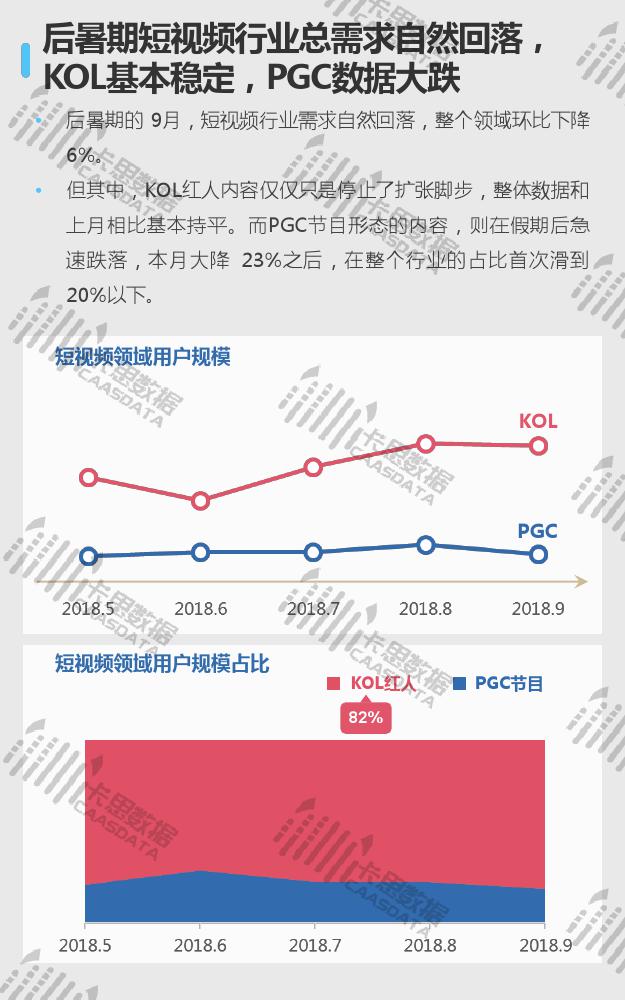 暑期结束后的9月,KOL领域的短视频内容停止了大幅扩张的步伐,数据维持在8月的火热态势。与数据迅速下滑的PGC领域相比,KOL领域整体比较稳定。
