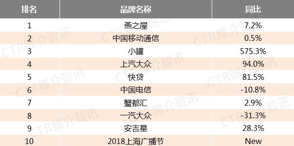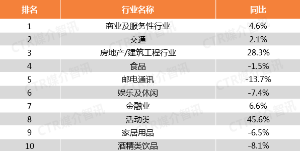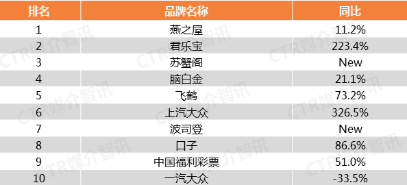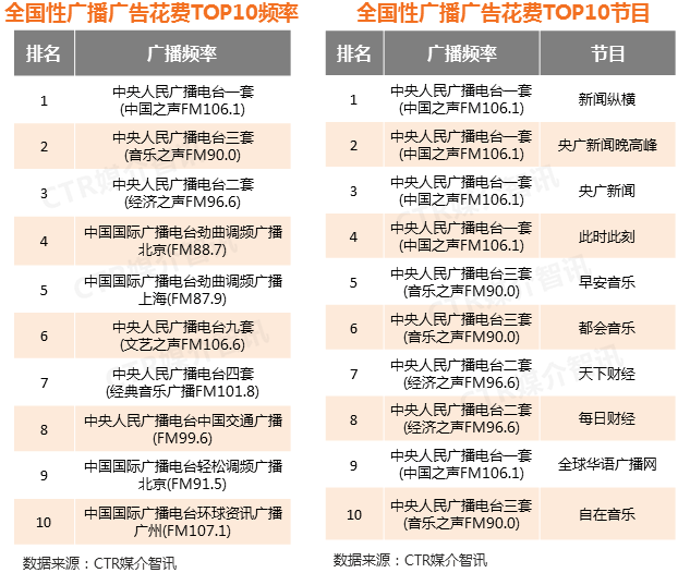 全国性广播广告花费榜单足见食品行业的投放热情。