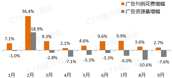 CTR媒介智讯的最新研究显示,2018年9月广播广告刊例花费和资源量同比迎来今年的第二个低点,广告花费同比微涨2.7%,时长同比下降7.6%。
