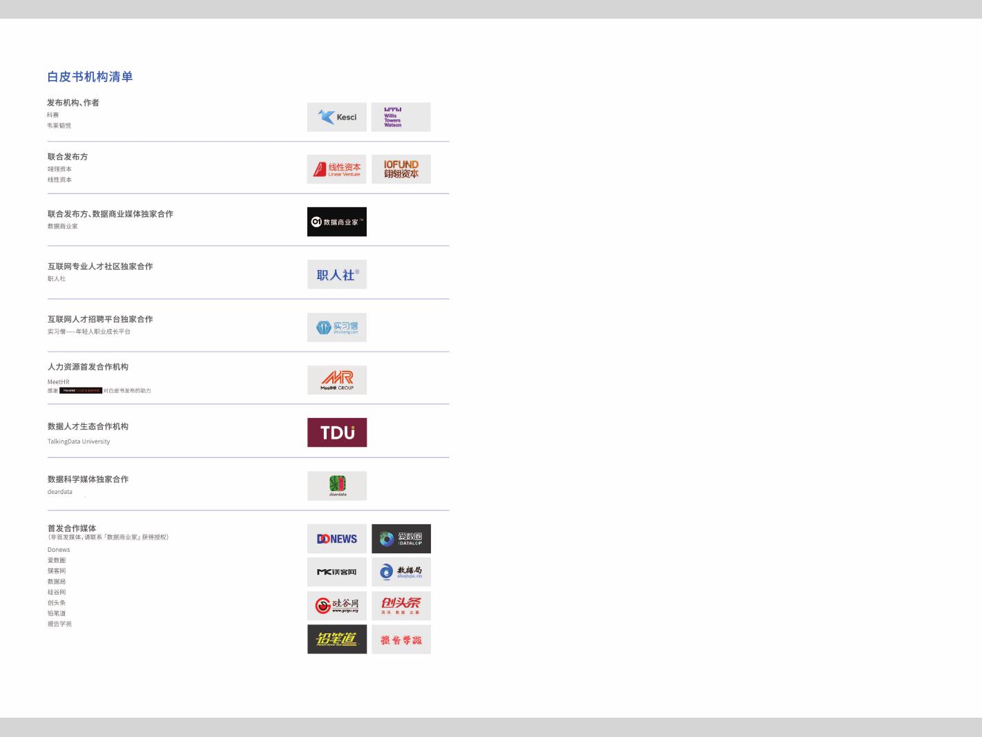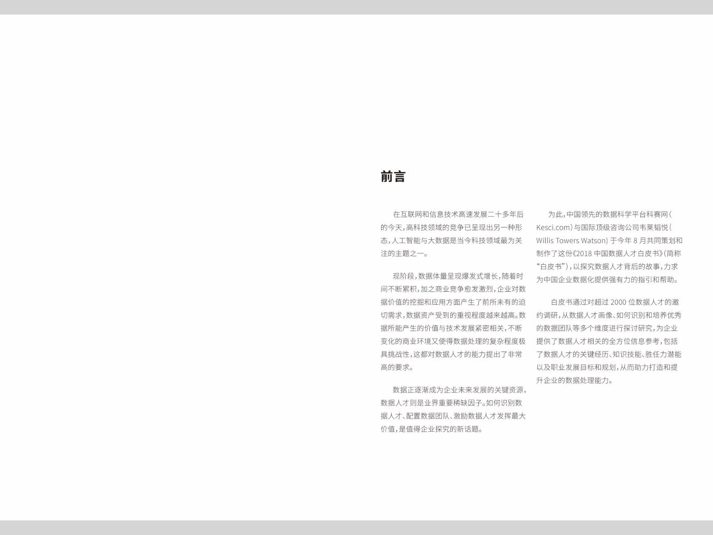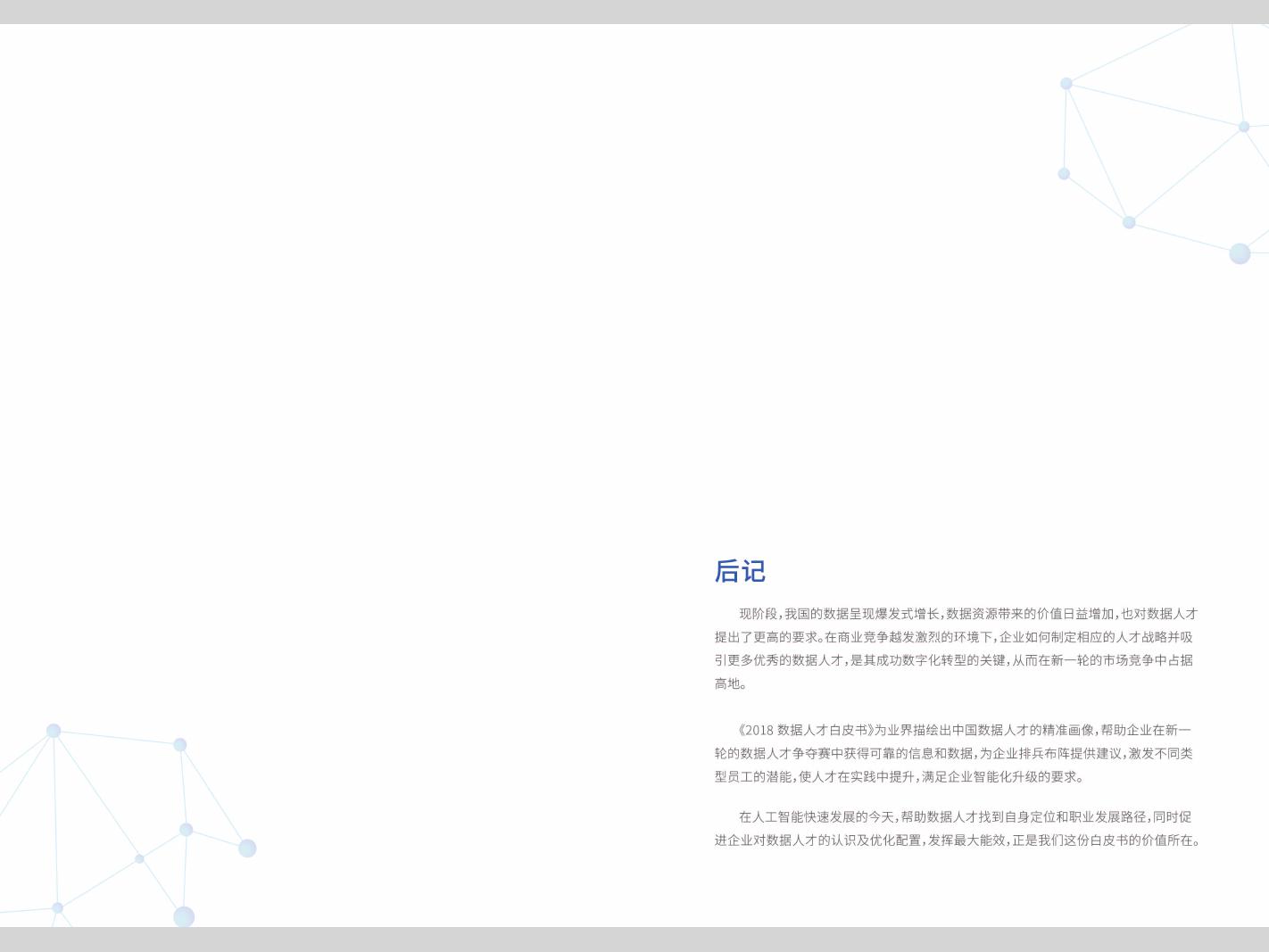 科赛:2018数据人才白皮书 PDF版本将分享到199IT交流群,支持我们发展可加入! 更多阅读:怎样才能持续聘到优秀的数据人才?复旦发展研究院:中国女性养老与风险管理白皮书头条指数:2019年艾滋病资讯白皮书中国留学生白皮书微信生活白皮书:图解我们的数据腾讯房产:2017租赁时代白皮书CiC:2021年智慧城市白皮书小葫芦:2020直播电商白皮书南方电网:2020年数字电网白皮书中国公路学会:2020交通运输区块链白皮书胡润研究院:2020中国高净值人群需求管理白皮书2020抖音企业经营白皮书:企业号突破500万,内容生态高度繁荣秒针系统:2020年母婴行业营销白皮书2020年新一代人工智能白皮书:产业智能化升级中国联通:5G终端白皮书(第三阶段)