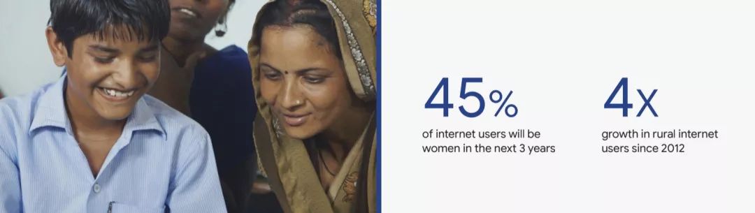 - 农村的互联网用户增长了4倍,女性用户的增长势头强劲,未来三年45%的用户将会是女性;