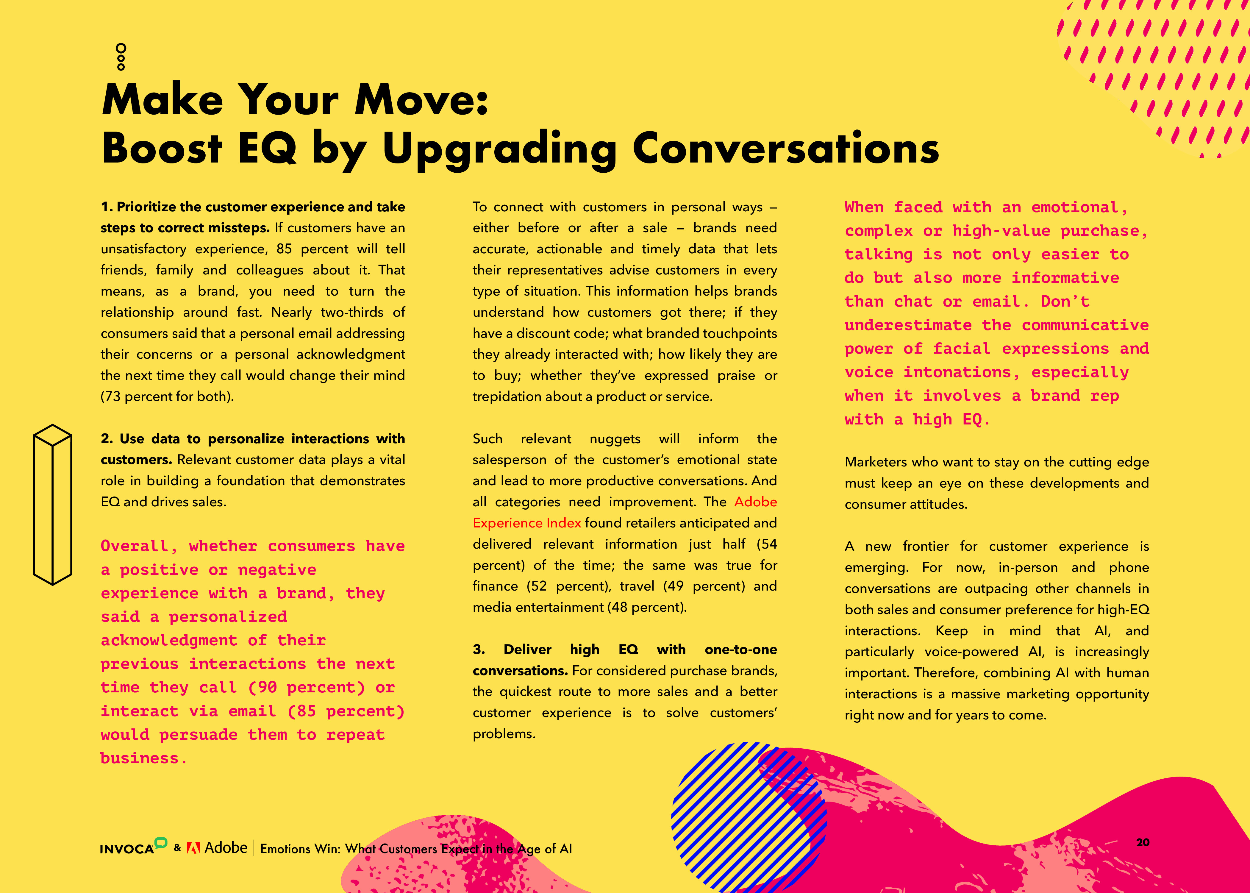 情绪是品牌忠诚度的推动因素,而不是价格竞争力或品牌价值等理性因素。 Invoca和Adobe发布的新报告“消费者在AI世代的期待是什么?情感胜出”,揭示了高情商对消费者的重要意义。