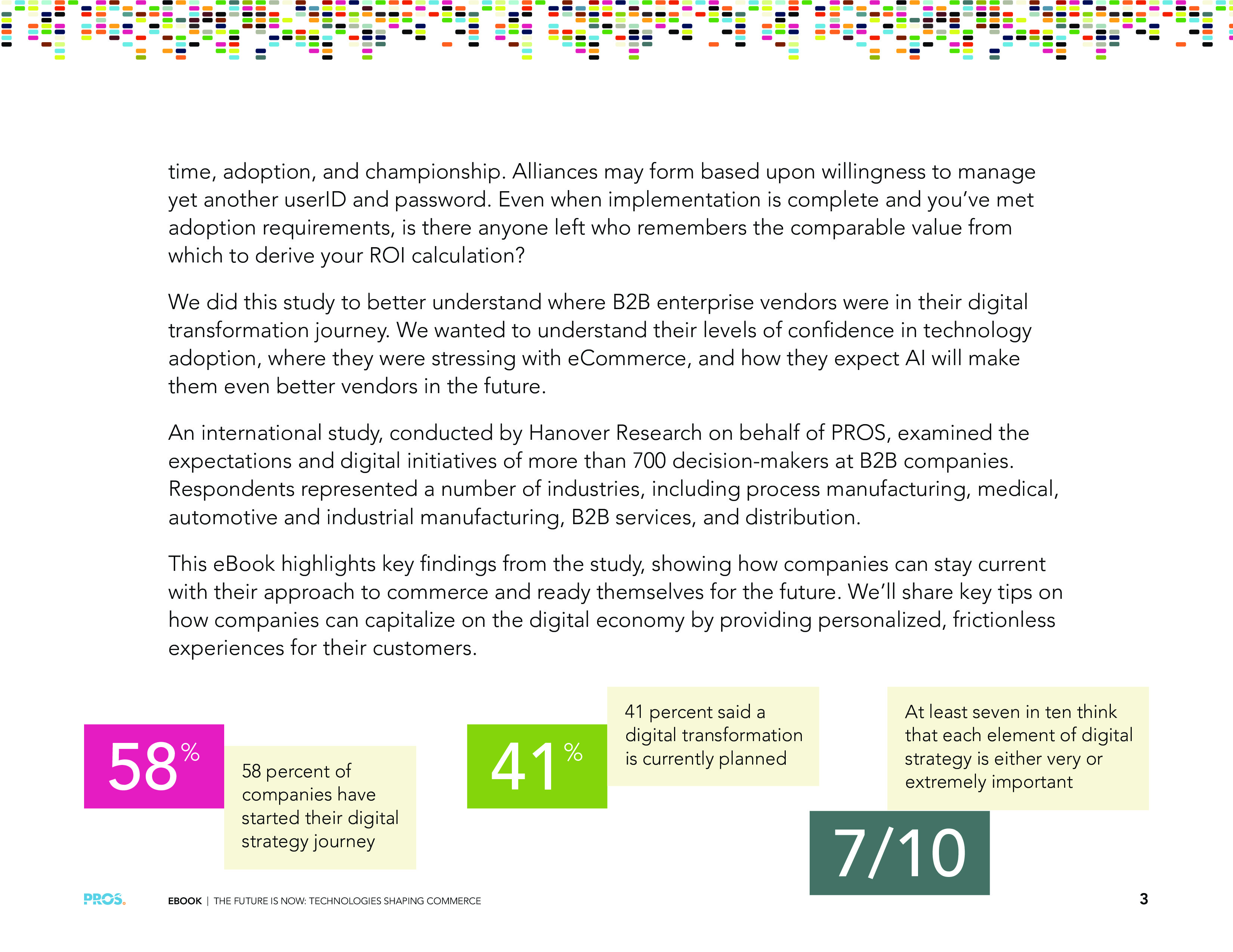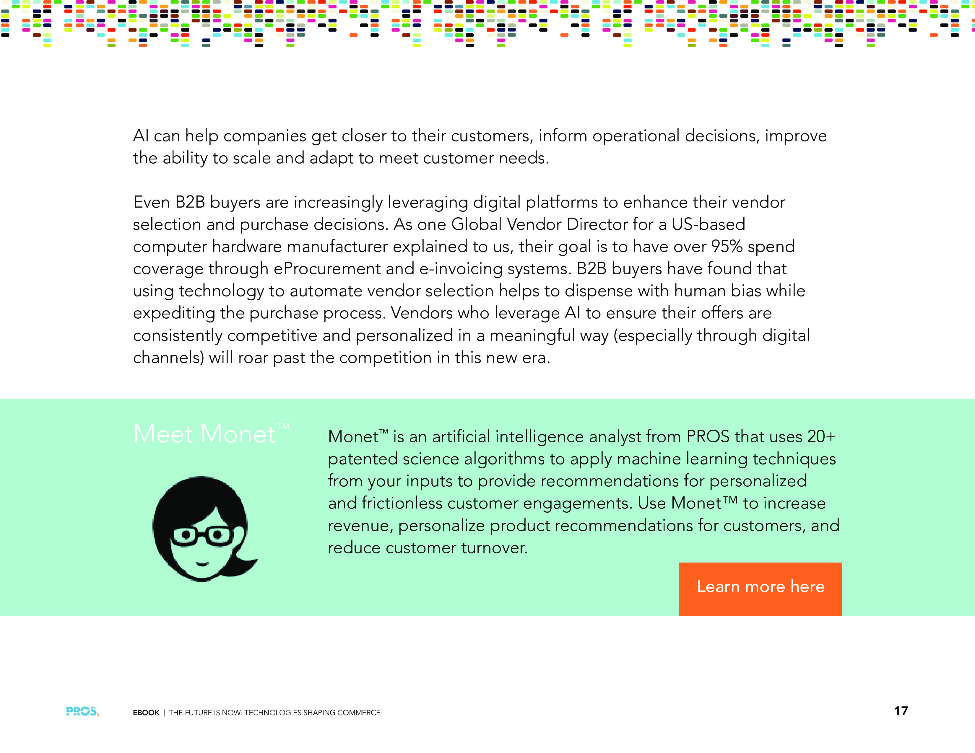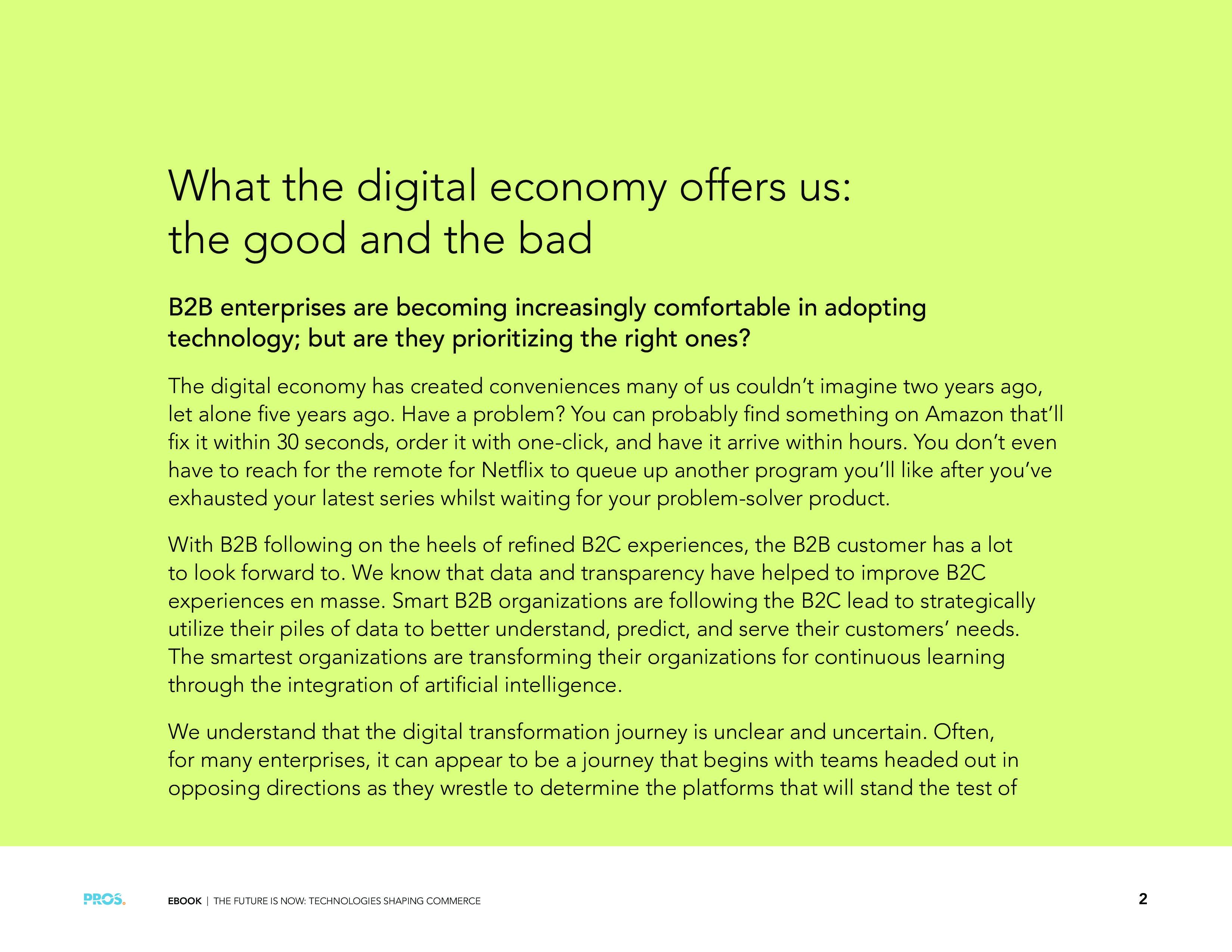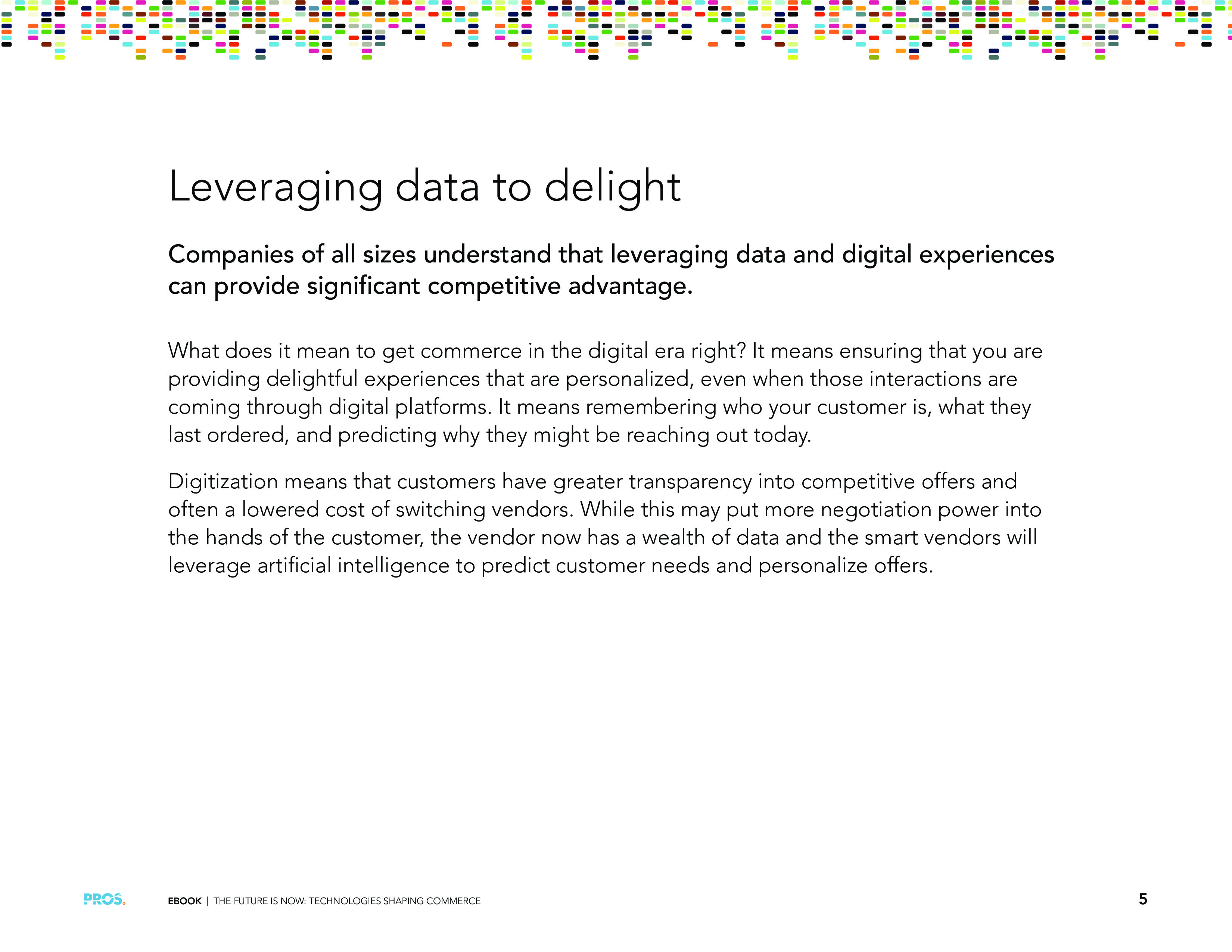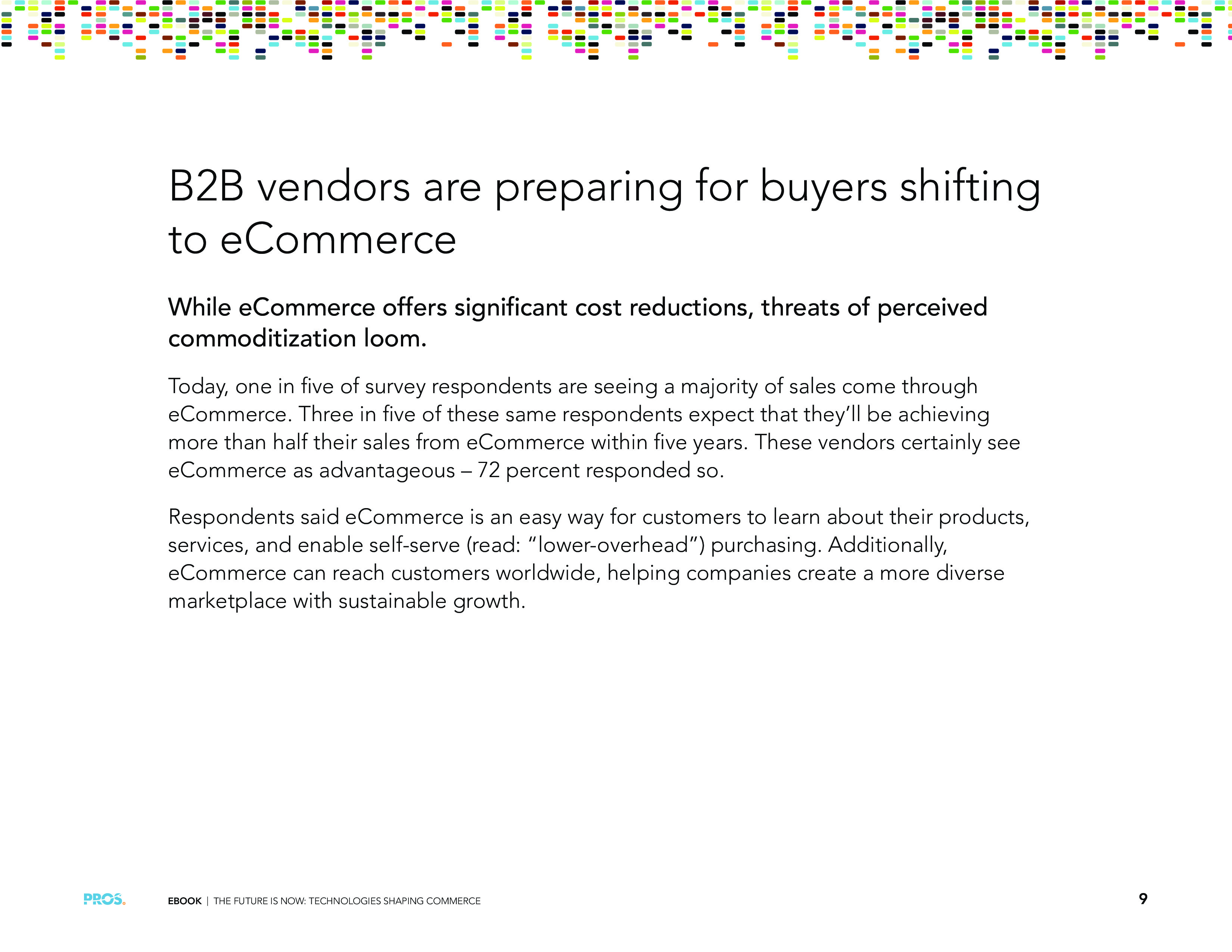 PROS发布了新报告“未来就是现在——科技塑造电子商务”。全球B2B公司每5个决策者中就有一个从电子商务中获得大部分销售额。5年后这个数字将增长3倍。