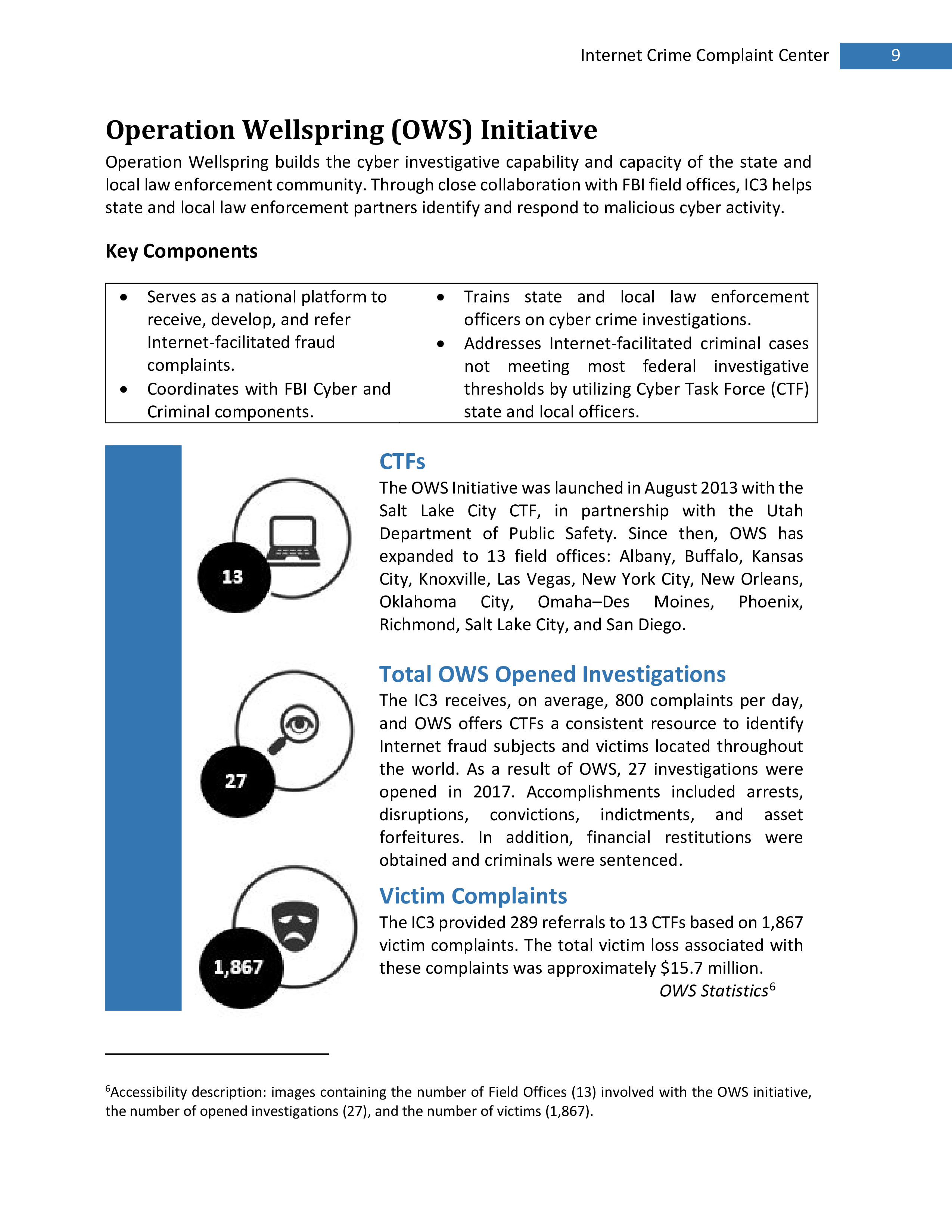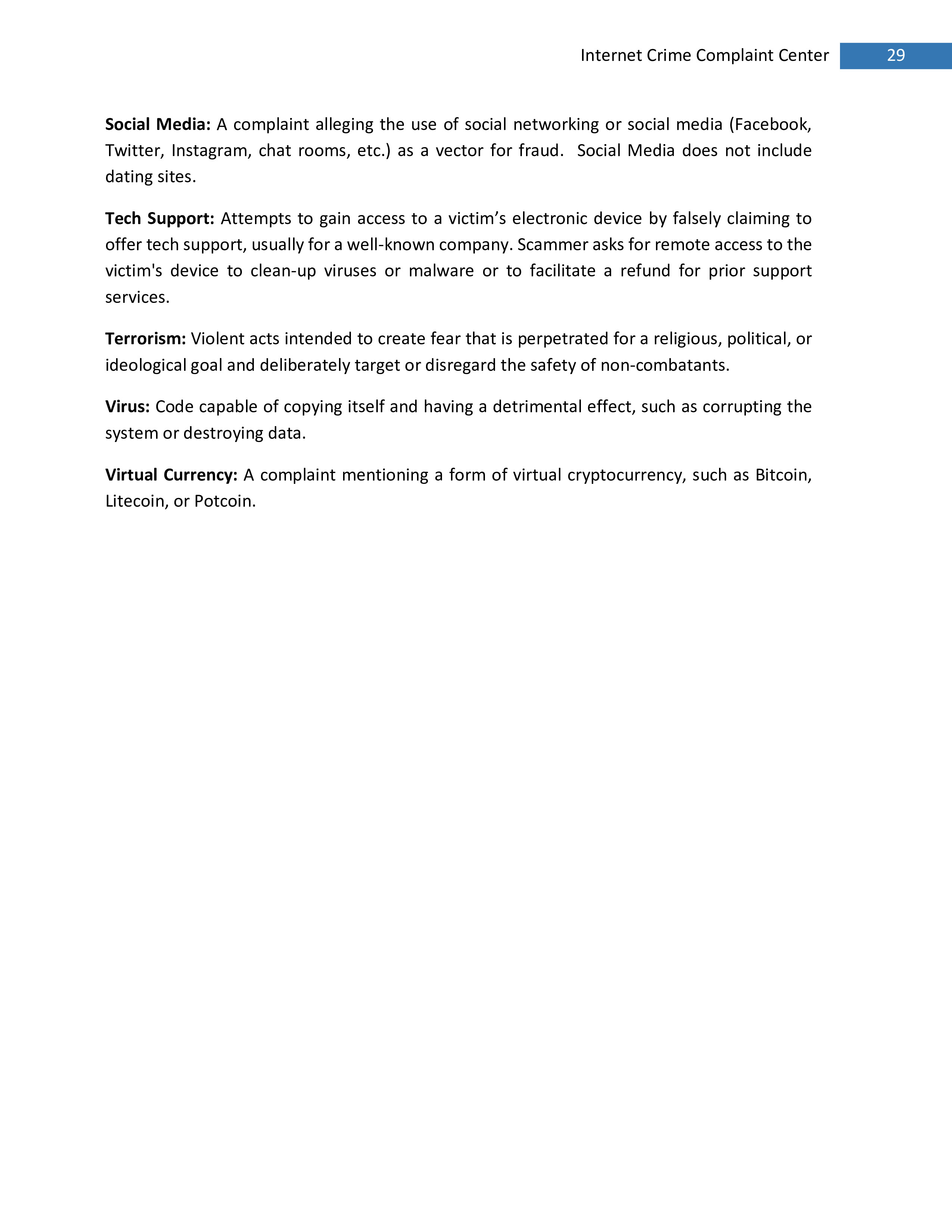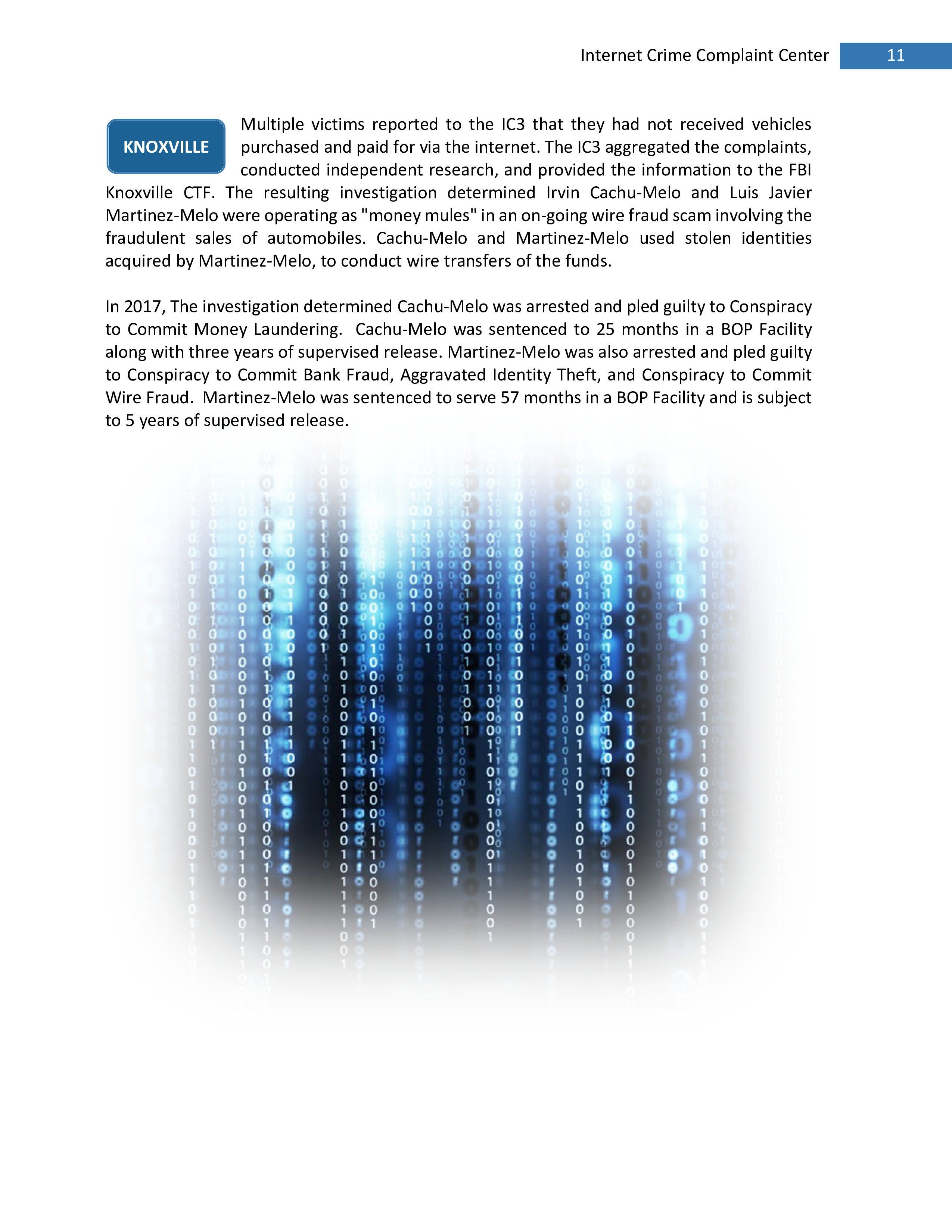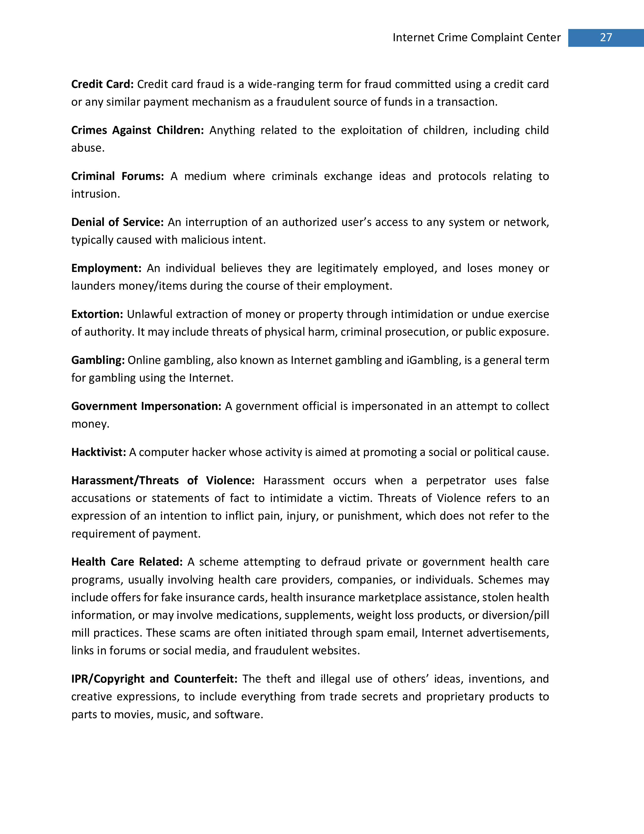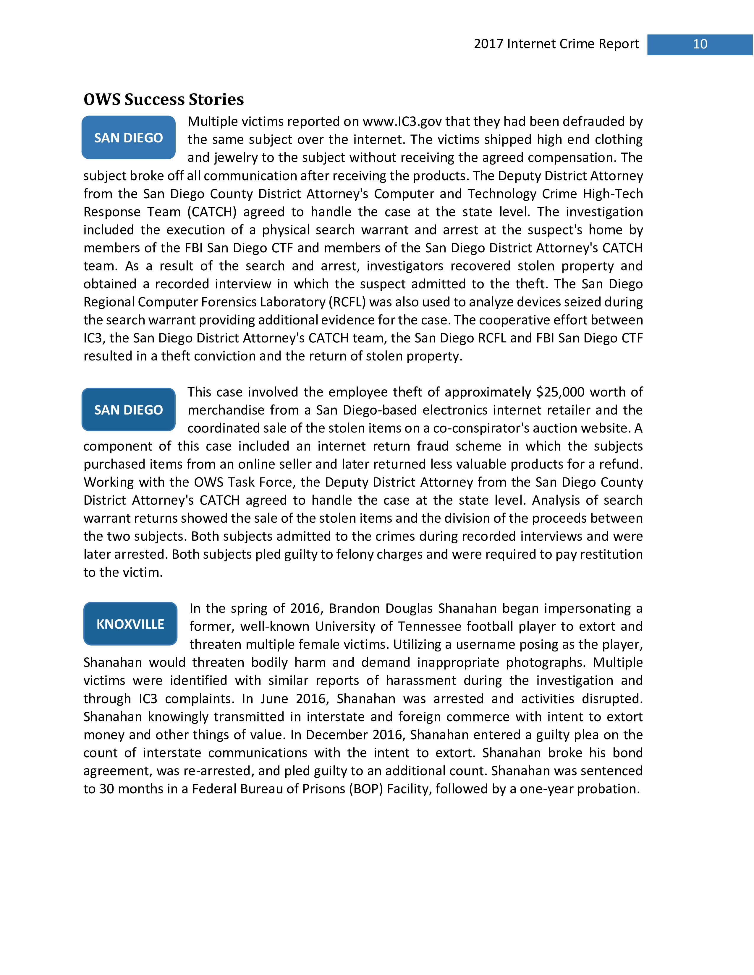2017年,IC3共收到301,580起投诉,报告的损失超过14亿美元。在过去的一年里,受害者报告的最普遍的犯罪类型是不付款/未送达、个人数据泄露和网络钓鱼。报告损失最高的前三种犯罪类型是BEC、浪漫欺诈和不付款/未送达。