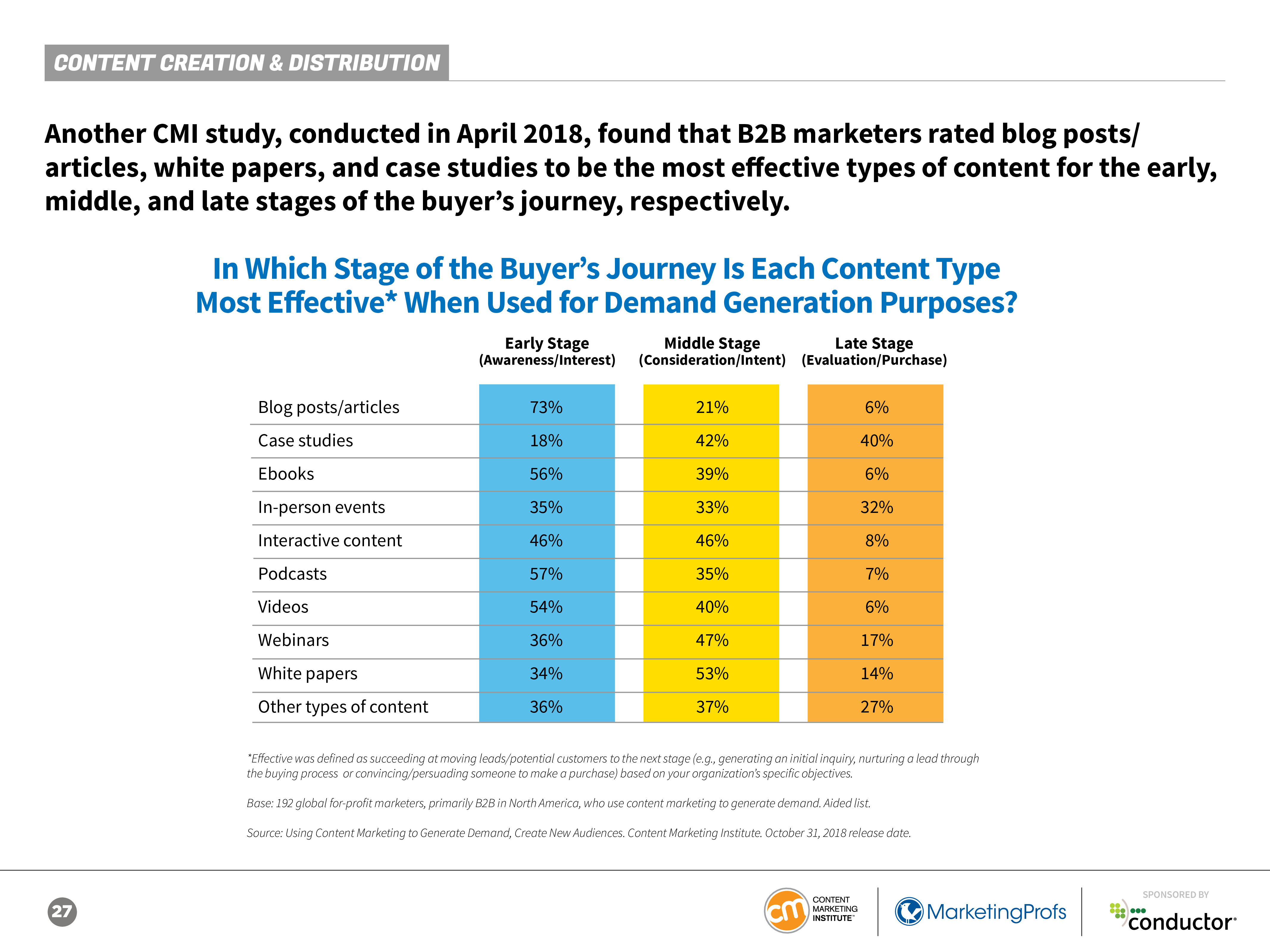 今年约有52%的受访者根据买家的购买阶段制作内容,高于去年的41%。