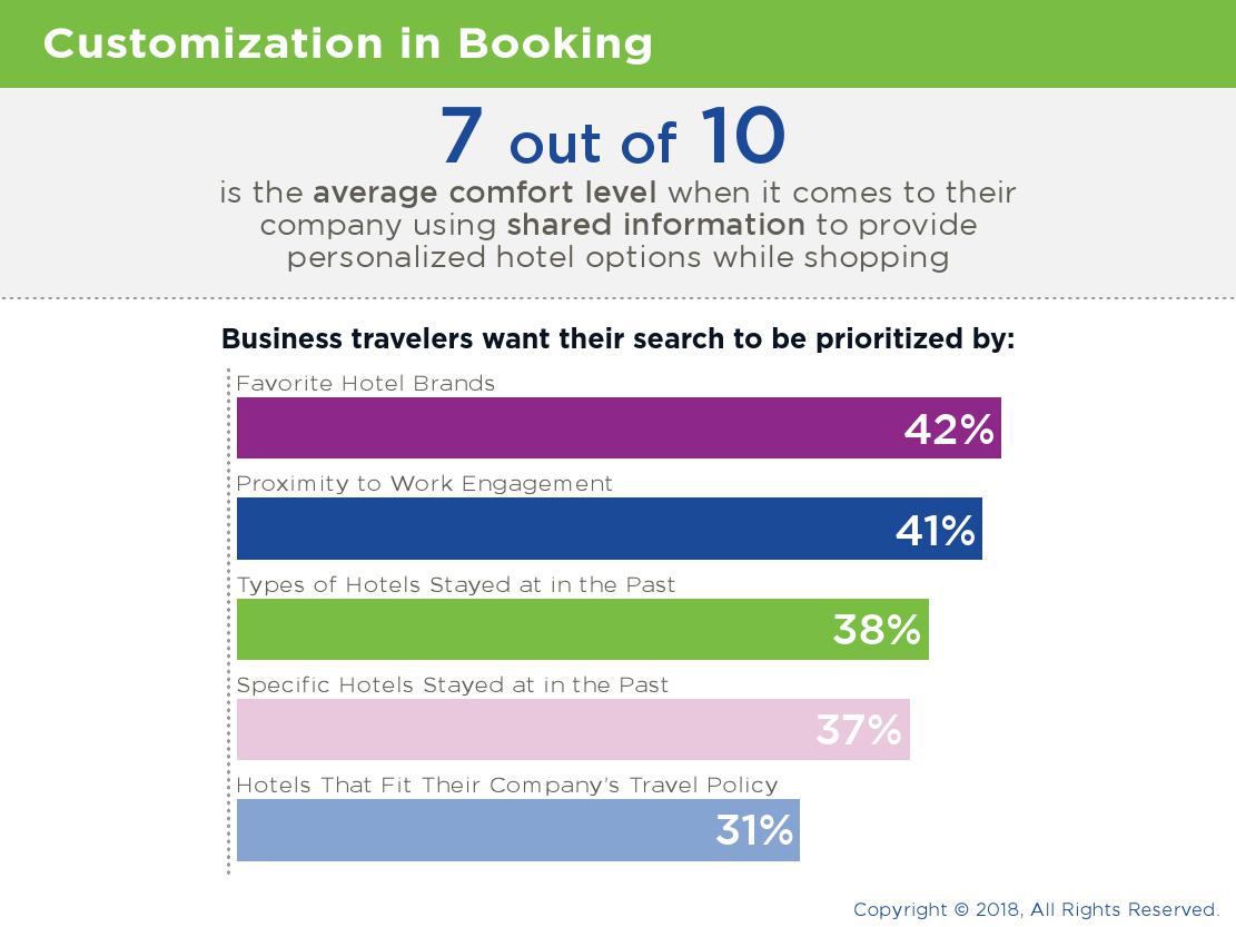 84%的商务旅客表示个性化的客户体验十分重要,大多数受访者认为商务旅行体验应该有别于休闲旅行,64%的人只会在商务旅行中购买各种的设施服务。商务旅客究竟想获得怎样的个性化体验呢?