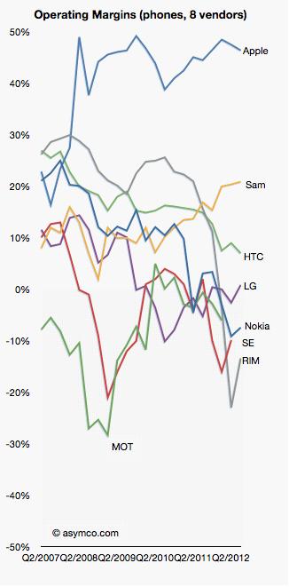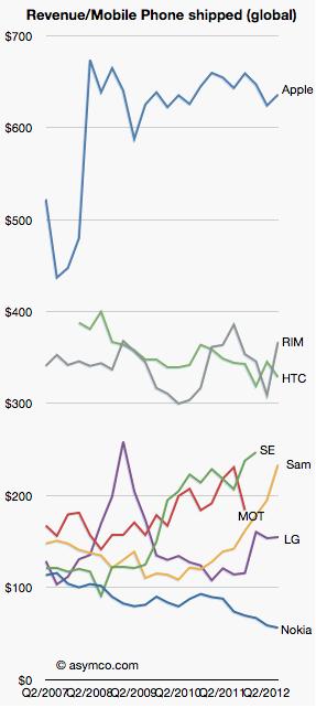 同时,据上图的曲线显示,三星Galaxy系列手机的推出影响了谷歌公司获取更多的利润。如果该图的走势不能代表什么的话,那么安卓系统创造了一个非常 有趣的行业。现在有一系列的疑问,三星公司获取的利润仍旧会持续增长吗?为什么其它配置安卓系统的品牌手机公司并未获得成功呢?为什么谷歌公司并没有凭借 安卓系统取得成功呢?为什么摩托罗拉公司也未取得成功?三星公司从谷歌公司出品的手机操作系统中获取如此巨额利润,如果谷歌公司从自身利益考虑限制三星公 司出品的手机应用平台的范围,那么三星公司会怎样呢?相信随着时间的推移,答案将渐渐浮出水面,还是让我们拭目以待吧。