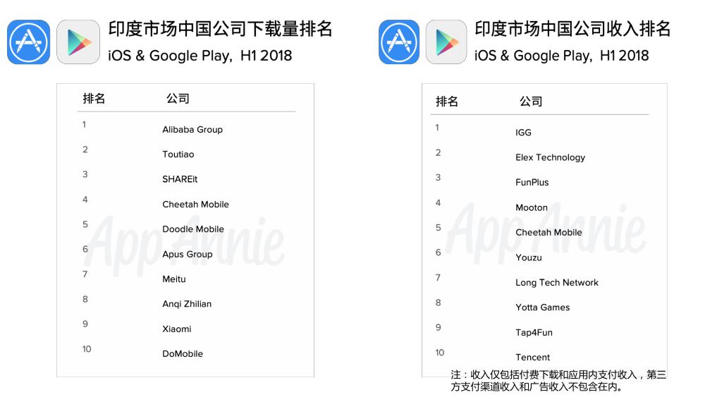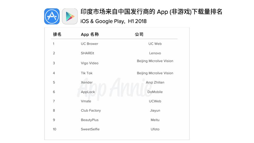 - 中国发行商在印度保持了活跃、阿里巴巴旗下的 UC、头条位列中国发行商在印度市场下载量前两位,SHAREit、猎豹移动、涂鸦移动、美图、闪传、小米和 DoMobile 跻身下载前十位。