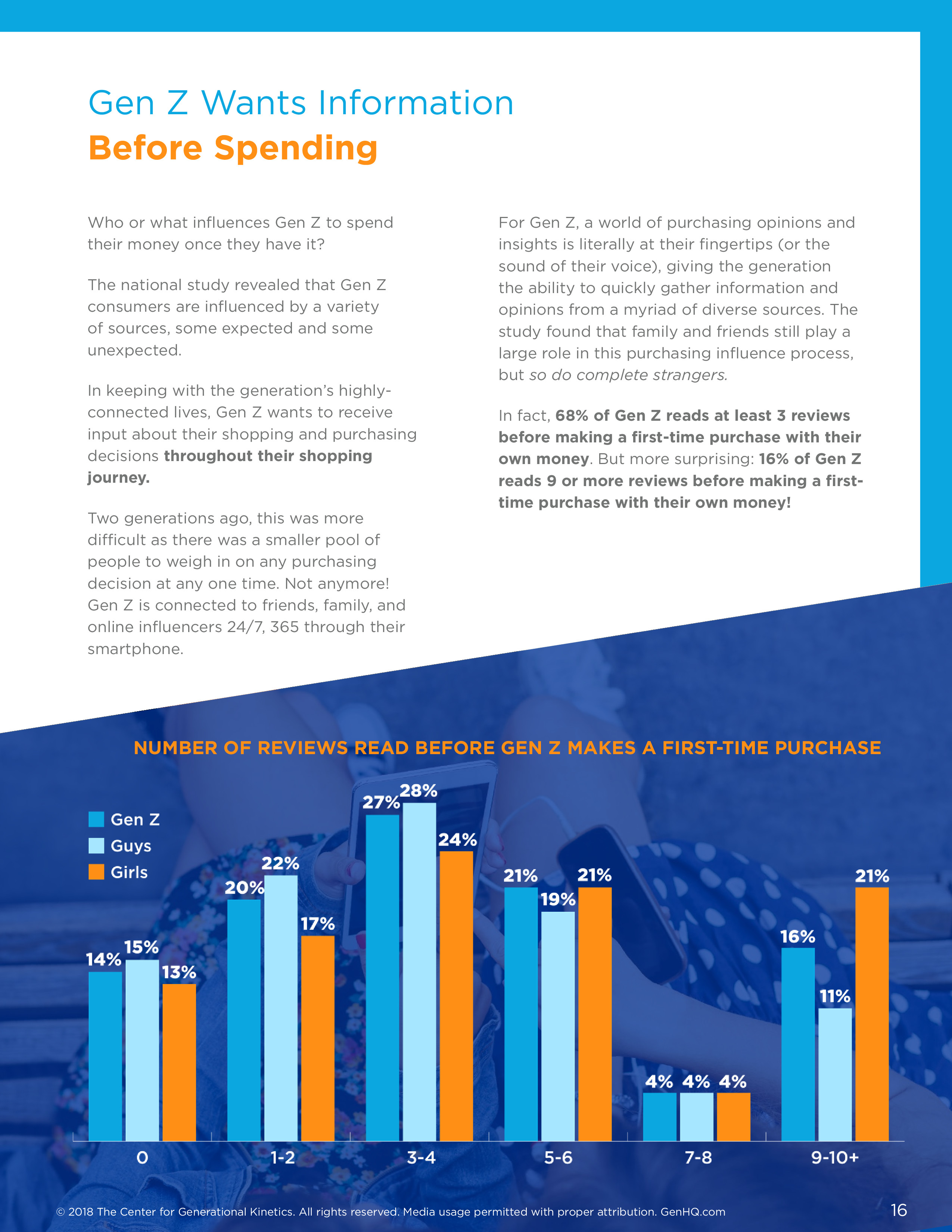 消费者评论对于成年人的购买决策至关重要,Z世代的消费者也不例外。86%的Z世代受访者表示他们在用自己的钱进行首次购买之前阅读了评论,大约2/3的人需要阅读至少3篇评论。1/5的Z世代需要更多的支持来做出购买决策,在首次购买之前需要阅读至少7条评论。