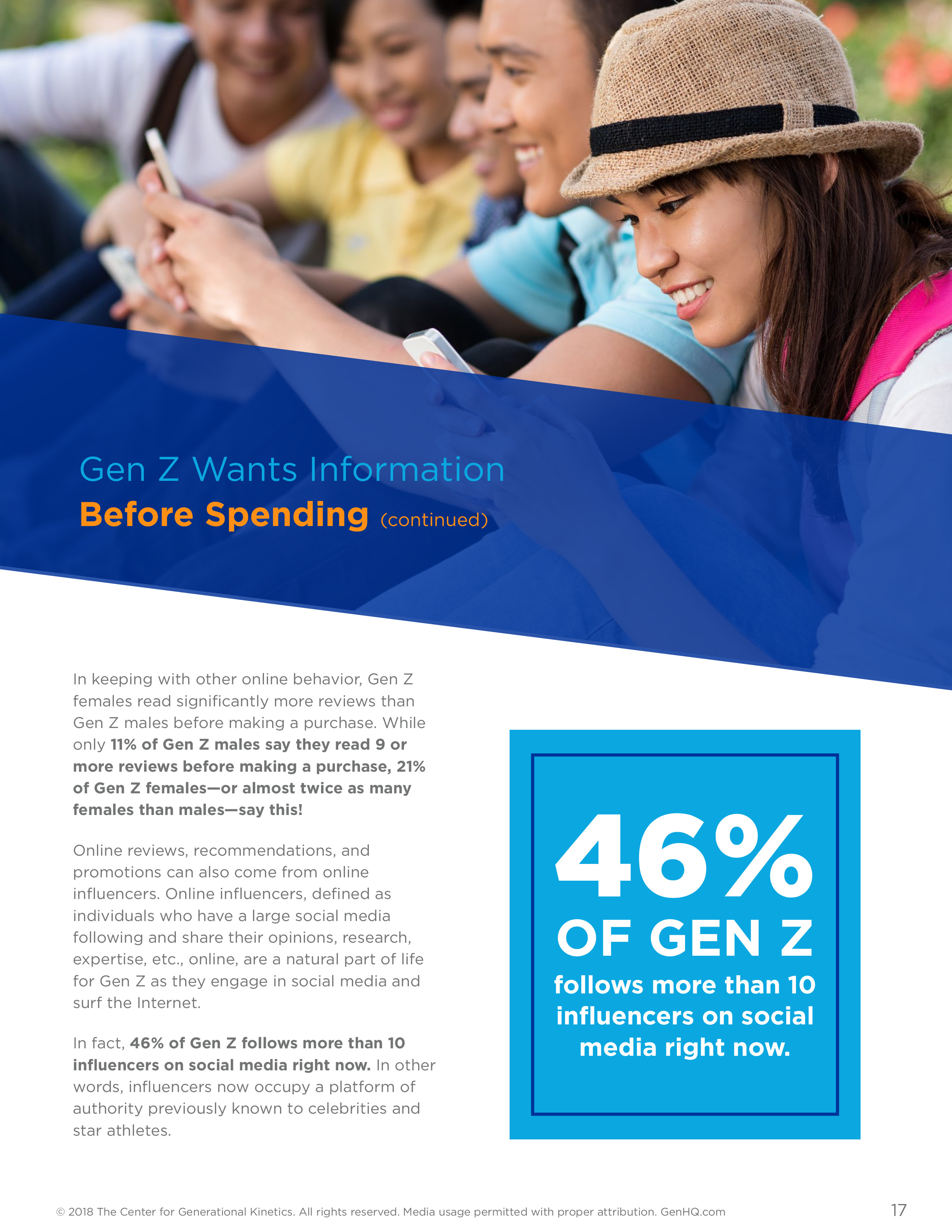 对于那些希望进入社交媒体的品牌,意见领袖可以成为一个重要的渠道:几乎一半(46%)的Z世代受访者报告说,他们在社交媒体上追踪了10多名意见领袖。