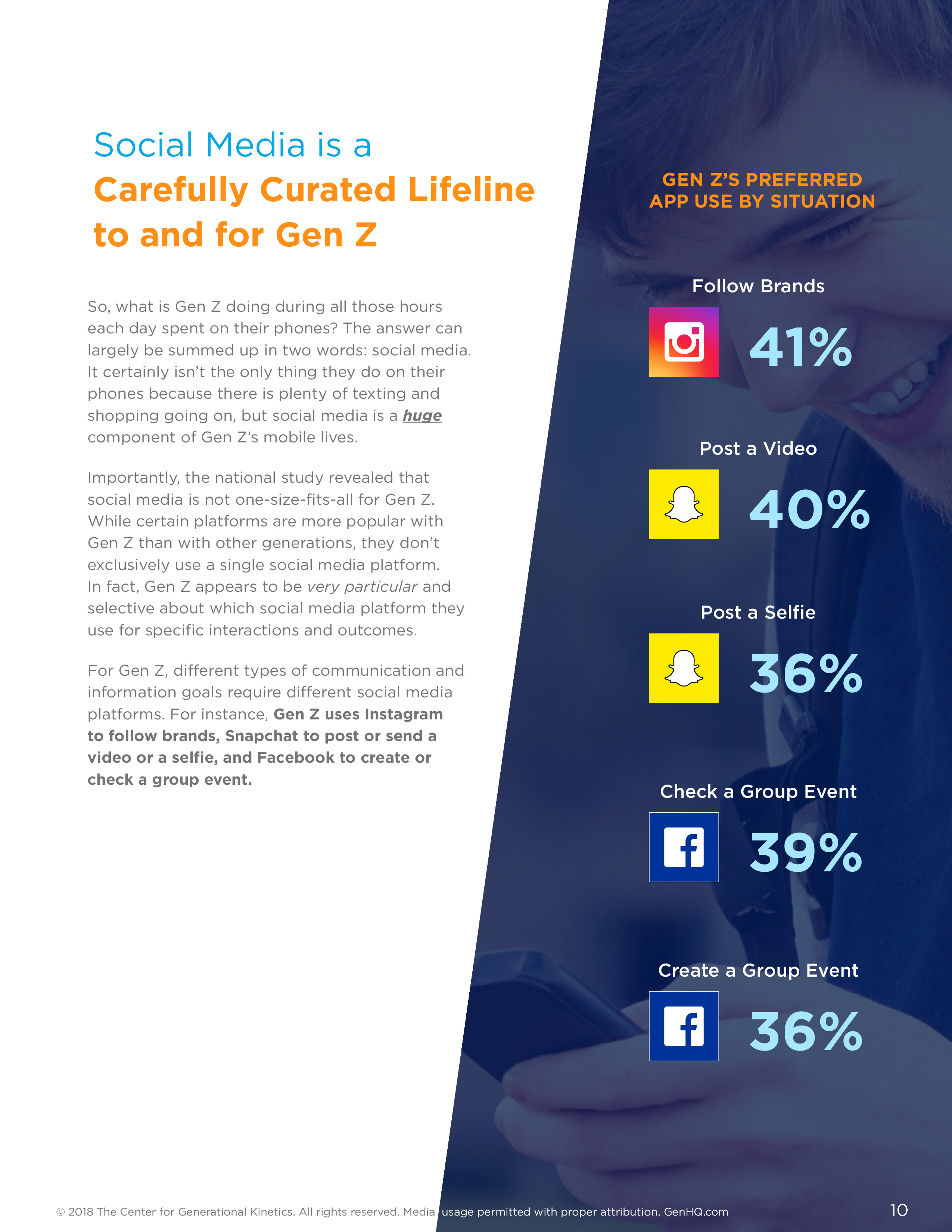 根据CGK的“2018年Z世代报告”,青少年不再热衷于Facebook,但是他们依然会使用。现在,青少年更喜欢根据不同的目的使用不同的应用,例如Facebook是创建群并检查群消息。