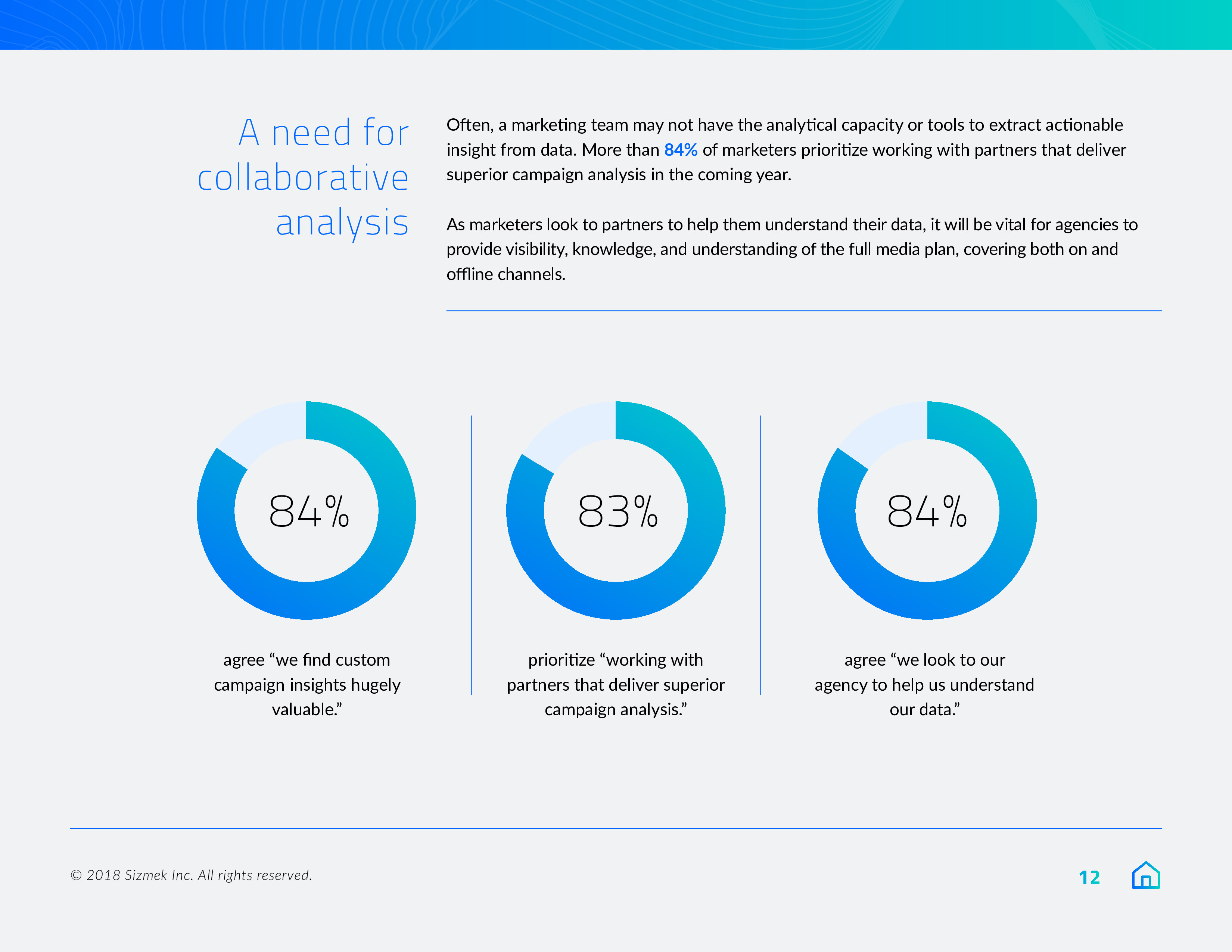 - 84%的受访者期待他们的代理机构帮助他们理解数据。