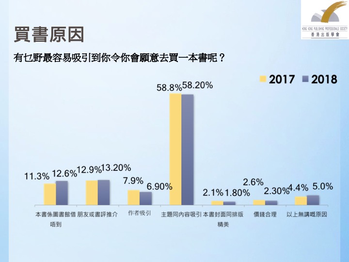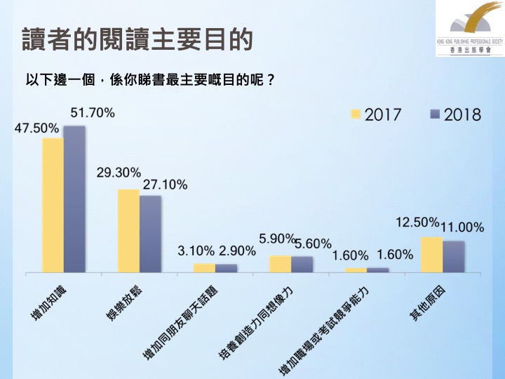 为推动全民阅读的开展,香港出版学会结合调查结果提出了5项建议: