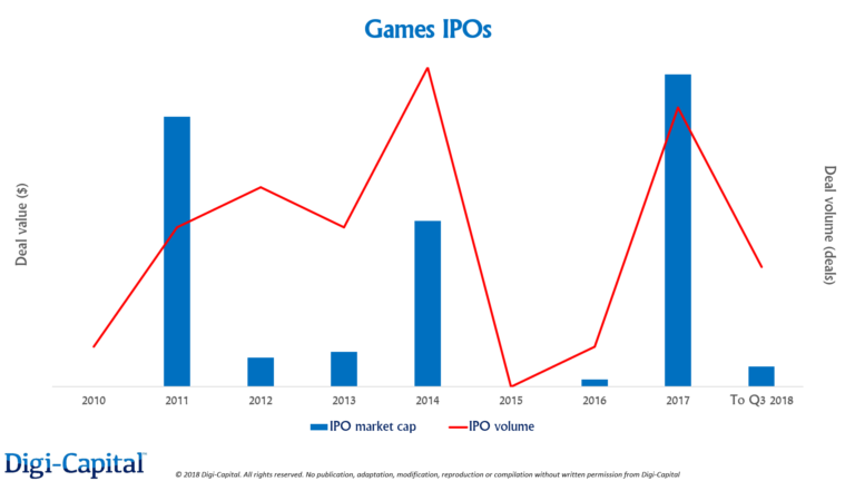2010年以来的游戏IPO遵循了一致的模式,一年繁盛紧跟着两年安静。这样的模式已经发生了两次,2018年很可能是第三个。