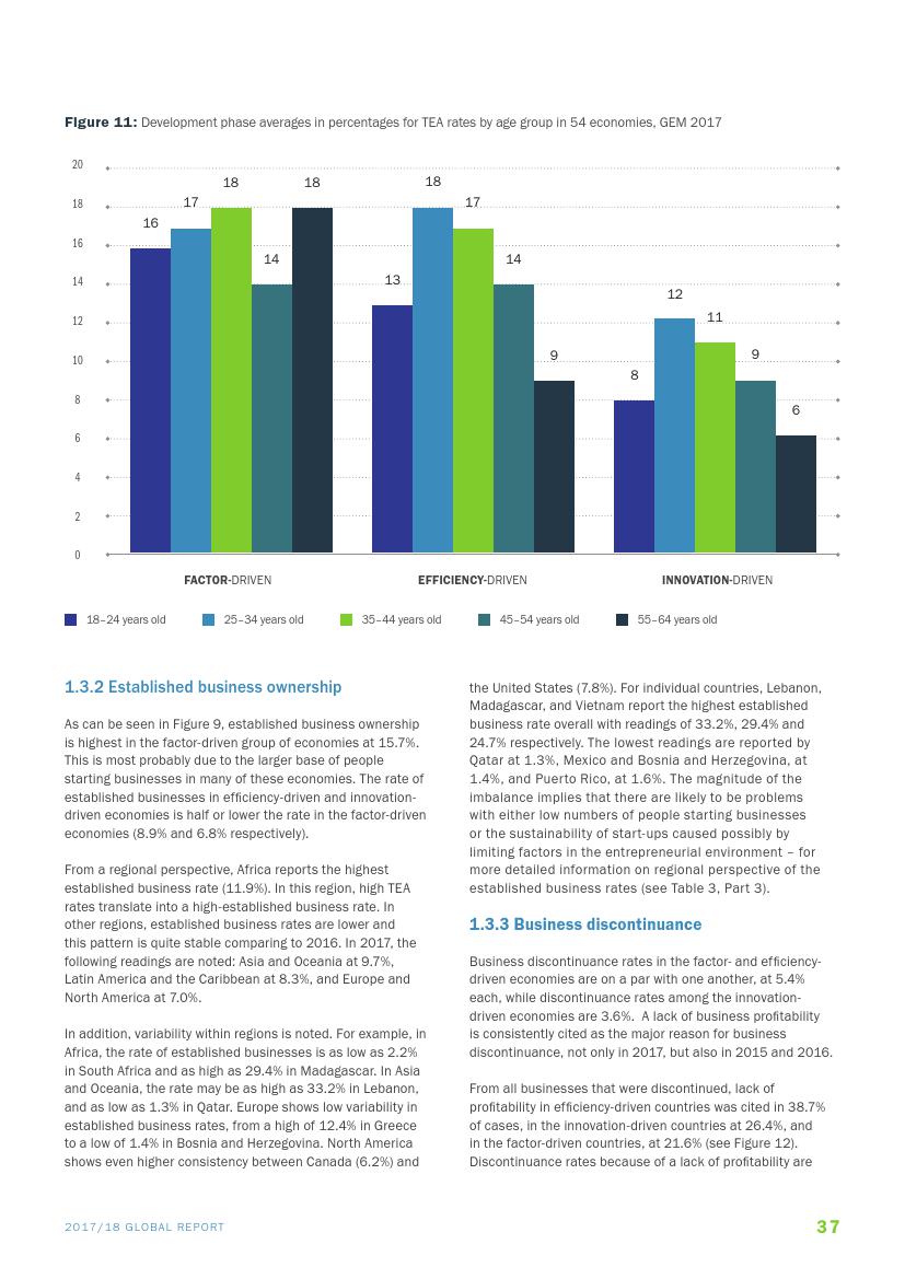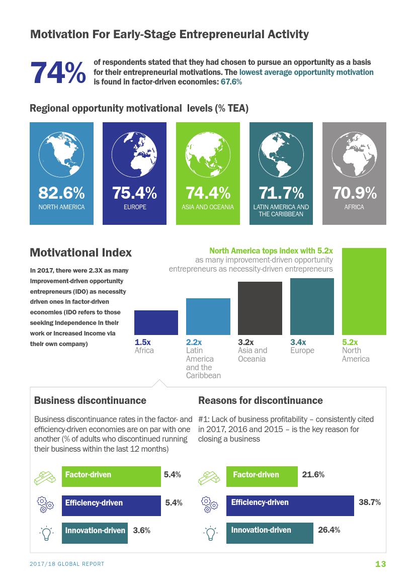 - 非洲地区(0.6%)和北美洲(0.65%)的两性企业家比例也很低——这些地区的女性从事TEA的可能性是男性的三分之二或更少。