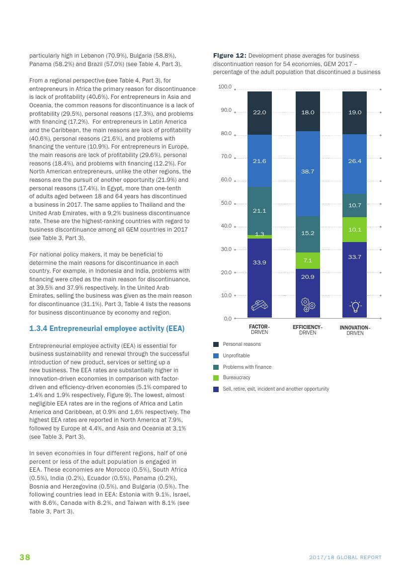 “GEM数据表明,随着发展和教育水平的提高,女性的创业参与率下降,性别差距加大,但企业停业率也有所下降。虽然在发展中经济体中,女性的中断率比男性高10%左右,但在高度发达的经济体中,女性退出企业的较少,只有男性的三分之二。”