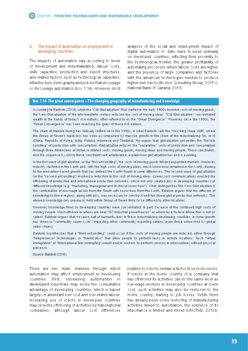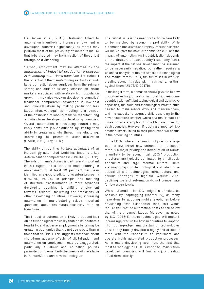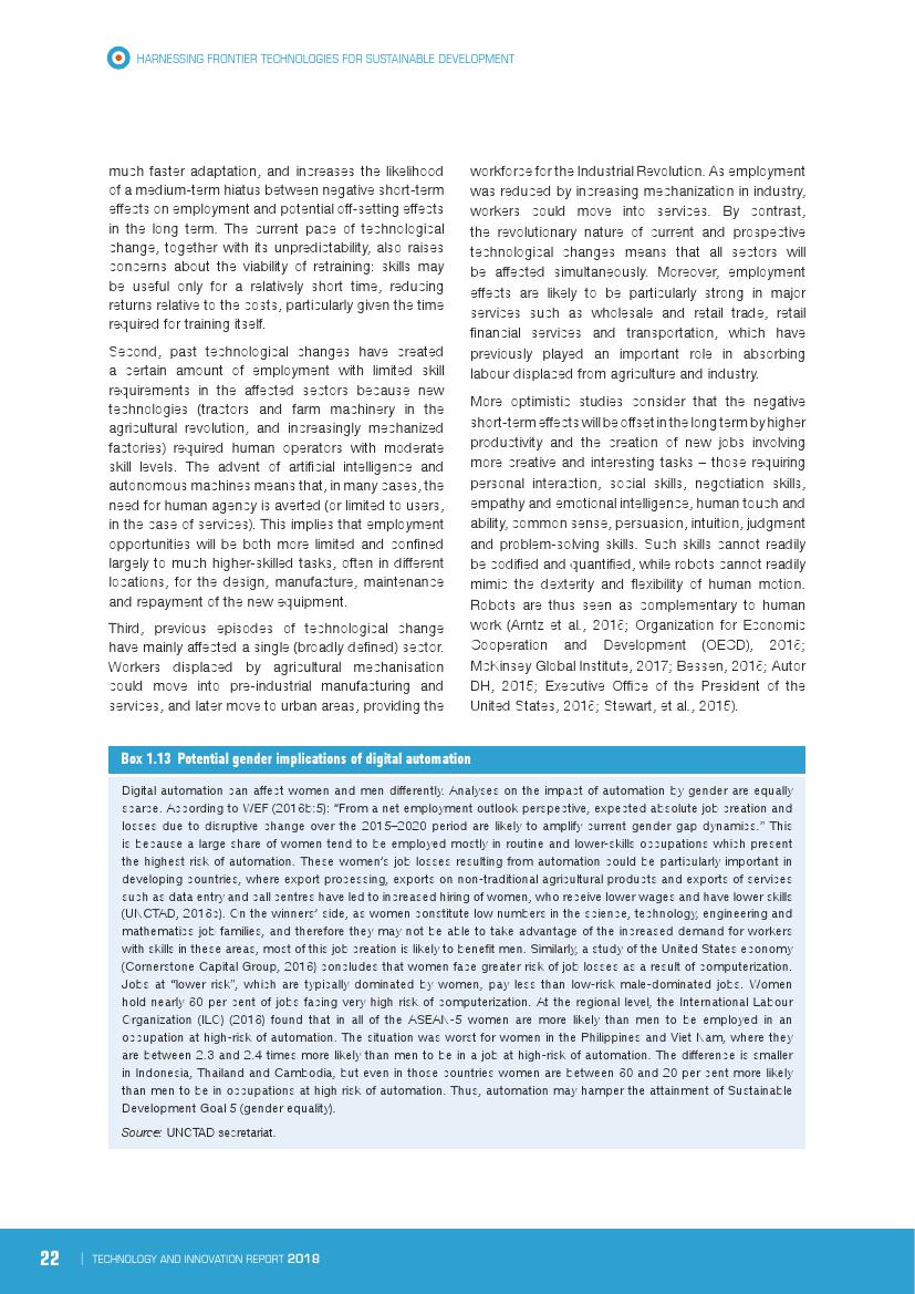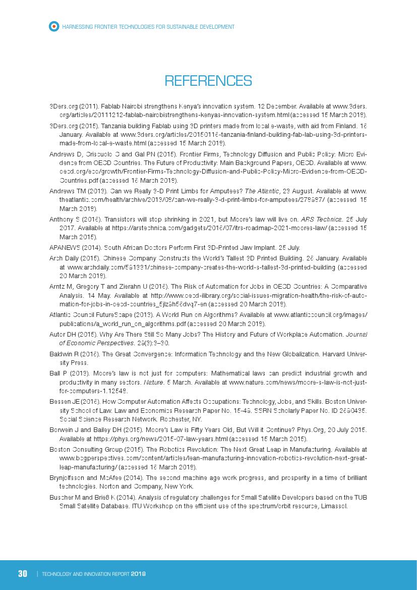 3D打印技术为发展中国家带来潜在的经济、社会和环境效益。由于3D打印成本大幅下降,再加上计算机辅助设计、互联网、新材料和云计算的相应发展,30年前发明的3D打印技术已经成为全球制造商生产飞机、风轮机、汽车和其他机器的可行技术。作为一项“平台技术”,3D打印应用广泛,如卫生保健、航空航天(如打印飞机零部件)和建筑(如打印房屋和大型建筑)。3D打印具有改造企业(尤其是制造业)的潜力,为制造能力有限且生活消费品严重依赖进口的发展中国家发展低于传统工厂生产成本的制造业打开了机遇之门。3D打印技术只需要产品原材料,且通过单一工序生产商品,避免了各种零部件的运输,减少了资源的使用,因此还有助于减少碳排放。